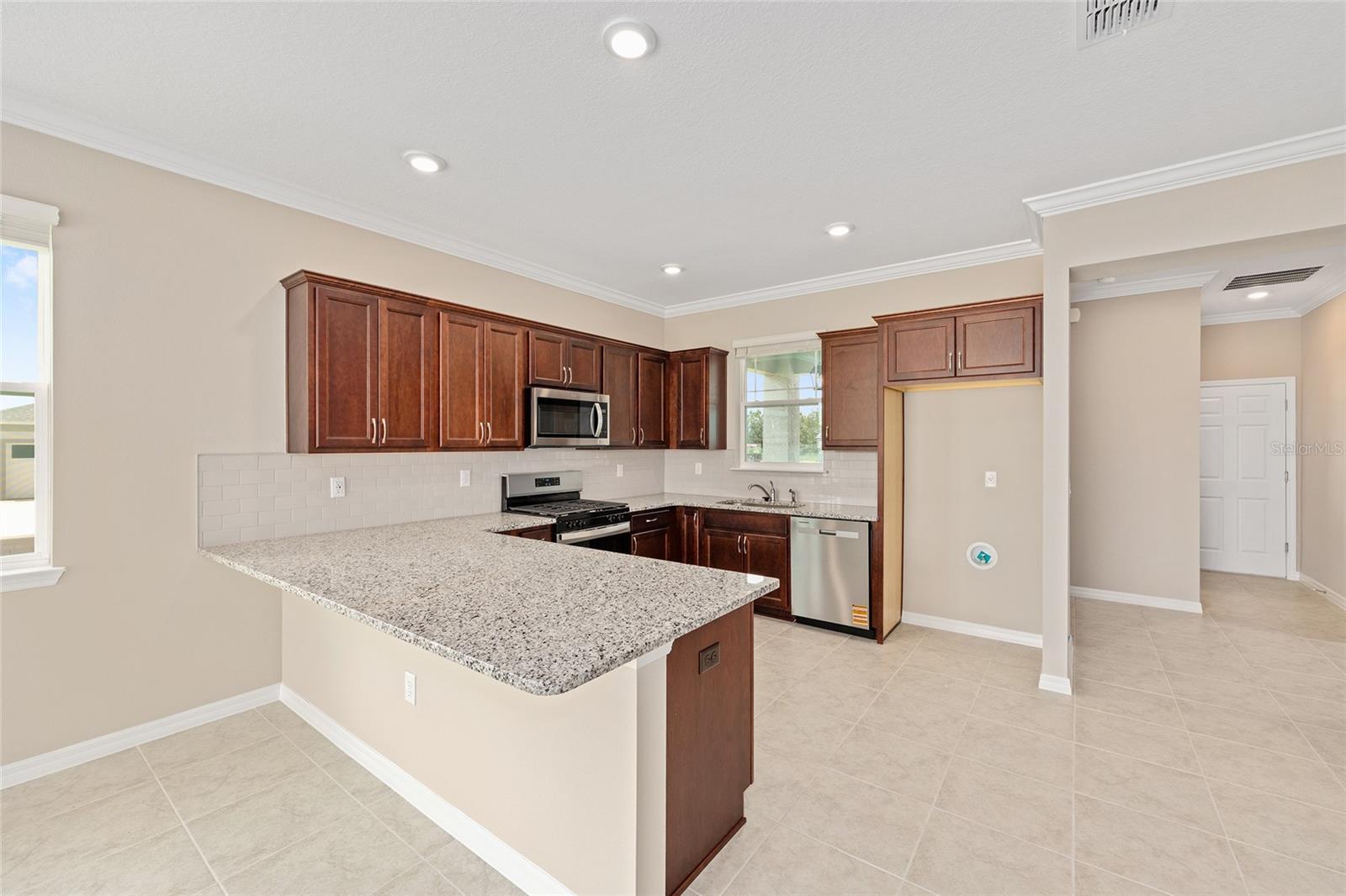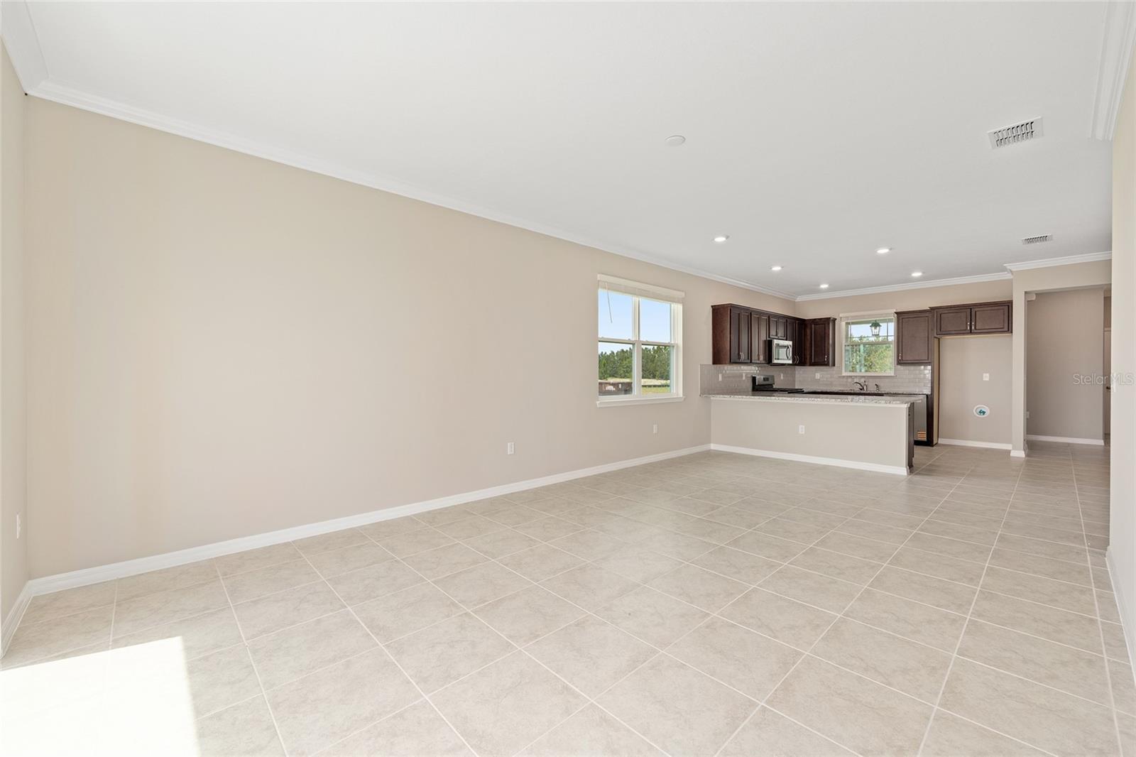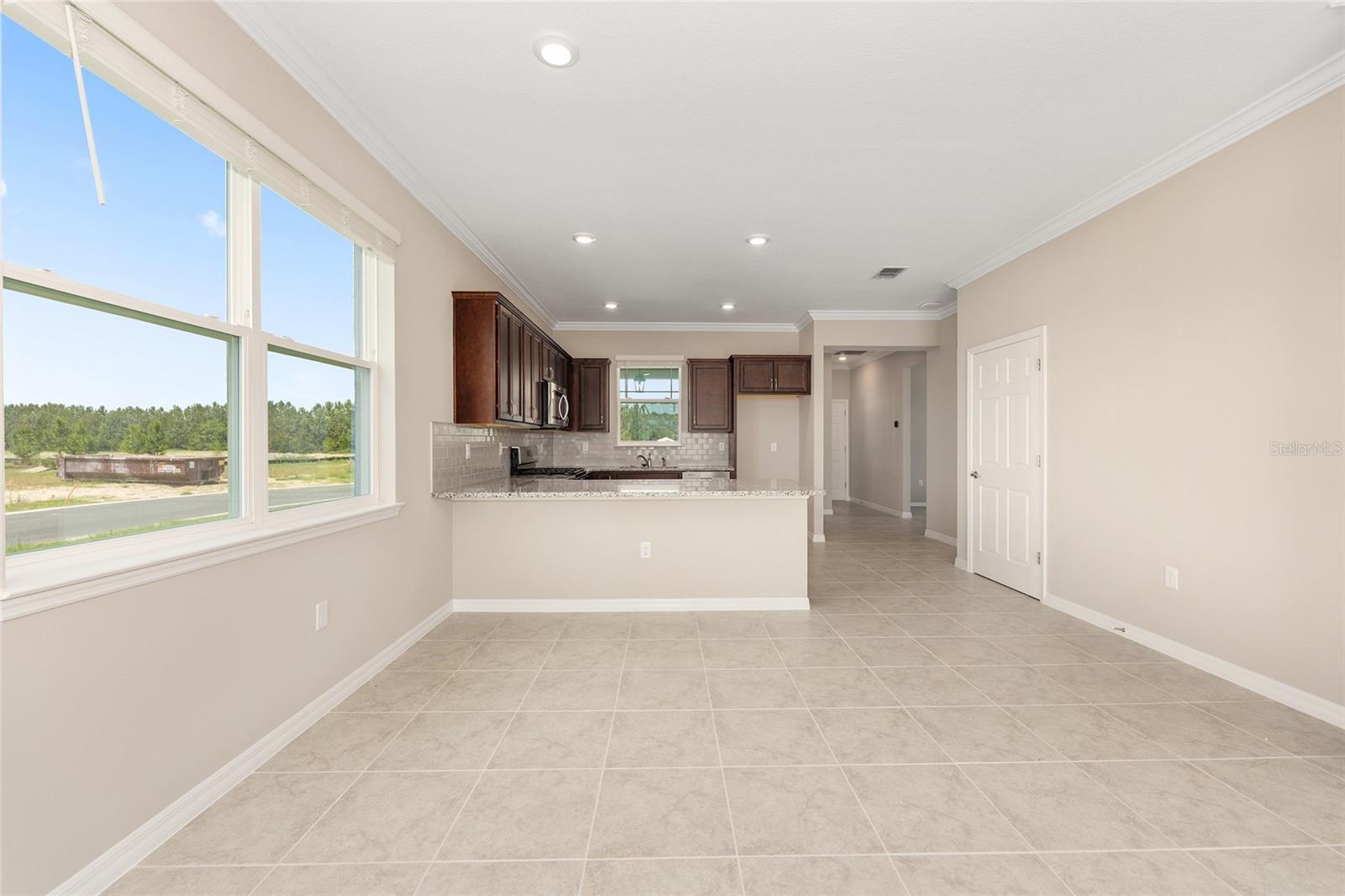 Novo modelo de terra de construção localizado em um lote de canto em Weybourne aterrissando no topo do mundo! Descubra a elegância moderna e a vida sem esforço nesta impressionante casa de 2 quartos e dois banheiros, com uma sala flexível versátil e uma espaçosa garagem de 2 carros, perfeitamente situada na principal comunidade ativa de 55 mais da Ocala. Entre em um design de conceito aberto que combina luxo e funcionalidade. A cozinha gourmet possui armários marrons escuros com moldagem por coroa, bancadas de quartzo, um elegante backsplash de azulejos brancos, utensílios de aço inoxidável e uma despensa conveniente. A área de estar é brilhante e convidativa, com uma porta de vidro deslizante que leva ao pátio, ideal para relaxar. A suíte primária é um retiro tranquilo, banhado em luz natural de duas grandes janelas. Possui um espaçoso closet, carpete macio e uma luxuosa suíte com uma vaidade dupla, balcão de quartzo, um chuveiro com uma porta de vidro e banco embutido e um armário de linho. O quarto de hóspedes está cuidadosamente posicionado no lado oposto da casa em busca de privacidade, adjacente a um elegante banho de hóspedes com uma única pia de vaidade, balcão de quartzo, banheira/chuveiro e um armário de linho. Aninhado na comunidade fechada procurada de Ocala, esta casa oferece acesso a comodidades de primeira linha e acesso ao carrinho de golfe a dois shopping centers, tornando a vida conveniente e agradável. Não perca esta oportunidade incrível, agende sua exibição particular hoje!