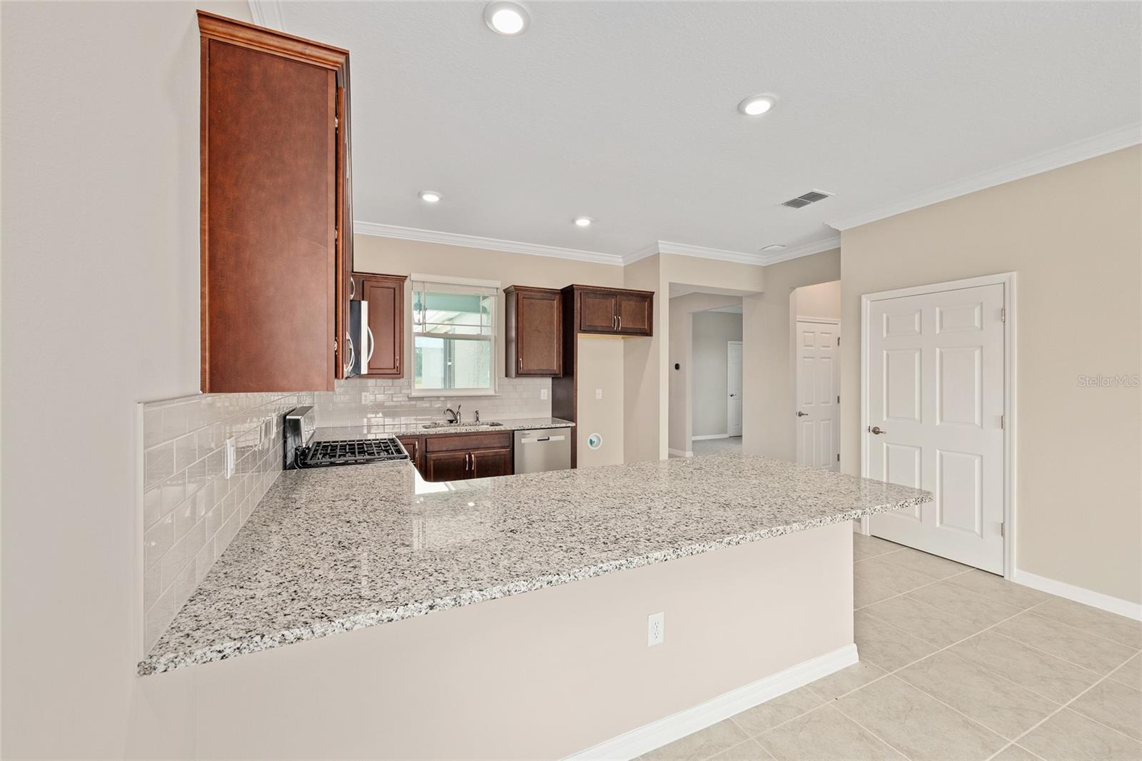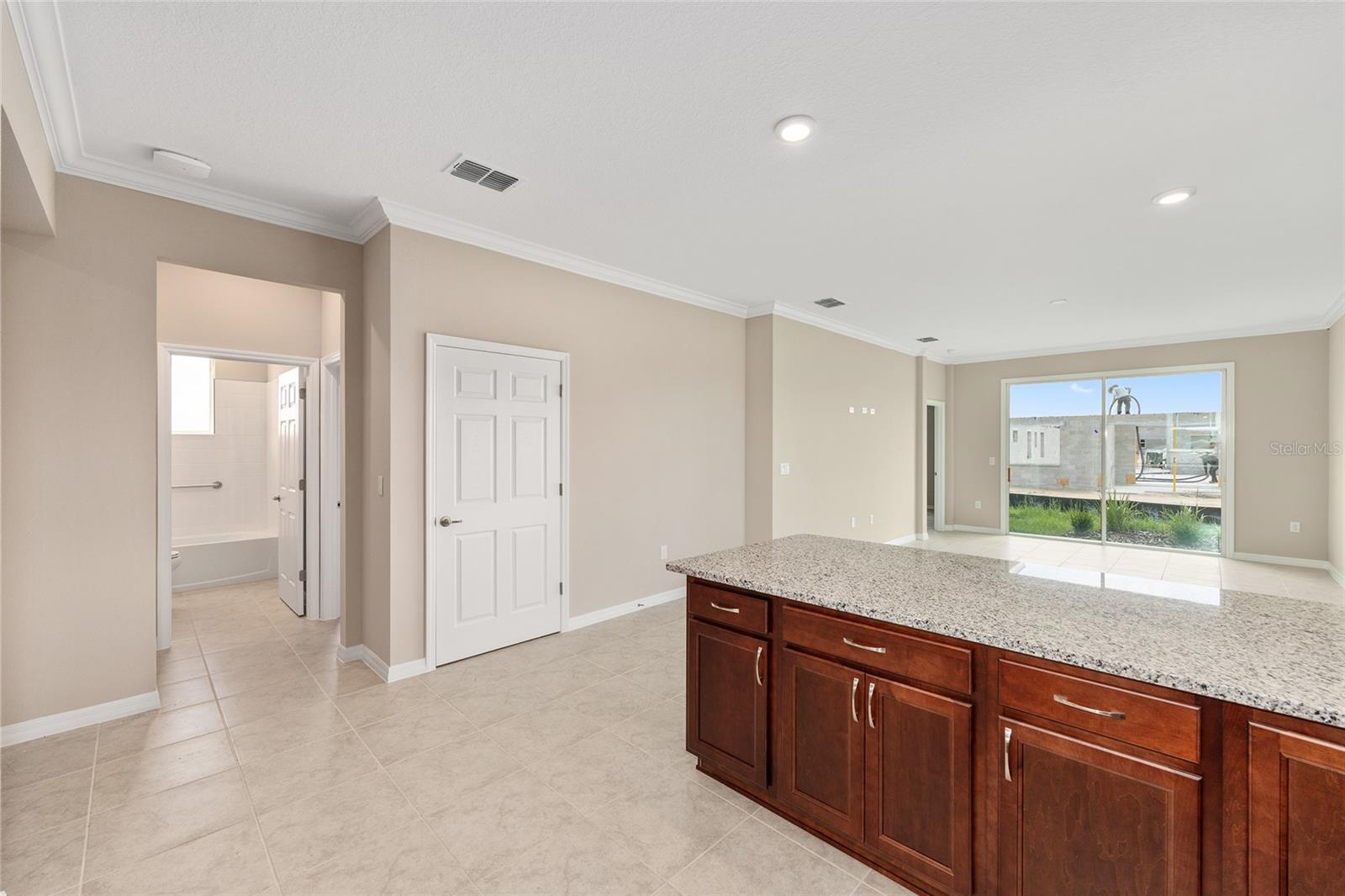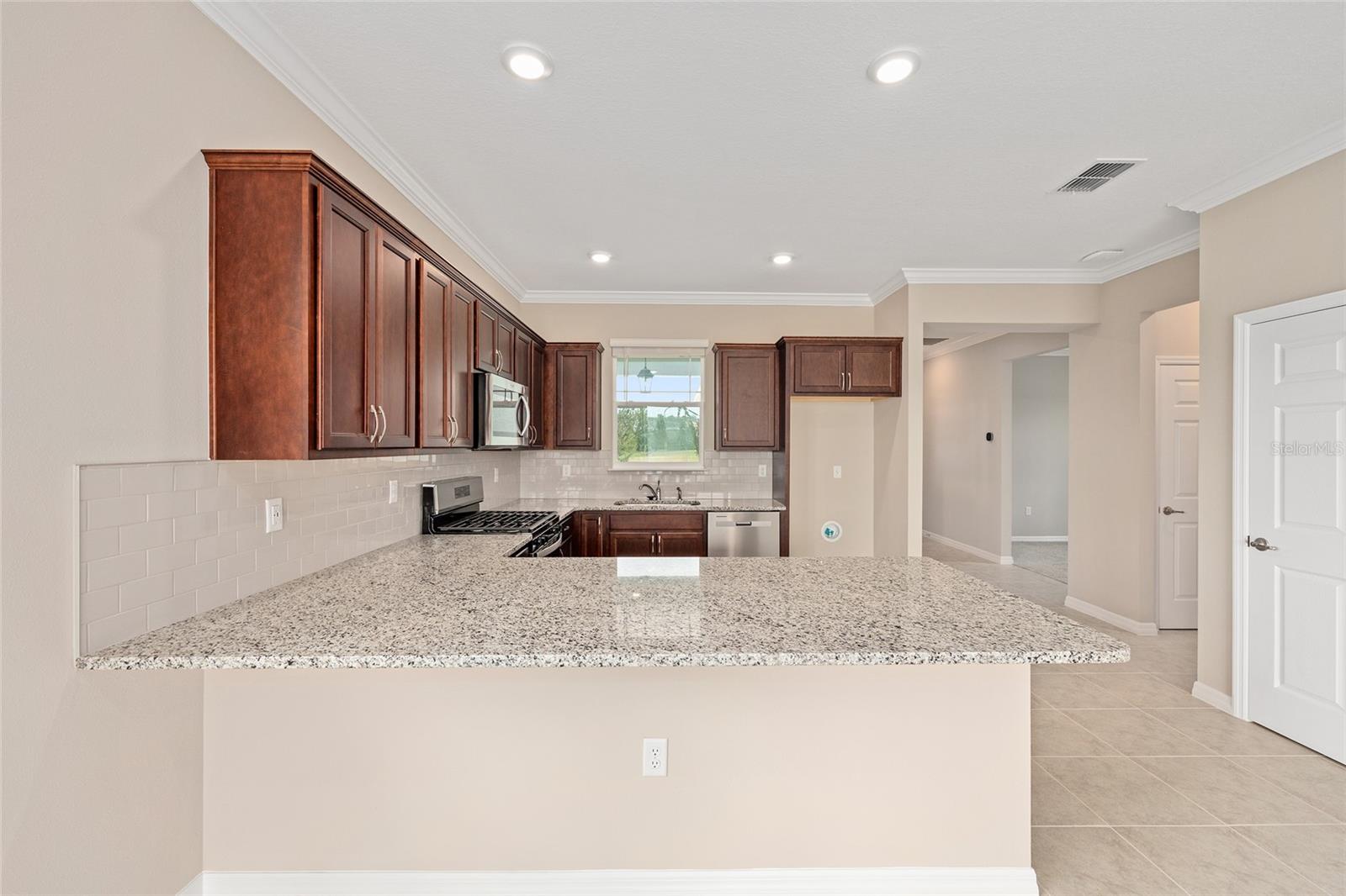 Novo modelo de terra de construção localizado em um lote de canto em Weybourne aterrissando no topo do mundo! Descubra a elegância moderna e a vida sem esforço nesta impressionante casa de 2 quartos e dois banheiros, com uma sala flexível versátil e uma espaçosa garagem de 2 carros, perfeitamente situada na principal comunidade ativa de 55 mais da Ocala. Entre em um design de conceito aberto que combina luxo e funcionalidade. A cozinha gourmet possui armários marrons escuros com moldagem por coroa, bancadas de quartzo, um elegante backsplash de azulejos brancos, utensílios de aço inoxidável e uma despensa conveniente. A área de estar é brilhante e convidativa, com uma porta de vidro deslizante que leva ao pátio, ideal para relaxar. A suíte primária é um retiro tranquilo, banhado em luz natural de duas grandes janelas. Possui um espaçoso closet, carpete macio e uma luxuosa suíte com uma vaidade dupla, balcão de quartzo, um chuveiro com uma porta de vidro e banco embutido e um armário de linho. O quarto de hóspedes está cuidadosamente posicionado no lado oposto da casa em busca de privacidade, adjacente a um elegante banho de hóspedes com uma única pia de vaidade, balcão de quartzo, banheira/chuveiro e um armário de linho. Aninhado na comunidade fechada procurada de Ocala, esta casa oferece acesso a comodidades de primeira linha e acesso ao carrinho de golfe a dois shopping centers, tornando a vida conveniente e agradável. Não perca esta oportunidade incrível, agende sua exibição particular hoje!