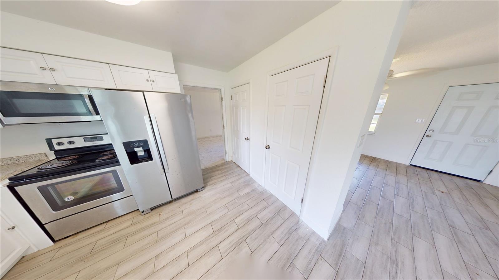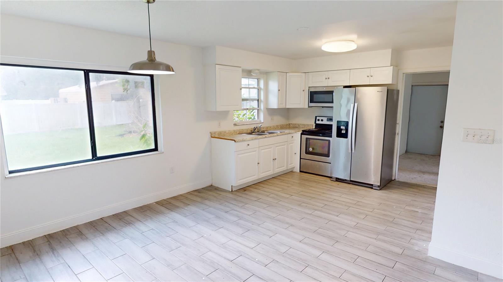 Casa 3BR/2BA bem mantida no bairro estabelecido de NE Ocala. Planta de piso do quarto dividido com tetos abobadados e espaço de vida/jantar aberto. A cozinha oferece um amplo bar de armazenamento e café da manhã. A suíte primária apresenta closet e banho de suíte. Os quartos dos hóspedes são espaçosos com ótima luz natural. A garagem foi convertida em uma sala de bônus com A/C ducto e acesso direto à lavanderia - ideal para um escritório em casa, sala de jogos ou espaço adicional. O vendedor está instalando carpete quando necessário. O quintal possui uma garagem de 2 carros em uma laje de concreto e um pavilhão quadrado-também em lajes-perfeito para reuniões ao ar livre ou atualizações futuras. Quintal totalmente cercado com muito espaço para desfrutar. Zoneou para financiamento do USDA e localizado a poucos minutos de Publix, Downtown Ocala, compras, restaurantes e vida noturna. Fácil acesso à Ne 25th Ave, SR-40 e I-75.