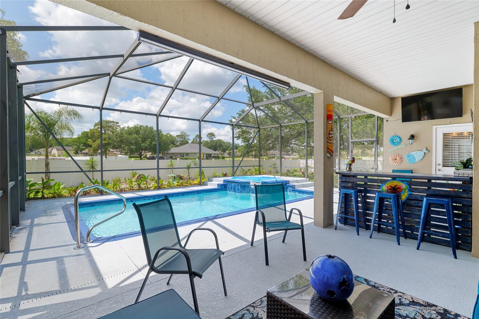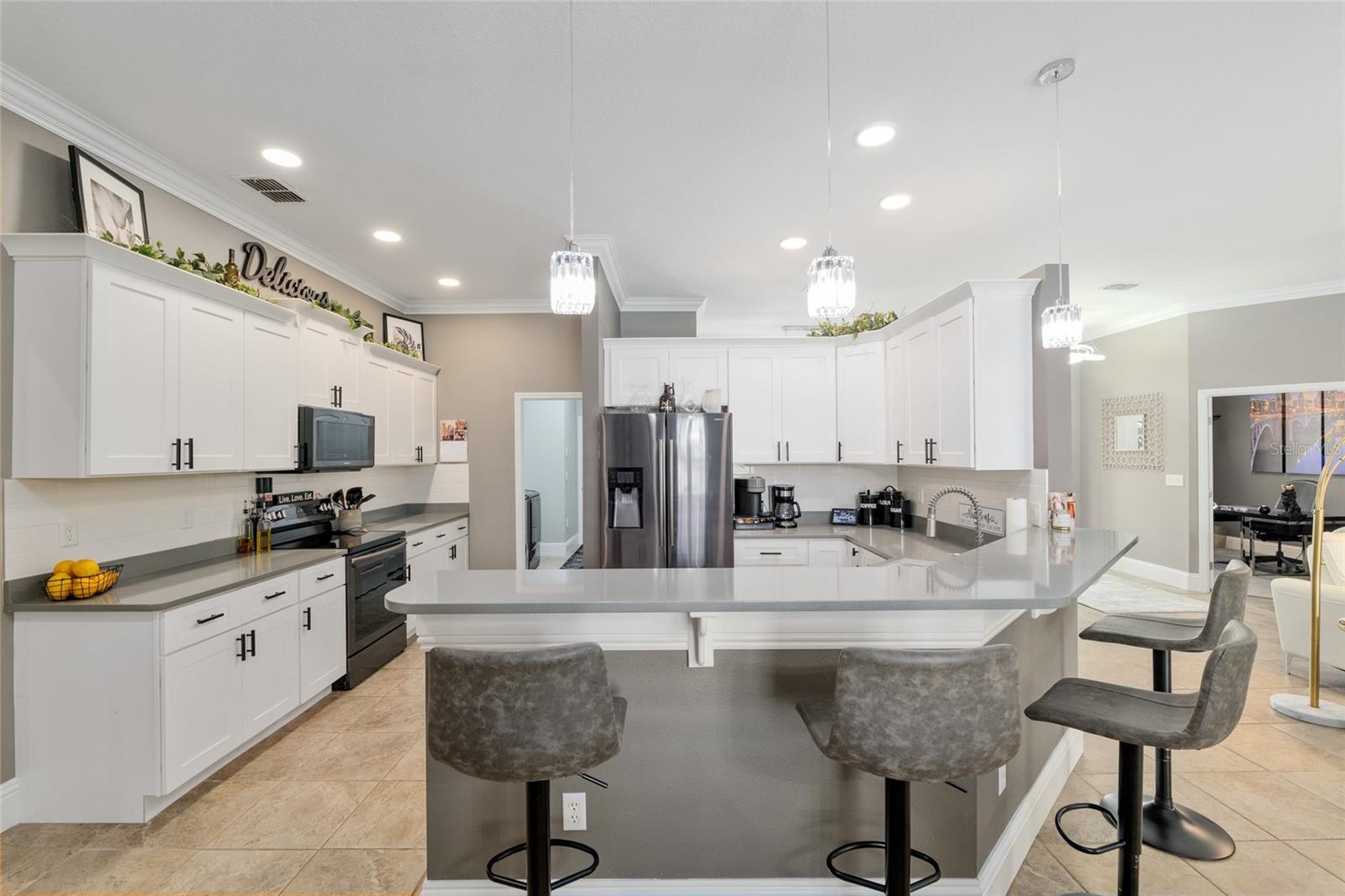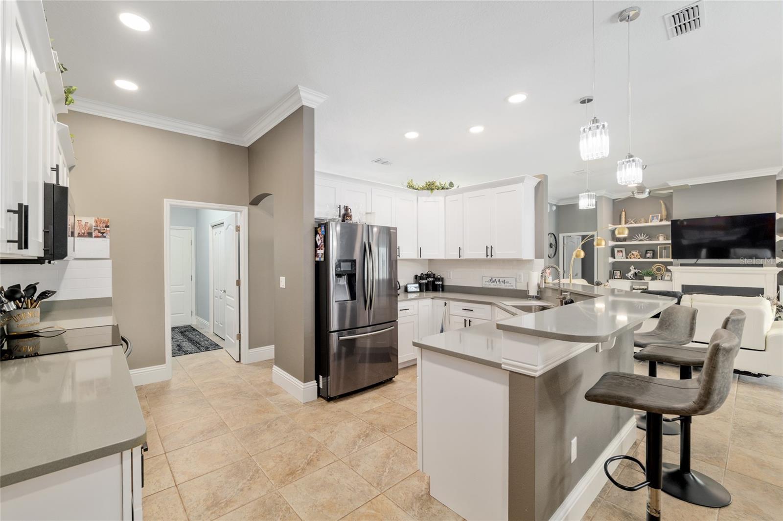 Imaculada Pool Home em Magnolia Manor! Bem-vindo a este deslumbrante casa de 3 quartos de 3 quartos, de 3 banheiros com uma garagem de 3 carros, aninhada no altamente desejável Comunidade de Magnolia Manor. Situado em quase meio hectare (0,49 acres), esta casa oferece a mistura ideal de luxo, conforto e funcionalidade. Lá dentro, você encontrará uma espaçosa sala de estar com lareira e uma cozinha bem equipada com bancadas de pedra, backsplash, amplo espaço para gabinete/bancada e aparelhos de aço inoxidável. O layout de quartos divididos inclui um escritório em casa versátil e um design atencioso para o melhor uso do espaço. Os recursos adicionais incluem: moldagem da coroa, utensílios atualizados, persianas de plantações, lavanderia interna com armários, tons personalizados e uma porta de vidro deslizante com tom de controle remoto para maior privacidade e um teto novo. O espaçoso quarto principal tem acesso à piscina, closet e um banheiro privativo com espelhos de vaidade iluminados, pias duplas, granito, banheira de jardim e chuveiro de azulejos. O terceiro quarto oferece um closet e banheira privada com um chuveiro de azulejos, banheira e pias duplas, tornando-o a configuração perfeita para uma suíte sogra ou estadias de convidado prolongadas. Saia do seu retiro privado no quintal-pegando uma piscina exibida com uma banheira de hidromassagem relaxante, banho de piscina, um pátio de grelhados, uma fogueira aconchegante, paisagismo exuberante com irrigação atualizada e um quintal totalmente cercado para privacidade e prazer. Você também adorará relaxar com belas vistas do pôr -do -sol do seu próprio quintal. Este lar excepcional em Magnolia Manor tem tudo - espaço, estilo e uma localização privilegiada. Não perca a oportunidade de torná -lo seu!