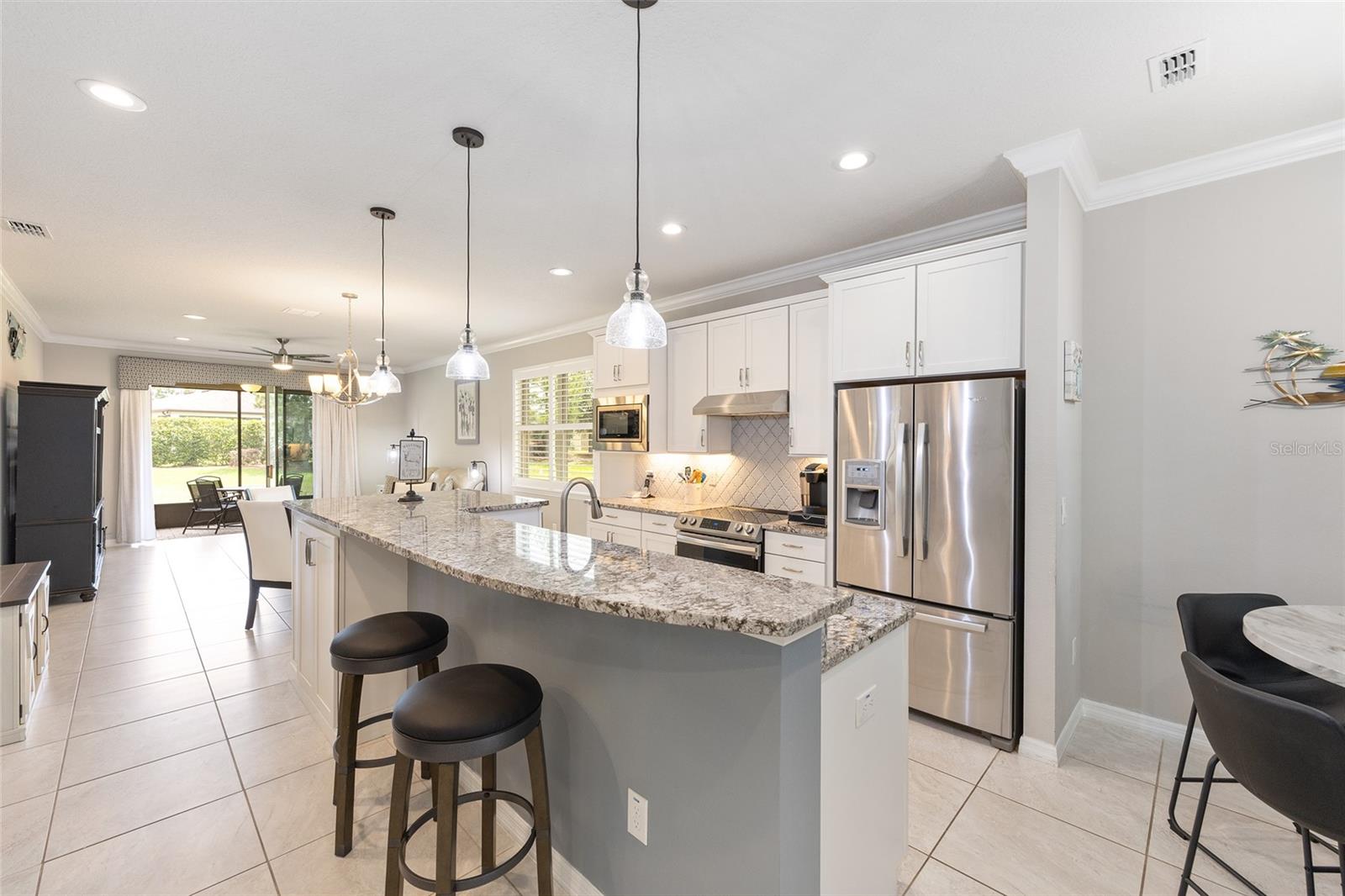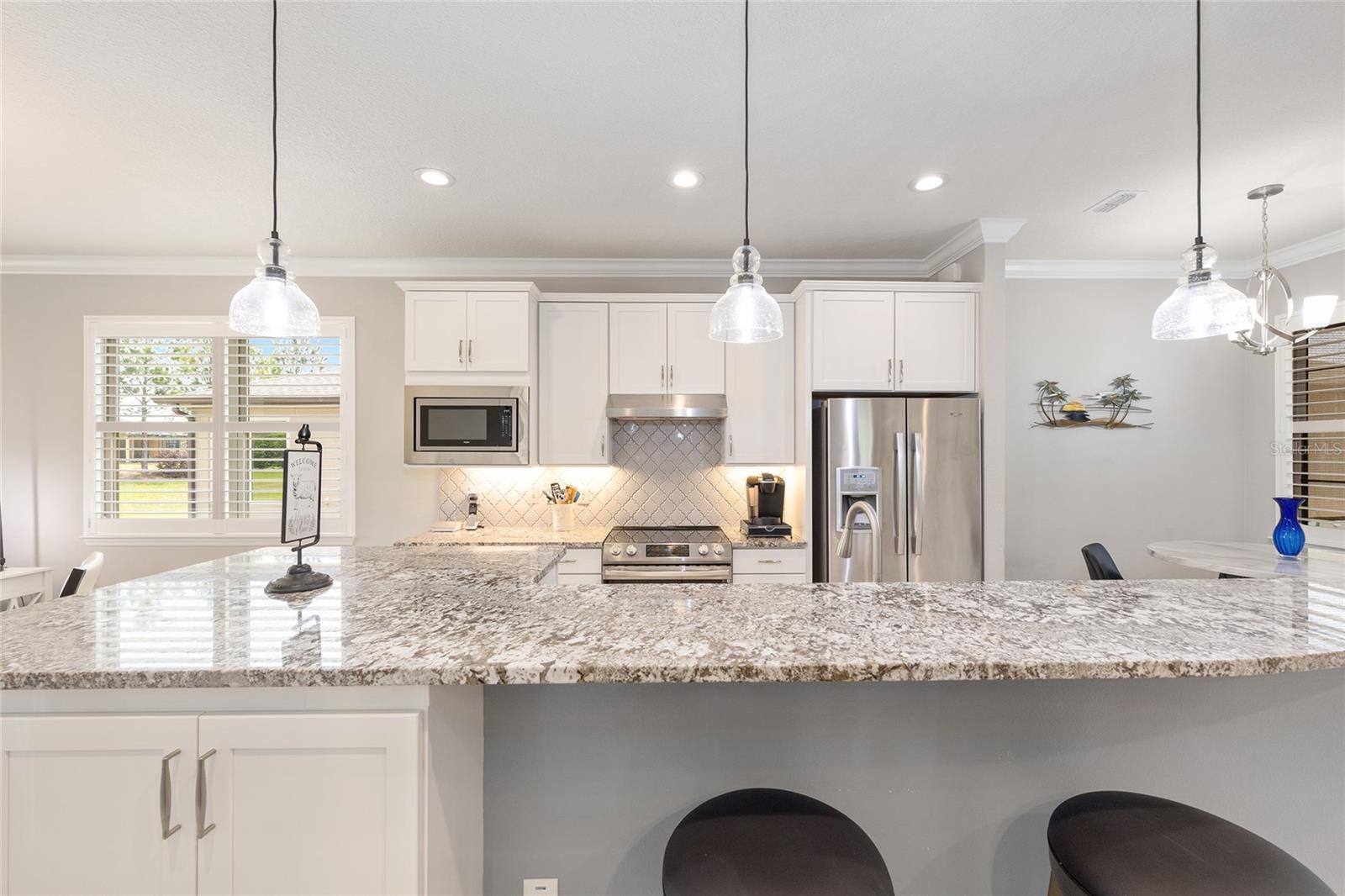 VENDEDOR MOTIVADO! Experimente a facilidade de uma vida despreocupada neste modelo da série Steel Creek Garden com design deslumbrante, situado dentro do condomínio fechado de golfe 55+ Stone Creek. Com vista para uma berma natural privada, esta casa excepcional combina serenidade com comodidades de estilo resort, ao mesmo tempo que oferece a conveniência de um gramado gerenciado profissionalmente e manutenção de paisagismo. No interior, o plano de estar aberto cuidadosamente elaborado é banhado por luz natural, aprimorado por piso de cerâmica elegante, venezianas, iluminação embutida de LED e sancas requintadas em todas as principais áreas de estar. A cozinha inspirada no chef é um sonho, com um recanto de jantar aconchegante, eletrodomésticos de aço inoxidável - incluindo uma máquina de lavar louça de altura confortável e exaustor ventilado - armários estilo Shaker, bancadas de granito reluzentes e uma ilha espaçosa com iluminação pendente elegante. Retire-se para a Suíte do Proprietário, onde um amplo closet e uma janela grande emolduram vistas tranquilas da natureza, convidando ao relaxamento. Uma porta deslizante do celeiro leva ao banheiro privativo tipo spa, completo com box amplo com borda de fibra de vidro, duas janelas de popa para iluminação natural e uma luxuosa pia dupla com tampo de granito. Do lado de fora, a varanda coberta e o pátio ampliado em gaiola oferecem um refúgio privativo com vista para a serena natureza - um local ideal para relaxar e saborear a beleza do ambiente. Abrace o estilo de vida excepcional deste condomínio vibrante, com entrada fechada 24 horas por dia, 7 dias por semana, para segurança e tranquilidade. As comodidades de inspiração luxuosa incluem piscinas aquecidas, academia de última geração, spa e relaxantes banheiras de hidromassagem e saunas. Mantenha-se ativo com pickleball, bocha, tênis e um campo de softball, enquanto uma equipe dedicada ao estilo de vida organiza entretenimento, atividades e eventos especiais para promover conexões. Logo além dos portões, desfrute de um campo de golfe, uma loja especializada e um restaurante – perfeito para socializar e relaxar. Faça a sua mudança hoje e experimente o que há de melhor em estilo resort!
