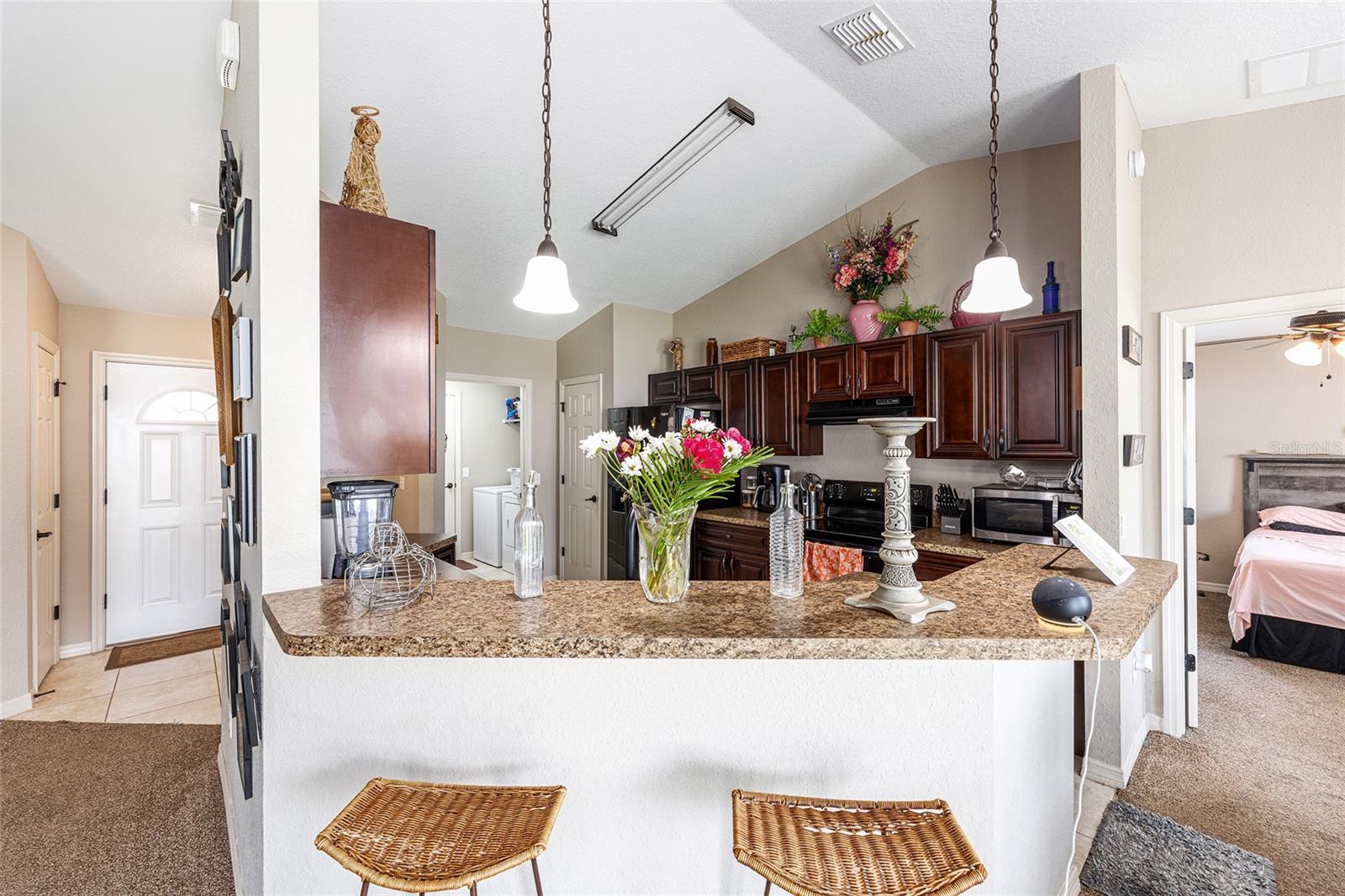 Linda piscina de 4 camas de 2 banheiros com garagem de 2 carros localizada em SW Ocala, já está disponível. Esta espaçosa casa construída em 2020 fornece 1747 pés quadrados de espaço, muito armazenamento e muito espaço de entretenimento. Ao entrar na casa, você será recebido com uma grande sala familiar, um teto da catedral, juntamente com uma cozinha conceitual aberta e sala de jantar. A cozinha está equipada com muitos armários e espaço de contra -aparelhos, aparelhos e um grande bar com capacidade para 4. O quarto principal é o retiro de um proprietário. Aqui você encontrará um quarto grande, closet e um banheiro principal. O banho inclui um chuveiro e uma banheira, perfeitos para relaxar. Com esse plano de piso sepultado, os três quartos adicionais estão bem localizados em uma ala separada da casa para garantir muito espaço e privacidade para toda a família. Saia e encontre um belo quintal grande com uma piscina acima do solo. O quintal é totalmente cercado com cercas de vinil, permitindo privacidade e segurança. Esta casa é uma ótima casa de família e realmente é obrigatório. Todas as medidas devem ser verificadas pelo comprador e agente do comprador e nem são garantidas pelo escritório de listagem,