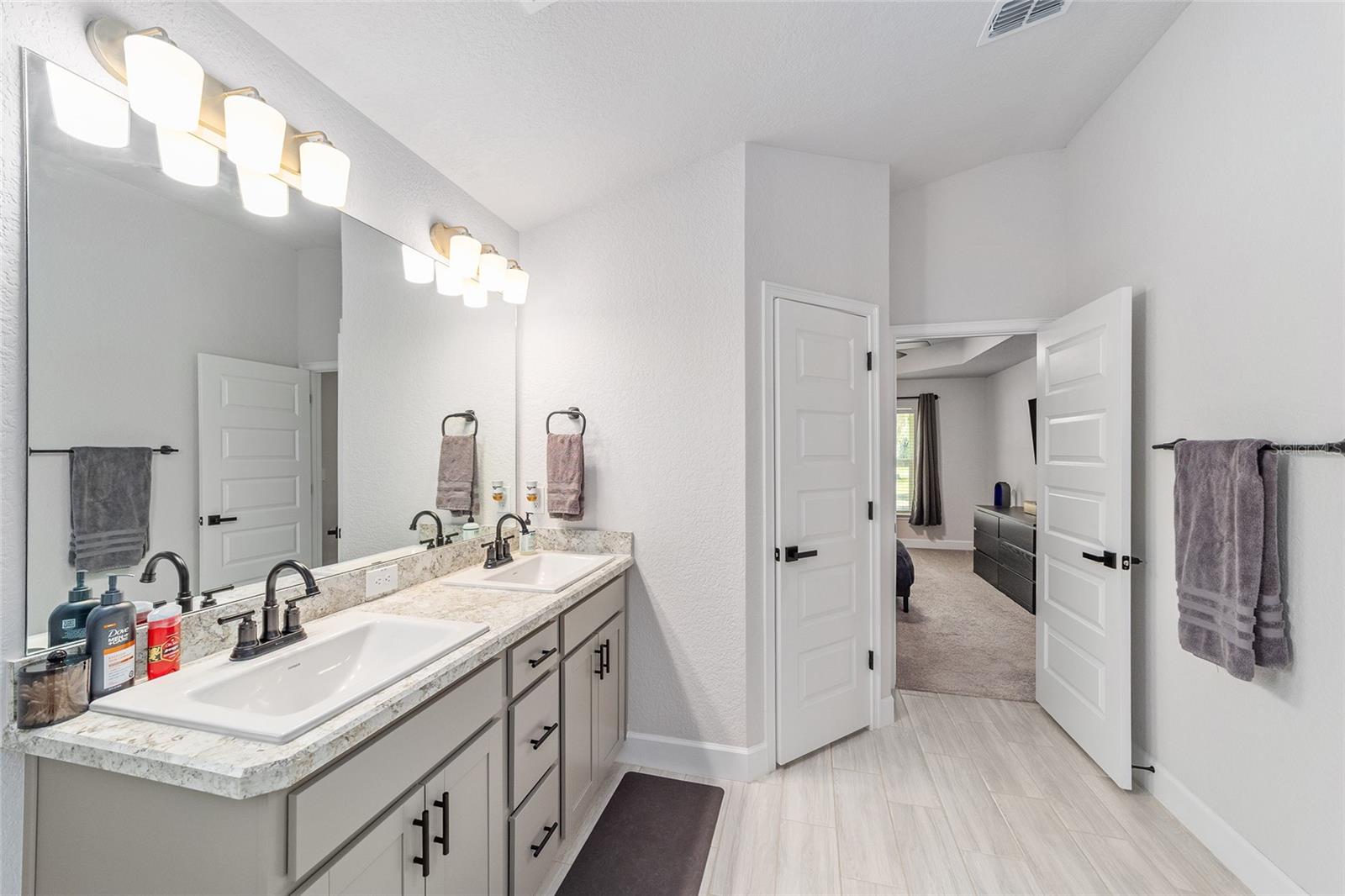 Melhor que novo! Esta bela casa de 3 quartos e 2 banheiros construída em 2023 pela Adams Homes está pronta e um preço para vender devido à realocação do proprietário-seu ganho! Localizado no condomínio fechado de St. James Park, esta casa apresenta paisagismo fácil de cuidados e vistas pacíficas do quintal da varanda coberta. No interior, você encontrará acabamentos neutros por toda parte, ventiladores de teto na maioria dos quartos e uma lavanderia interna com lavadora/secadora cinza Samsung, rack de secagem e armários de armazenamento. A espaçosa suíte primária oferece tetos de bandeja e um banho bem equipado com pias duplas, uma banheira de imersão e chuveiro separado.