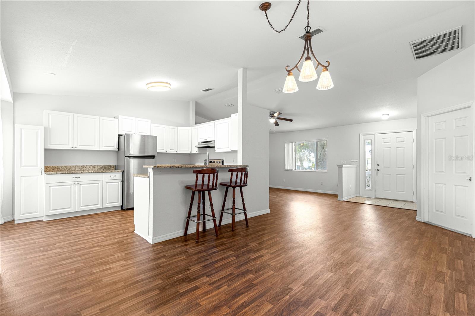 Certifique -se de conferir esta casa de modelo "cardeal" muito acessível de 1998, com 3 quartos, 2 banheiros e quarto fechado na Flórida com novos pisos de azulejos. O LR, o DR e a cozinha estão todos abertos um ao outro. Tops de granito e armários atualizados na cozinha, juntamente com os aparelhos SS. O quarto primário inclui banheira privada com chuveiro de azulejos e um closet. Existem dois quartos de hóspedes e banheiro de hóspedes. O banho de hóspedes possui uma banheira de banho de luxo. Quintal privado. O teto substituído em 2020. AC substituiu 2008 e o exterior foi recentemente pintado. A taxa de HOA inclui clubhouse, enorme piscina e muitas atividades e cook outs. Spectrum a cabo TV, Wi -Fi e remoção de lixo, todos incluídos. Compras e refeições próximas, juntamente com instalações de saúde e escritórios profissionais.