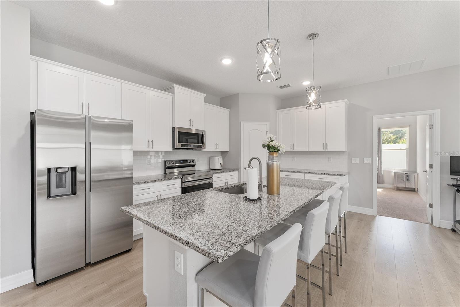 EXCELENTE OPORTUNIDADE DE POSSUIR esta casa lindamente reformada de 4 quartos e 3 banheiros COM UM NOVO AJUSTE DE PREÇO FANTÁSTICO. Construído em 2022, oferecendo quase 2.400 pés quadrados sob o teto de espaço vital de conceito aberto. Desde a elegante combinação de sala de jantar e sala de estar até o retiro no quintal totalmente fechado, cada detalhe desta casa pronta para morar foi projetado para oferecer conforto e estilo. Entre na espaçosa cozinha, uma verdadeira peça de exibição, com eletrodomésticos de aço inoxidável, bancadas de granito, uma grande ilha central com balcão para café da manhã, iluminação aprimorada e uma despensa - perfeita para entretenimento ou para a vida cotidiana. A suíte principal é um refúgio luxuoso, completa com tetos retangulares, pias duplas de granito e um amplo box amplo. Dois quartos adicionais oferecem amplo espaço para a família e convidados. O 4º quarto é uma suíte completa com banheiro privativo perfeito para os sogros. Do lado de fora, desfrute da privacidade em seu quintal totalmente cercado de vinil, perfeito para todos os seus animais de estimação. Esteja você organizando reuniões ou relaxando com um café da manhã, o pátio fechado cria um ambiente aconchegante e acolhedor. Um grande galpão adiciona armazenamento extra ou potencial de oficina. SEM taxas HOA nesta comunidade. Convenientemente localizado a poucos minutos da I-75 e do corredor Hwy 200, com suas lojas, restaurantes e centros médicos. Perto do renomado Centro Equestre Mundial e seus eventos durante todo o ano. Não perca a oportunidade de possuir este imóvel excepcional que combina a vida moderna com uma comodidade imbatível!