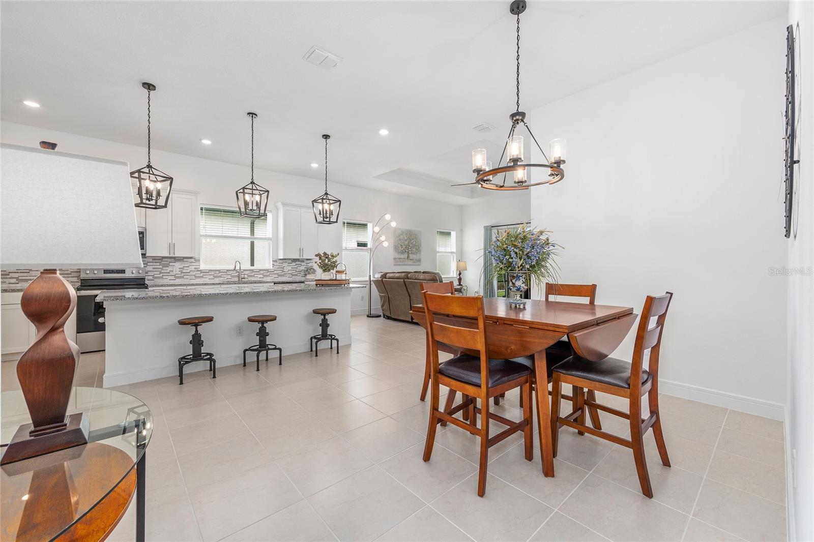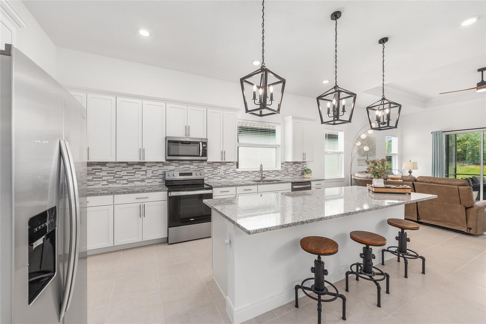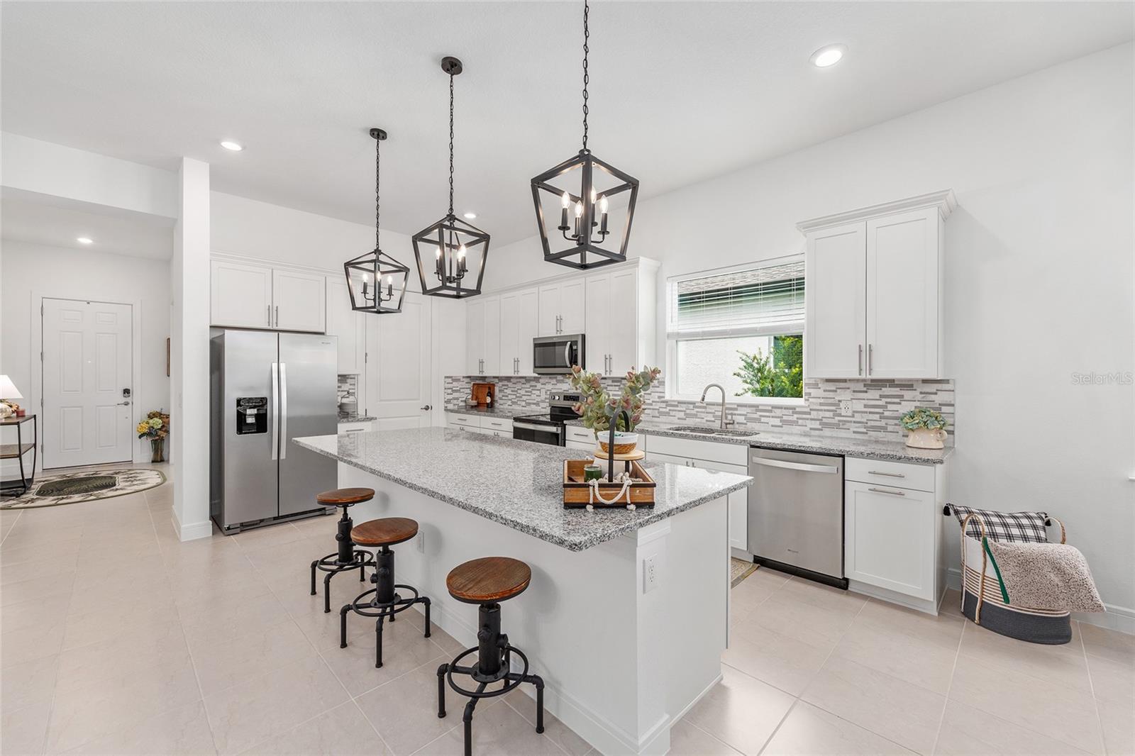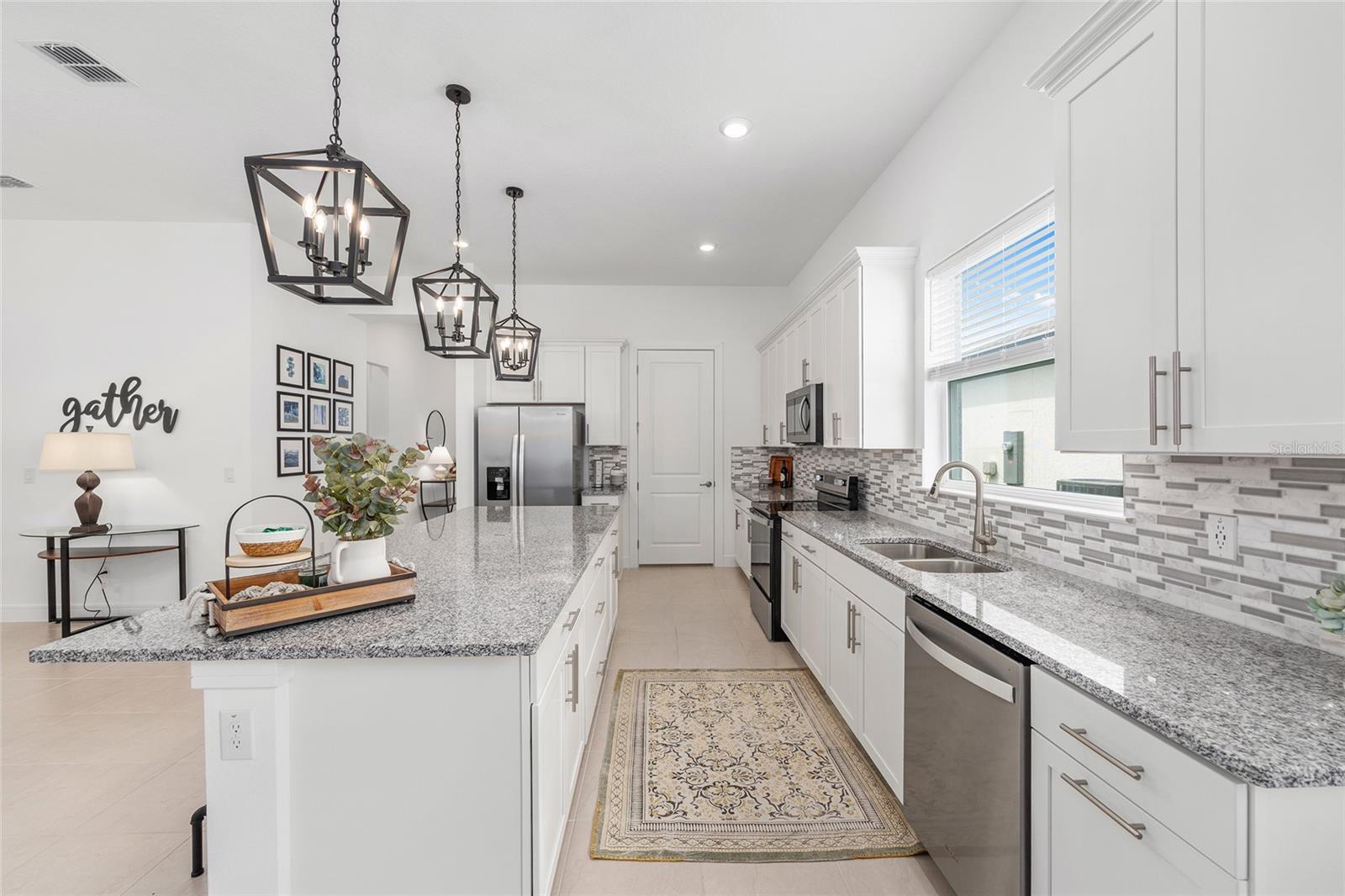 Bem -vindo ao seu retiro dos sonhos, um refúgio requintado para quem deseja uma mistura perfeita de elegância e conveniência sem a espera para construir. Localizada no bairro de Lexington, no Stone Creek, pela comunidade de Del Webb, este maassinário imaculado e imaculado mal usado o convida a se lutar em seu design polido e recursos cativantes. Com sua condição primitiva, essa propriedade promete ser o lar perfeito para quem procura tranquilidade e estilo em uma comunidade vibrante. Exibindo um design cuidadosamente selecionado, esta casa possui 2 quartos espaçosos e 2 banheiros bem equipados, coroados por generosos tetos de 10 pés que transmitem uma grandeza arejada. O coração da casa está em sua ampla cozinha, o sonho de um entusiasta da culinária que apresenta bancadas de granito reluzentes, utensílios de aço inoxidável, armários atualizados e um backsplash de bom gosto complementado pela iluminação pendente atualizada. A ampla despensa garante que todos os seus itens essenciais culinários estejam com fácil acesso. Os pisos de ladrilhos de cerâmica estão nas principais áreas de estar, banheiros e lavanderia, enquanto o carpete de pelúcia adiciona calor e conforto aos quartos. As persianas fornecem privacidade e controle sobre seu santuário pessoal. O quarto primário se entrega a um retiro em suíte equipado com um luxuoso chuveiro grande e com tampa de zero, uma vaidade com topo de quartzo e um espaçoso closet. O banheiro de hóspedes, igualmente refinado, possui uma banheira e uma bancada de quartzo. Um escritório ou sala flexível com uma janela de sacada cativante, portas francesas sólidas e uma conexão direta atualizada com a Internet de alta velocidade oferece um espaço sereno para trabalho ou relaxamento. Estenda sua vida ao ar livre com o amplo Lanai, perfeito para saborear o clima da Flórida em privacidade. Os recursos adicionais incluem um termostato inteligente Ecobee, uma porta de garagem sem fio MyQ, um sistema de amolecimento de água, uma pia na garagem, uma câmera de segurança com fio e uma conexão de TV no Lanai. A casa também vem com um título de cupim transferível. Esta casa extraordinária aguarda seus futuros residentes, oferecendo uma oportunidade notável de entrar em um estilo de vida de conforto, elegância e facilidade. Não perca a chance de tornar este próprio lar notável. Entre em contato conosco hoje para agendar uma visualização privada ou para obter mais informações. Abrace a vida que você sempre sonhou.