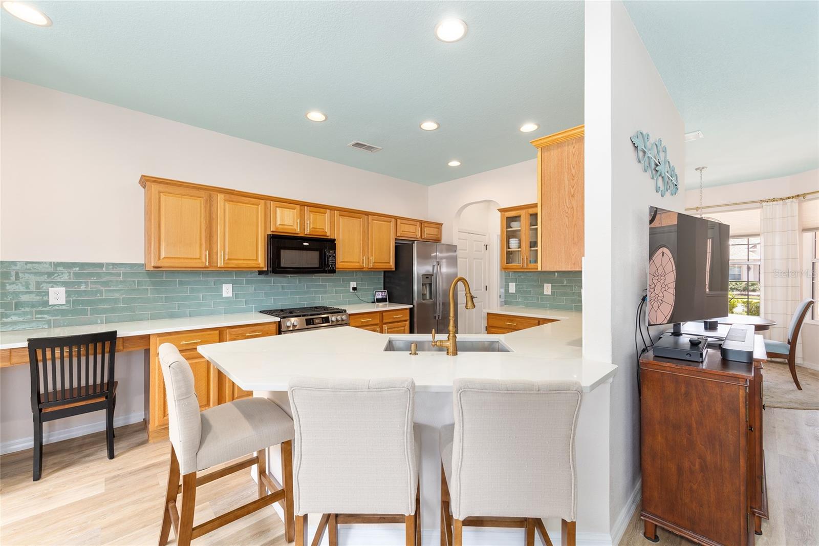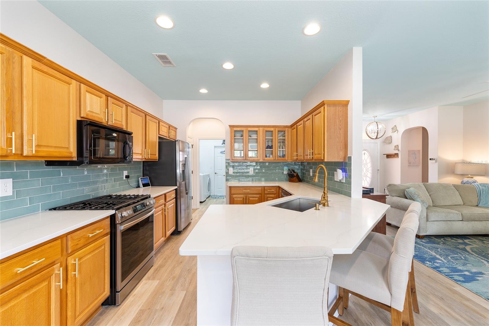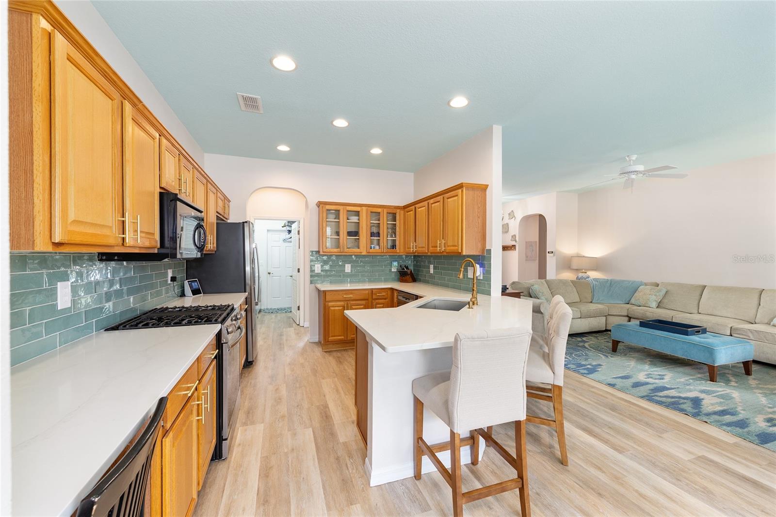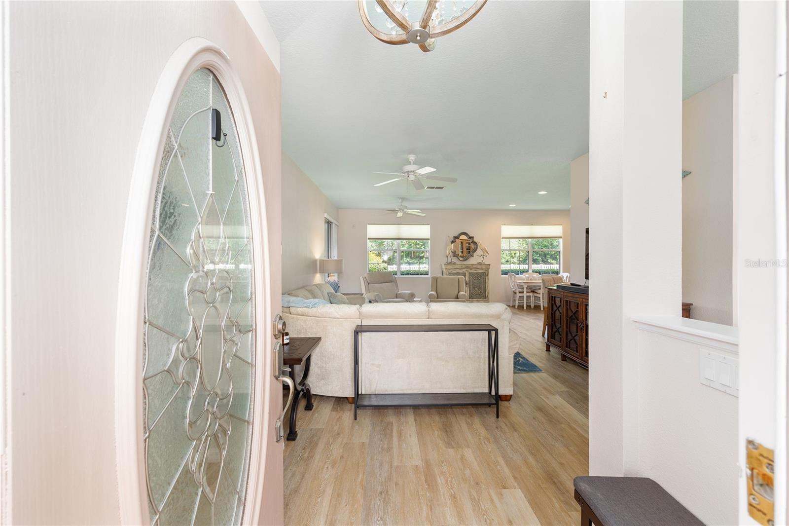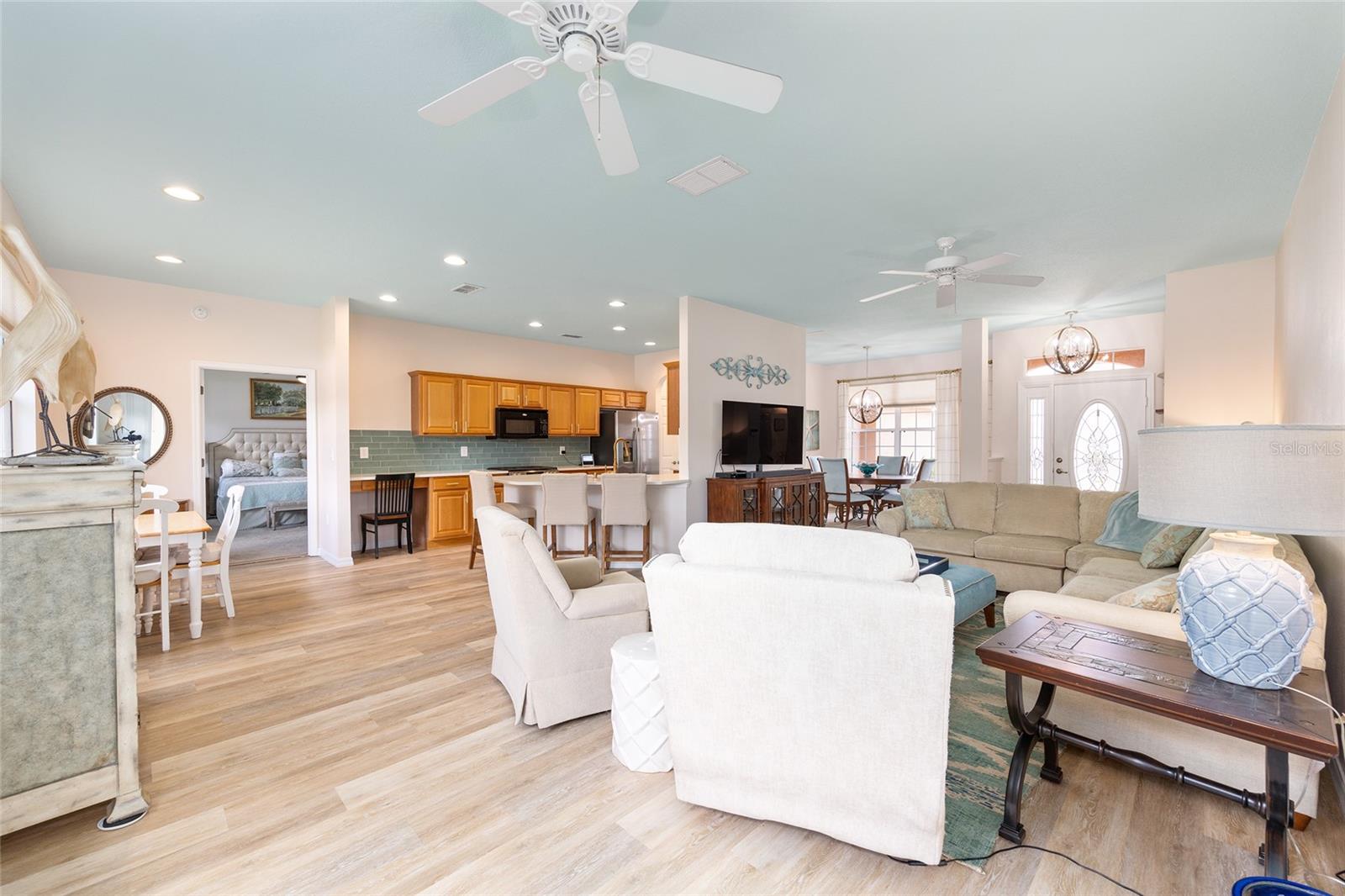 Lindamente atualizado em 3/2/2 em casa em Candler Hills, no topo da comunidade de campos de golfe de 55 anos do mundo. Ótimo apelo do meio -fio! 2023 telhado, 2023 aquecedor de água. Novo piso LVP (carpete em 2 quartos). Casa espaçosa com planta semi-aberta de 1827 pés, com grande sala de estar, sala de jantar formal e cozinha bonita com balcões de quartzo, backsplash de telha, alcance de gás, bar de café da manhã, comer em área, mesa embutida e despensa. Plano de quarto dividido. A suíte primária possui dois armários e privilégios com contador de quartzo, pias duplas, chuveiro personalizado com assento, armário de linho e armário de água. Lavanderia interna com banheira e armazenamento extra. Home possui 2024 amaciador de água e armazenamento aéreo na garagem. A Lanai exibida tem vista para o quintal particular com pátio de pavimentação e cercas de vinil. Desfrute do estilo de resort de Otow, que vive com campos de golfe, piscinas, centros de fitness, quadras de pickleball, quadras de tênis, caminhadas/ciclismo, parques para cães, grande campo de vôo de R/C particular, campo de softball, clubes e muito mais! Localização conveniente para compras, restaurantes, médicos, parques, entretenimento e o centro equestre mundial com acesso ao carrinho de golfe a dois shopping centers.