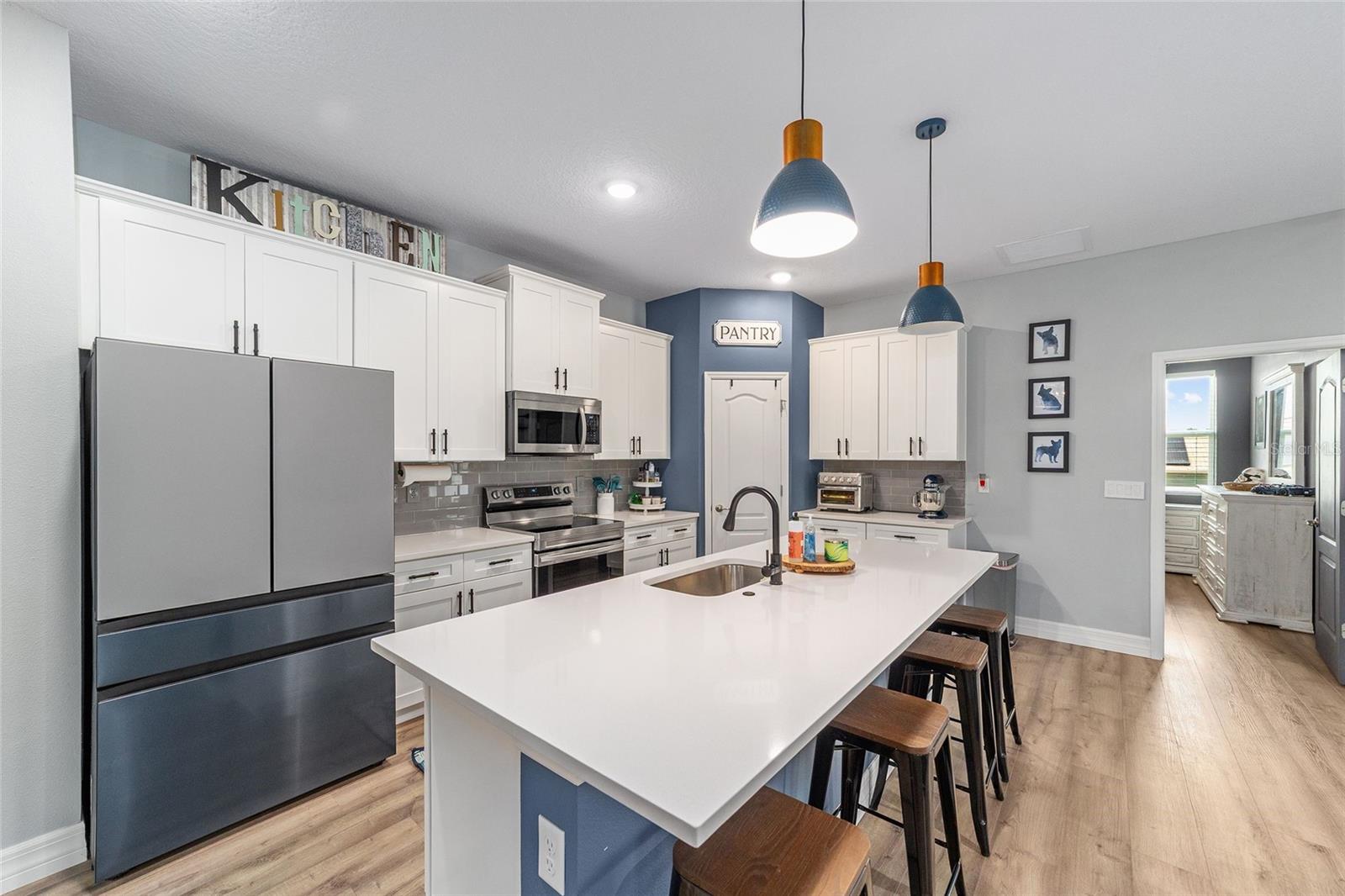 O vendedor que oferece 1% de crédito no fechamento dos custos de fechamento do comprador! Entre em sua casa quase nova nos sonhos na comunidade Serene Marion Oaks! Esta imaculada residência de 4 quartos e 3 banheiros oferece conforto e estilo modernos. Construído em 2022 com mais de 10k em atualizações, incluindo cercas de privacidade de vinil de quintal completas com portão duplo, tinta lavável premium por toda parte e sistema doméstico inteligente, incluindo luz, câmeras, campainha e fechadura da porta da frente com cubo de tablet abastado na parede. A convidativa planta aberta cria uma atmosfera espaçosa e arejada, perfeita para vida diária e entretenimento. Dividir a planta baixa com a suíte primária privada com os armários dele e delas. Há uma suíte adicional com banheiro privativo, além de dois quartos adicionais e um banheiro adicional. Desfrute de noites tranquilas ou reuniões animadas em seu pátio privado e coberto de costas, com vista para um quintal lindamente cercado. Esta casa está situada em um bairro tranquilo, fornecendo um retiro pacífico da agitação. No entanto, você apreciará o fácil acesso a Ocala, garantindo que as conveniências e atrações estejam a uma curta distância. Não perca a oportunidade de tornar a sua impressionante propriedade Marion Oaks a sua!