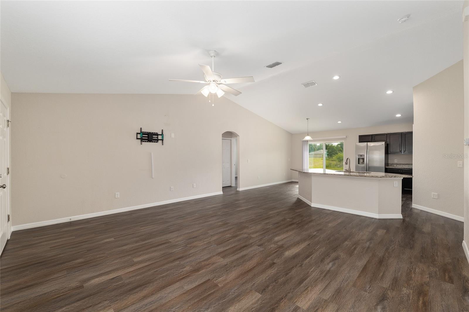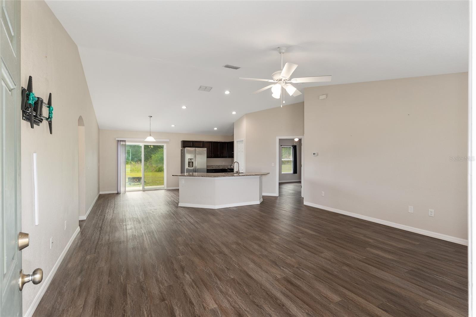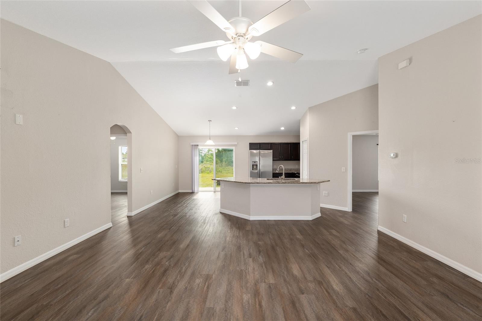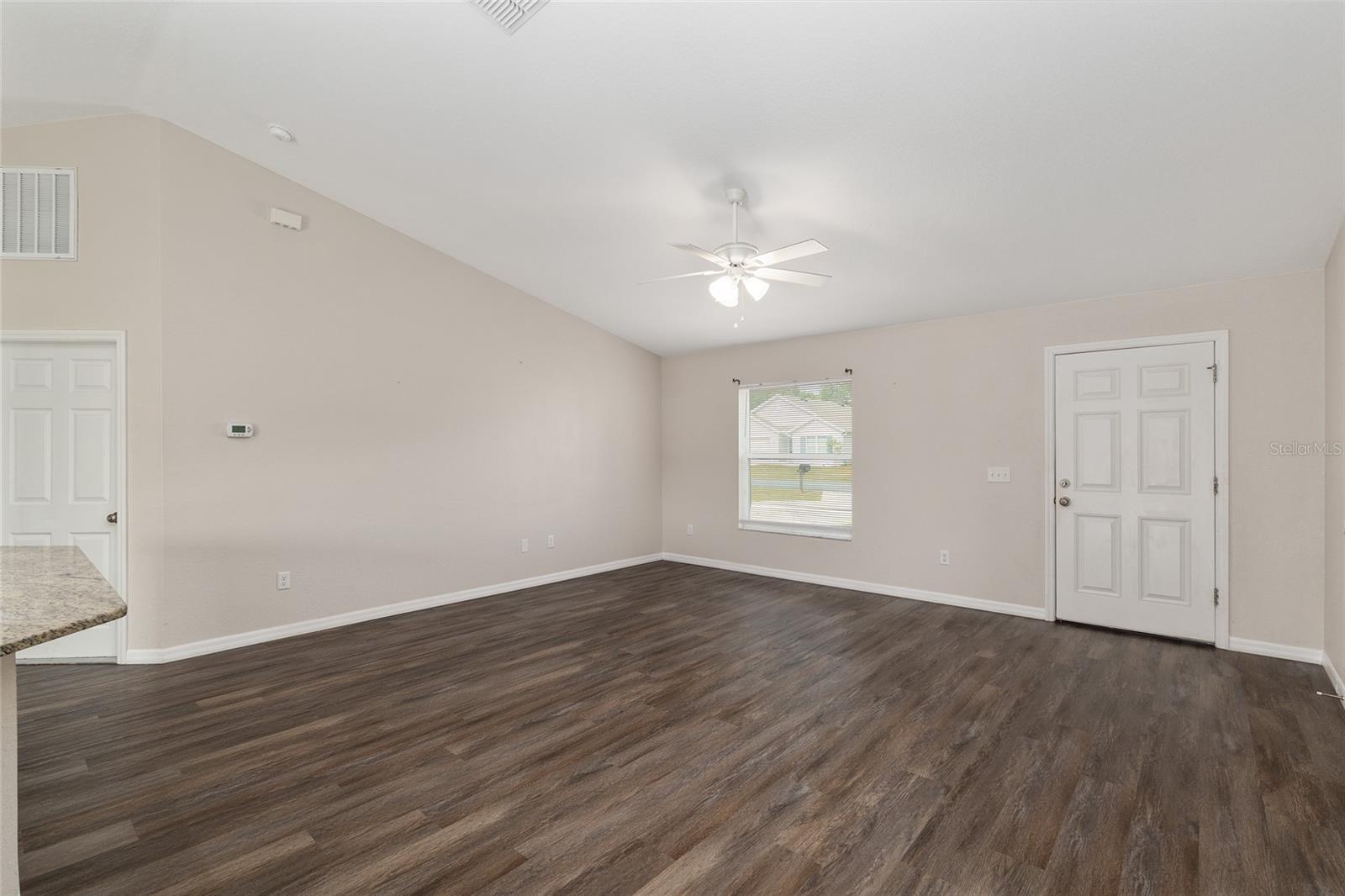 Entre na mistura perfeita de estilo, conforto e conveniência com esta casa de 3 quartos e dois quartos e 2 banheiros! Com preços à direita para a ocupação imediata, esta geme construída em 2020 possui tetos abobadados, luminagem liderada por LED, piso de tábua de vinil de luxo, ventiladores de teto e persianas de janelas por toda parte, complementadas por uma versátil paleta de cores neutra. Projetado para uma vida sem esforço, a planta aberta apresenta uma espaçosa sala da família fluindo perfeitamente para a área de jantar e cozinha. A cozinha moderna impressiona com assentos de altura de barra, bancadas elegantes de granito, um pacote de aparelhos de aço inoxidável, uma despensa para armazenamento extra e controles deslizantes de vidro que levam a um quintal generoso, perfeito para reuniões ao ar livre. A suíte primária oferece um retiro tranquilo com um grande closet e um banho de banheiro com uma vaidade com tampo de granito e um chuveiro forrado de azulejo. Aninhado a apenas alguns quilômetros ao sul do SR 200 no sudoeste de Ocala, esta comunidade encantadora oferece um cenário pacífico enquanto permanece a poucos minutos da I-75 e das aldeias. Desfrute de uma localização privilegiada, com fácil acesso a compras, restaurantes, instalações médicas e parques públicos, garantindo a conveniência a cada passo. Não perca a chance de fazer esta linda casa a sua!