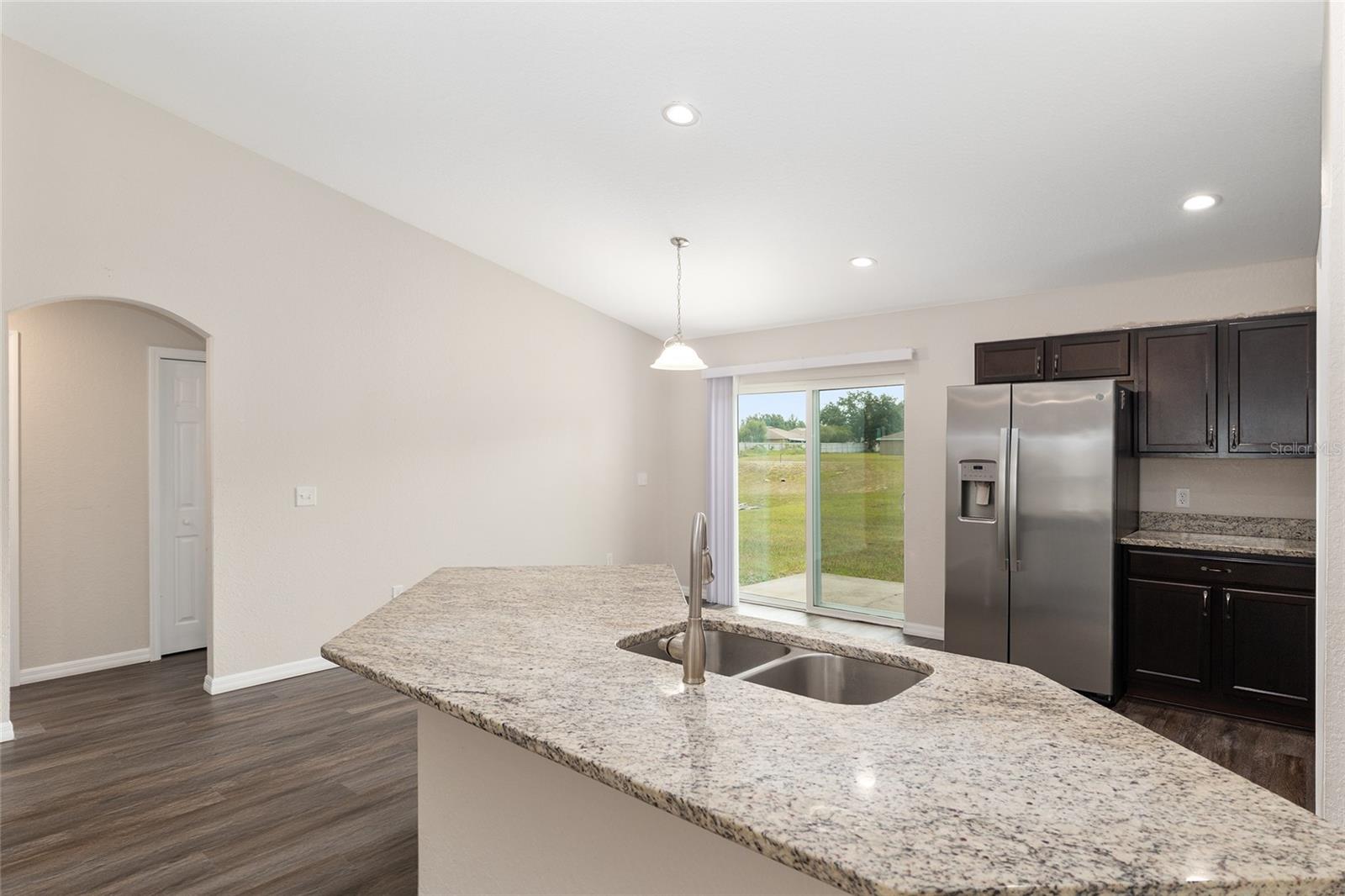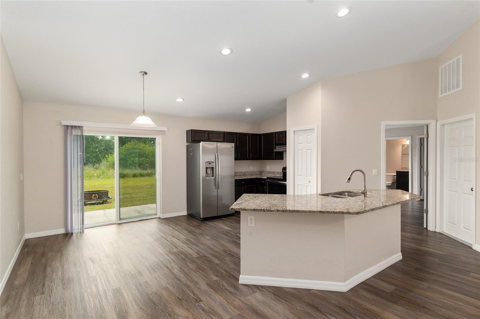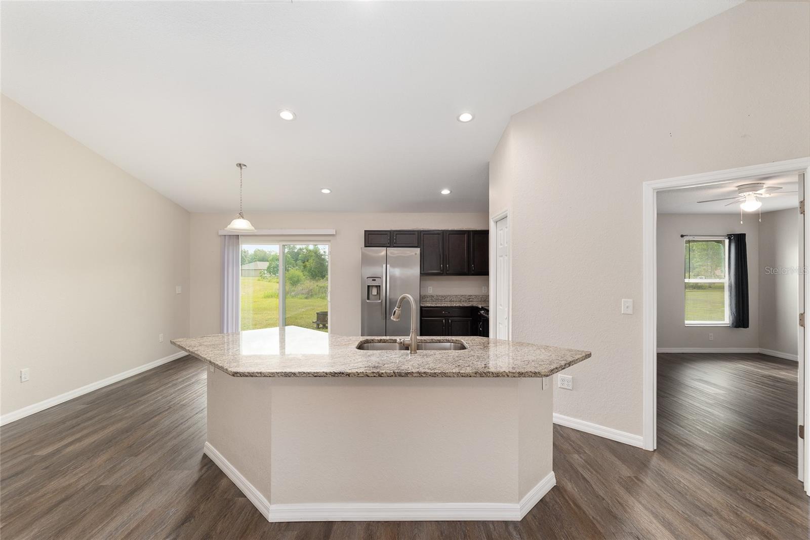 Entre na mistura perfeita de estilo, conforto e conveniência com esta casa de 3 quartos e dois quartos e 2 banheiros! Com preços à direita para a ocupação imediata, esta geme construída em 2020 possui tetos abobadados, luminagem liderada por LED, piso de tábua de vinil de luxo, ventiladores de teto e persianas de janelas por toda parte, complementadas por uma versátil paleta de cores neutra. Projetado para uma vida sem esforço, a planta aberta apresenta uma espaçosa sala da família fluindo perfeitamente para a área de jantar e cozinha. A cozinha moderna impressiona com assentos de altura de barra, bancadas elegantes de granito, um pacote de aparelhos de aço inoxidável, uma despensa para armazenamento extra e controles deslizantes de vidro que levam a um quintal generoso, perfeito para reuniões ao ar livre. A suíte primária oferece um retiro tranquilo com um grande closet e um banho de banheiro com uma vaidade com tampo de granito e um chuveiro forrado de azulejo. Aninhado a apenas alguns quilômetros ao sul do SR 200 no sudoeste de Ocala, esta comunidade encantadora oferece um cenário pacífico enquanto permanece a poucos minutos da I-75 e das aldeias. Desfrute de uma localização privilegiada, com fácil acesso a compras, restaurantes, instalações médicas e parques públicos, garantindo a conveniência a cada passo. Não perca a chance de fazer esta linda casa a sua!
