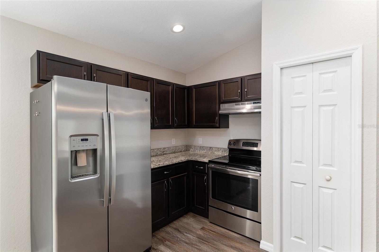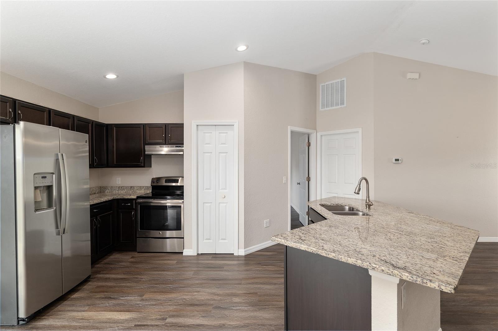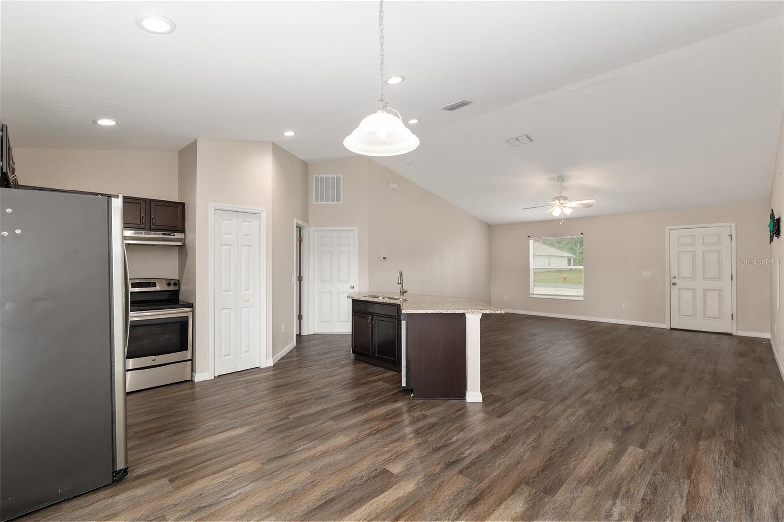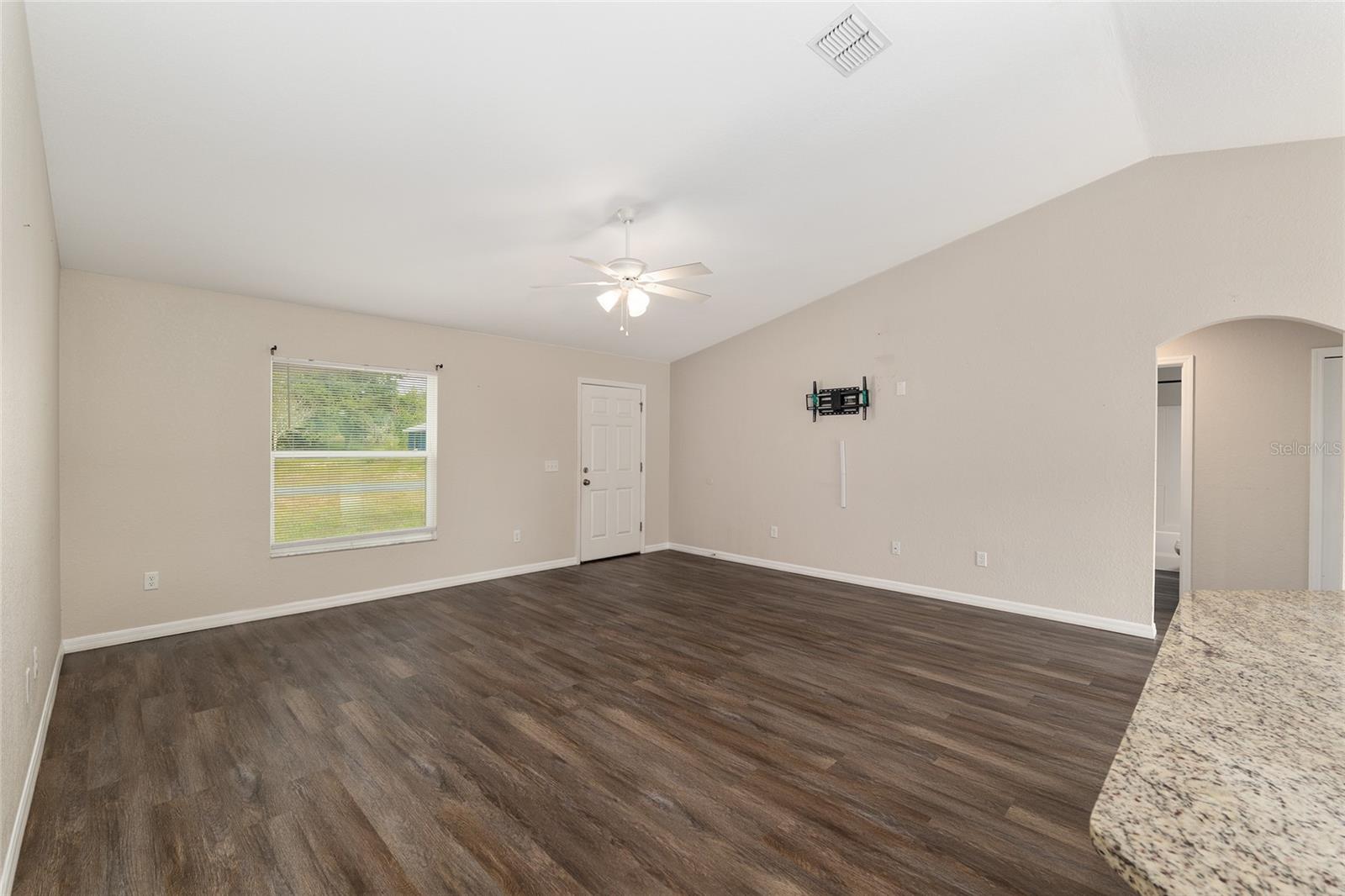 Entre na mistura perfeita de estilo, conforto e conveniência com esta casa de 3 quartos e dois quartos e 2 banheiros! Com preços à direita para a ocupação imediata, esta geme construída em 2020 possui tetos abobadados, luminagem liderada por LED, piso de tábua de vinil de luxo, ventiladores de teto e persianas de janelas por toda parte, complementadas por uma versátil paleta de cores neutra. Projetado para uma vida sem esforço, a planta aberta apresenta uma espaçosa sala da família fluindo perfeitamente para a área de jantar e cozinha. A cozinha moderna impressiona com assentos de altura de barra, bancadas elegantes de granito, um pacote de aparelhos de aço inoxidável, uma despensa para armazenamento extra e controles deslizantes de vidro que levam a um quintal generoso, perfeito para reuniões ao ar livre. A suíte primária oferece um retiro tranquilo com um grande closet e um banho de banheiro com uma vaidade com tampo de granito e um chuveiro forrado de azulejo. Aninhado a apenas alguns quilômetros ao sul do SR 200 no sudoeste de Ocala, esta comunidade encantadora oferece um cenário pacífico enquanto permanece a poucos minutos da I-75 e das aldeias. Desfrute de uma localização privilegiada, com fácil acesso a compras, restaurantes, instalações médicas e parques públicos, garantindo a conveniência a cada passo. Não perca a chance de fazer esta linda casa a sua!