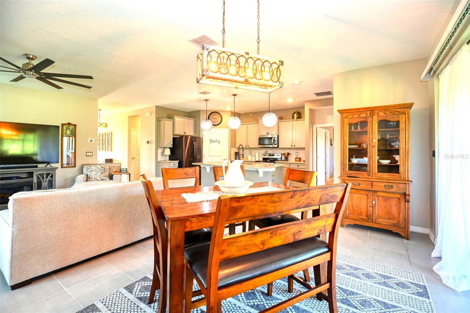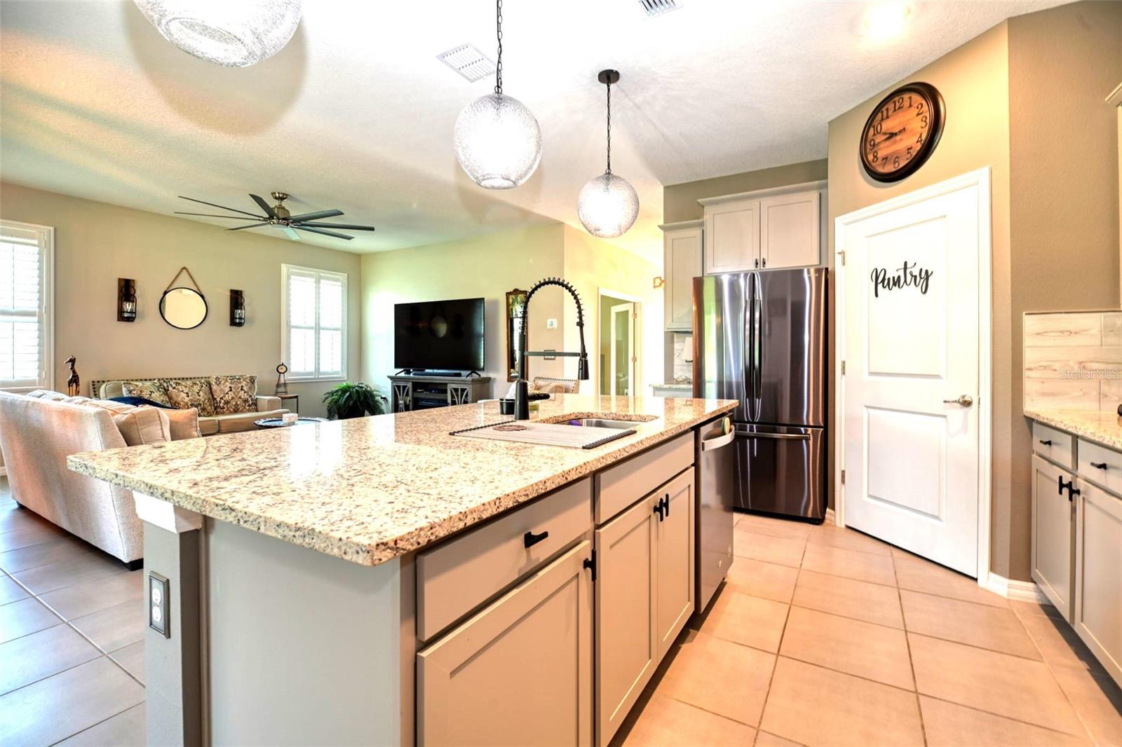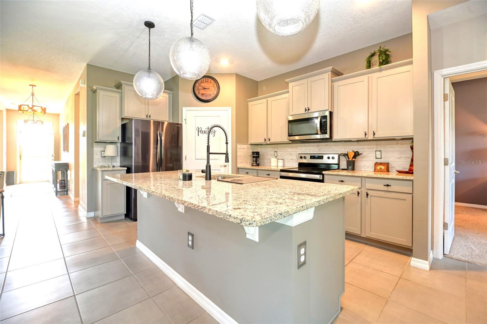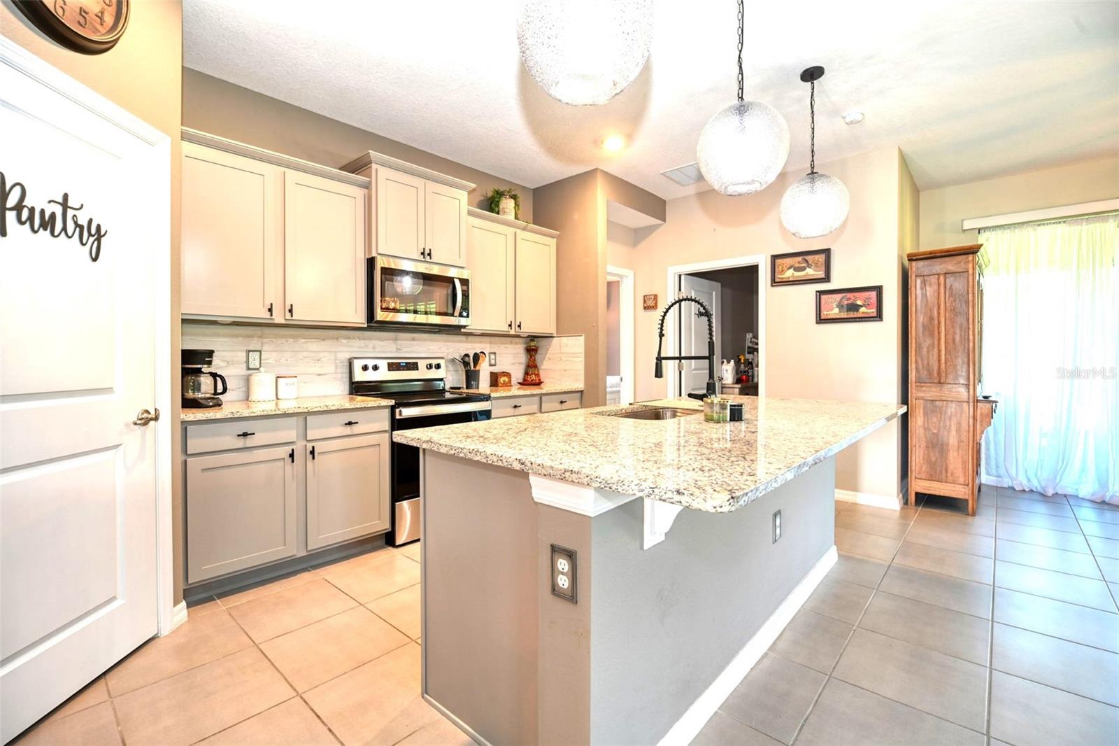 Bem -vindo a esta bela casa modelo Clifton com 1.811 pés quadrados de espaço para estar! O terceiro quarto é atualmente usado como um espaço flexível/flexível. Construído em 2021, esta residência está localizada na comunidade fechada de 55 anos de JB Ranch. Esta casa inteligente é construída com bloco de concreto e inclui tetos de 9 pés, janelas de grau de furacão e atualizações como uma porta de tempestade, persianas de plantações e luminárias de ponta e ventiladores de teto com interruptores mais escuros. O layout de conceito aberto possui uma grande ilha de granito que oferece amplo assento, espaço de preparação para refeições, áreas de jantar casuais e espaço para socializar. Recursos adicionais incluem uma despensa espaçosa e um backsplash lindamente azulejo que complementa as bancadas de granito e armários atraentes. A expansiva sala de reuniões flui perfeitamente através das portas de vidro deslizantes no pátio com tela coberta, equipada com tons de sol de qualidade que filtram a luz solar e garantem privacidade. Desfrute de uma visão pacífica, sem vizinhos traseiros, pois o pátio tem vista para uma área de retenção tranquila, onde a natureza e a privacidade coexistem. Esta casa excepcional também inclui um sistema de amaciador de água para casa, uma lavanderia completa com uma lavadora e secadora e um sistema espaçoso e de irrigação, garagem isolada com amplo armazenamento para o seu carrinho de golfe e ferramentas. O grande suíte primário possui armários personalizados para atender a todas as suas necessidades de armazenamento, bem como um banheiro na suíte com um grande chuveiro, uma vaidade de granito dupla e um armário de água. O segundo quarto está convenientemente localizado na frente da casa, enquanto a sala flexível flexível pode funcionar como um terceiro quarto, quarto de hóspedes, escritório ou espaço para hobby. Esta comunidade vibrante apresenta uma entrada fechada para maior segurança e tranquilidade. As comodidades de luxo incluem um clube com cozinha e biblioteca, uma sala multiuso, uma piscina e pátio, além de quadras de bocha e pickleball.