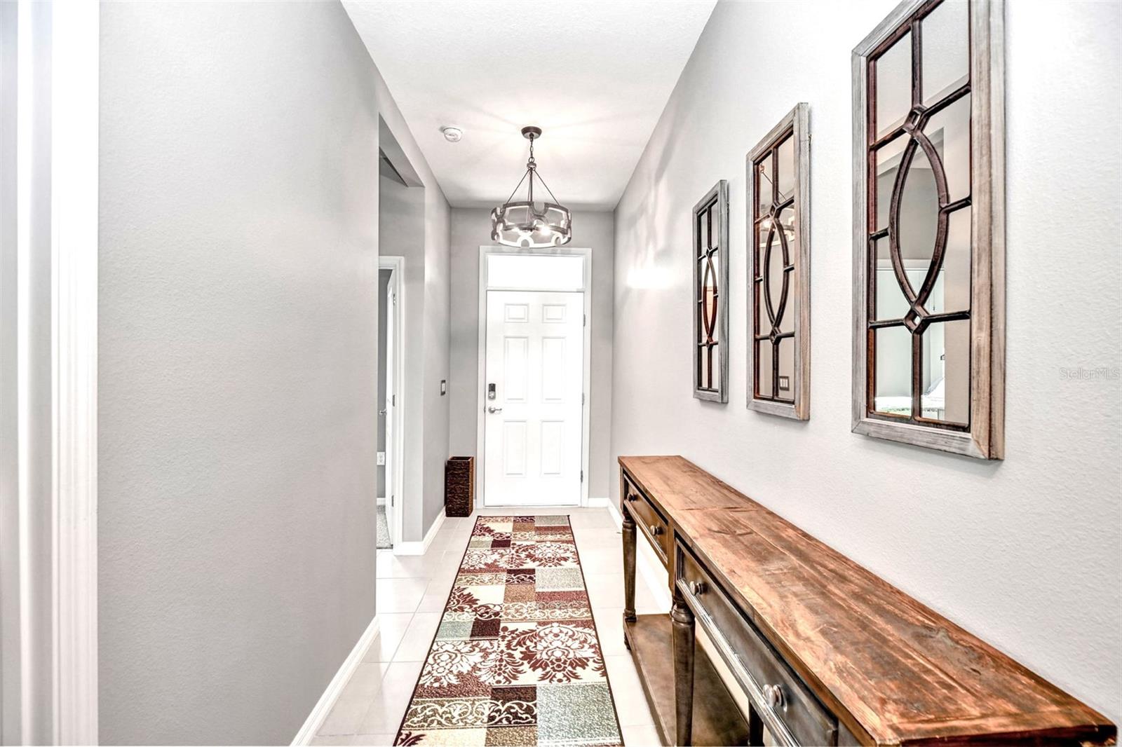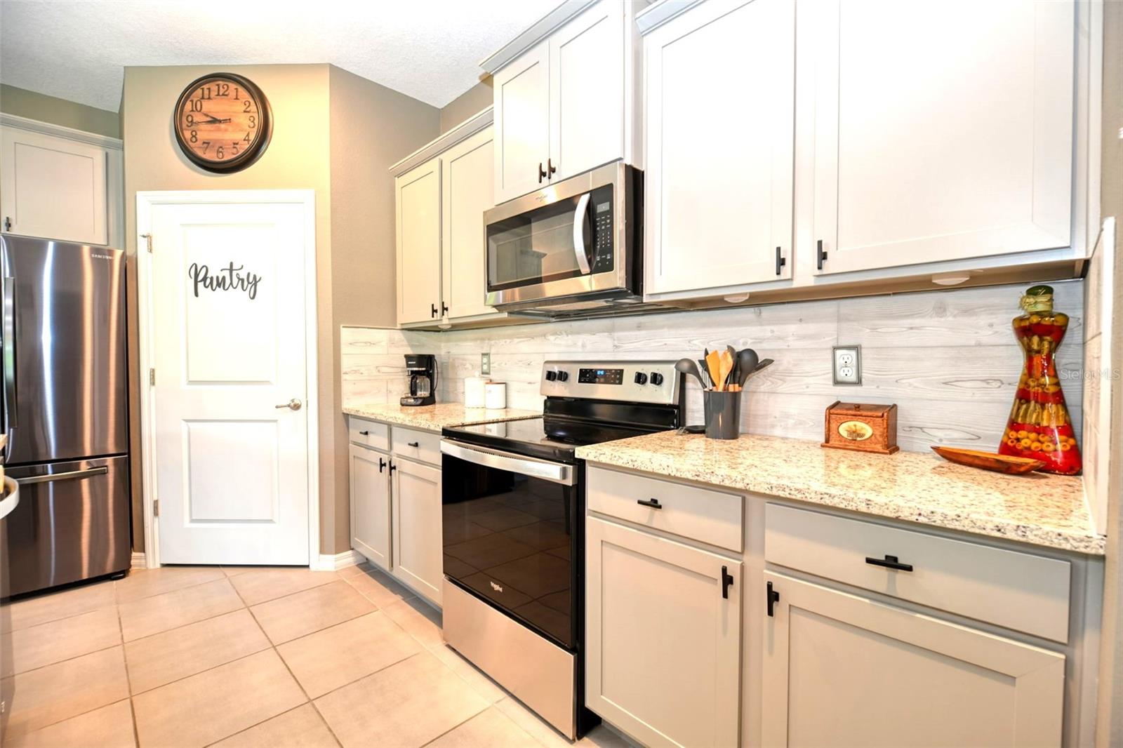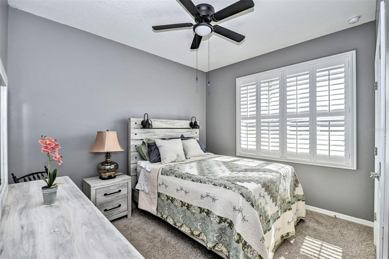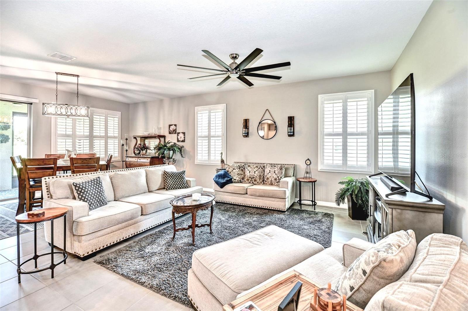 Bem -vindo a esta bela casa modelo Clifton com 1.811 pés quadrados de espaço para estar! O terceiro quarto é atualmente usado como um espaço flexível/flexível. Construído em 2021, esta residência está localizada na comunidade fechada de 55 anos de JB Ranch. Esta casa inteligente é construída com bloco de concreto e inclui tetos de 9 pés, janelas de grau de furacão e atualizações como uma porta de tempestade, persianas de plantações e luminárias de ponta e ventiladores de teto com interruptores mais escuros. O layout de conceito aberto possui uma grande ilha de granito que oferece amplo assento, espaço de preparação para refeições, áreas de jantar casuais e espaço para socializar. Recursos adicionais incluem uma despensa espaçosa e um backsplash lindamente azulejo que complementa as bancadas de granito e armários atraentes. A expansiva sala de reuniões flui perfeitamente através das portas de vidro deslizantes no pátio com tela coberta, equipada com tons de sol de qualidade que filtram a luz solar e garantem privacidade. Desfrute de uma visão pacífica, sem vizinhos traseiros, pois o pátio tem vista para uma área de retenção tranquila, onde a natureza e a privacidade coexistem. Esta casa excepcional também inclui um sistema de amaciador de água para casa, uma lavanderia completa com uma lavadora e secadora e um sistema espaçoso e de irrigação, garagem isolada com amplo armazenamento para o seu carrinho de golfe e ferramentas. O grande suíte primário possui armários personalizados para atender a todas as suas necessidades de armazenamento, bem como um banheiro na suíte com um grande chuveiro, uma vaidade de granito dupla e um armário de água. O segundo quarto está convenientemente localizado na frente da casa, enquanto a sala flexível flexível pode funcionar como um terceiro quarto, quarto de hóspedes, escritório ou espaço para hobby. Esta comunidade vibrante apresenta uma entrada fechada para maior segurança e tranquilidade. As comodidades de luxo incluem um clube com cozinha e biblioteca, uma sala multiuso, uma piscina e pátio, além de quadras de bocha e pickleball.