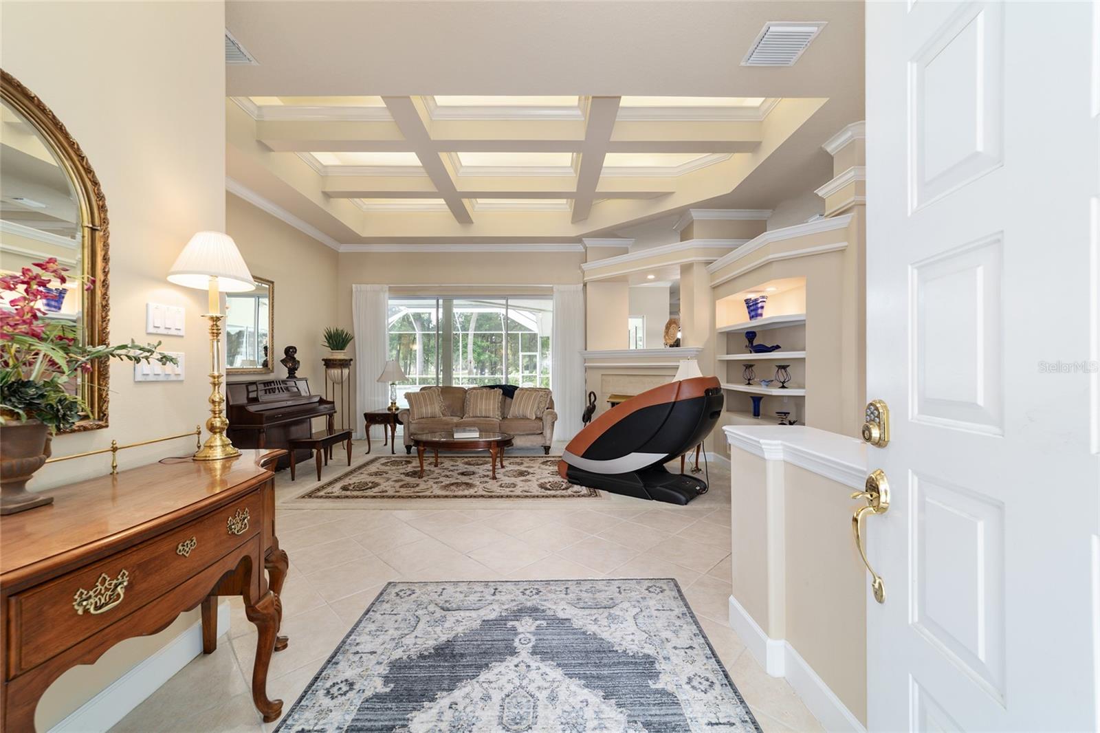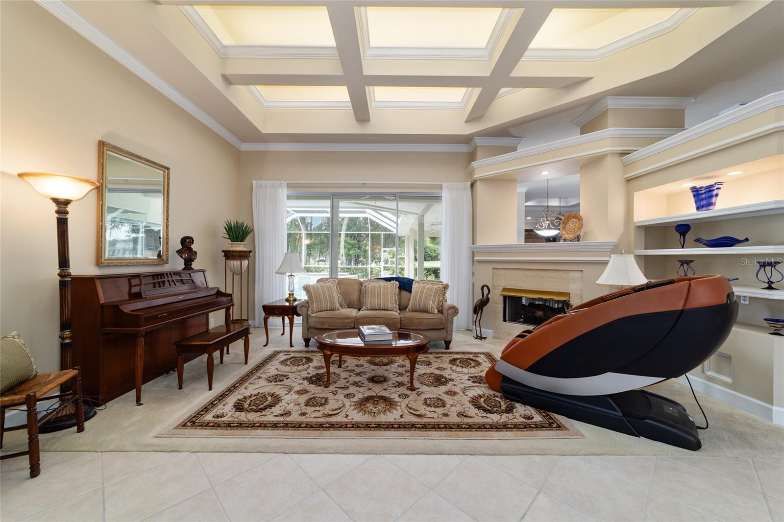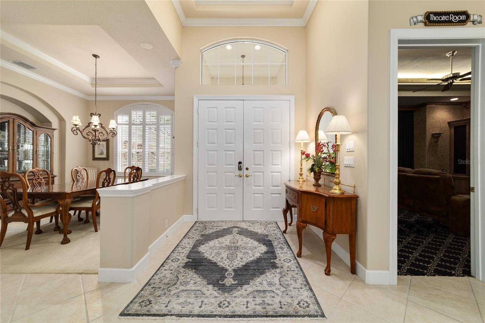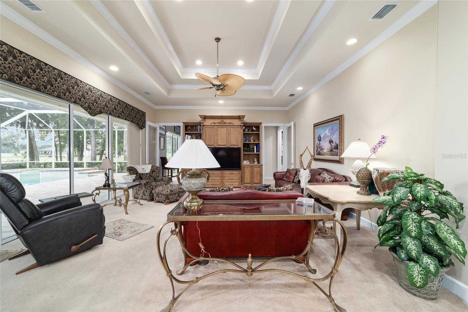 Bem-vindo a esta impressionante casa de 4 quartos/3 banheiros Rutenberg, com 4.614 pés quadrados de metragem quadrada e situada em um condomínio fechado com belas vistas do 18º buraco. Entre para encontrar uma planta tríplice bem planejada que inclui salas de vida e jantar formais, um escritório particular e uma espaçosa sala de bônus/jogo com controles deslizantes que se abrem para a piscina. Desfrute de noites de cinema em sua própria sala de teatro - perfeita para entreter hóspedes ou relaxar com a família. O coração da casa é a cozinha expansiva, com armários abundantes e uma grande ilha central completa com bancadas em granito. Uma sala de café da manhã aconchegante compartilha lareira de dupla face com sala de estar formal e tem uma janela de vidro com mitered com vista para a piscina e a Lanai. A sala da família, com embutidos também se abre para a área da piscina com portas de vidro deslizantes, criando um fluxo sem interior de interior. A espaçosa suíte primária tem grandes armários e um banho de spa. O quarto 2 tem seu próprio banheiro privativo, enquanto os quartos 3 e 4 compartilham um conveniente layout Jack and Jill. Saia para o seu oásis de quintal particular! O lanai coberto de tela oferece um retiro sombreado, enquanto a piscina de água salgada é cercada por um belo deck pavimentado-perfeito por absorver o sol ou divertir amigos e familiares. Os recursos adicionais incluem uma lavanderia espaçosa, uma garagem de 3 carros anexada e uma garagem isolada para armazenamento extra ou hobbies. Com seu layout espaçoso e vistas imbatíveis do campo de golfe, você não vai querer perder este !!