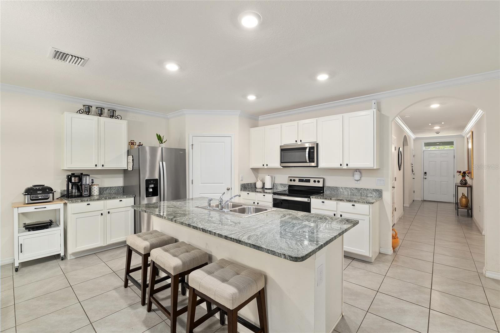 O vendedor que oferece US $ 3.000 para os custos de fechamento do comprador! Bem-vindo a esta casa de bloco de concreto bem mantida, oferecendo uma planta baixa, bem projetada, com 1.827 pés quadrados de espaço de estar e 2.377 pés quadrados sob o teto. Construído em 2023, esta casa é praticamente nova, mostrando a construção moderna, a eficiência energética e a vida de baixa manutenção. Entre para encontrar dois quartos de hóspedes e um banheiro completo de um lado, com um terceiro quarto e a lavanderia, cuidadosamente posicionada no lado oposto - perfeito para adicionar a privacidade. Um corredor central leva à cozinha de conceito aberto, refeições e área de estar na parte traseira da casa, criando um ambiente espaçoso e convidativo para a vida diária e o entretenimento. A cozinha tem vista para a sala de estar, garantindo um fluxo natural e uma interação fácil enquanto cozinha ou hospedava convidados. A suíte primária está escondida no canto de trás, oferecendo um retiro pacífico completo com um banheiro privativo generoso e um closet. A garagem apresenta um elegante piso revestido de epóxi, adicionando durabilidade e uma aparência polida. Saia de um quintal emoldurado por uma cerca preta no estilo de alumínio, oferecendo uma visão clara da paisagem natural e adicionando definição e segurança. Esta casa também vem equipada com uma variedade de recursos inteligentes e focados na segurança, incluindo calhas de chuva, detectores de monóxido de carbono, uma campainha de anel e um sistema de segurança com sensores de quebra de vidro. Uma garantia doméstica transferível agrega ainda mais valor e tranquilidade para o próximo proprietário. Esta é uma oportunidade fantástica de possuir uma casa confortável e funcional em excelente estado - agende sua exibição particular hoje!