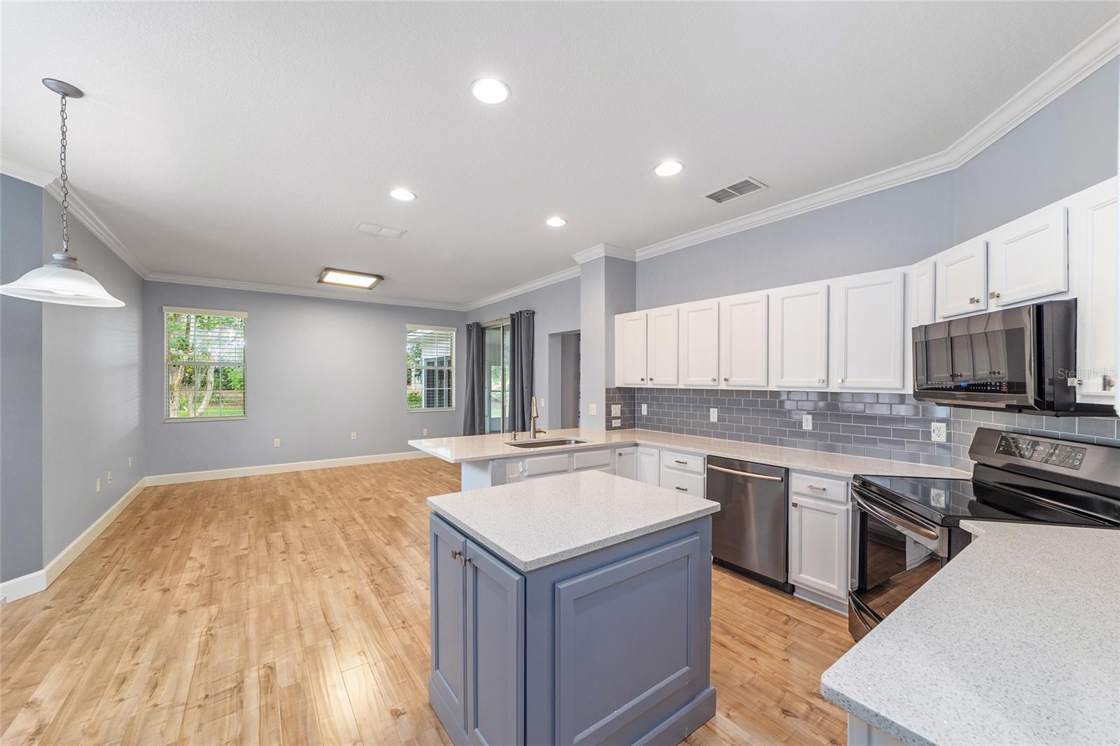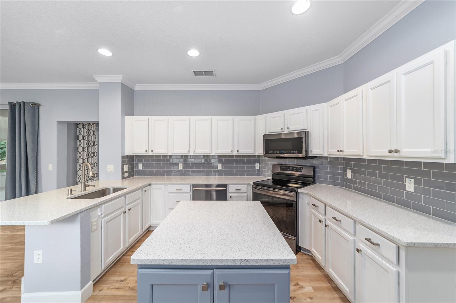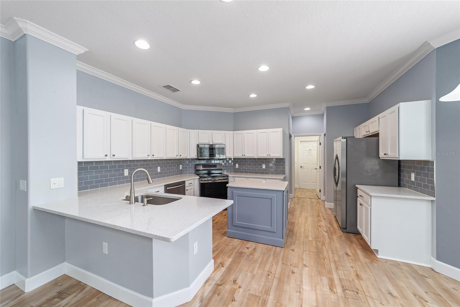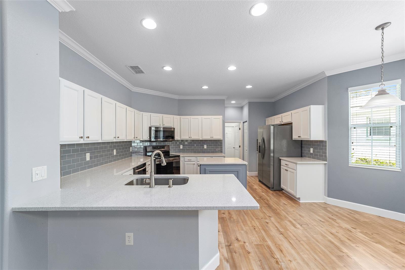 LOT PRIVADO, MODELO DE HEATHER-TOMELTO ATUALIZADO E MOVIMENTO PRONTO! Esta casa de garagem de 3 quartos, 2 banheiros e 2 carros atualizada, oferece estilo moderno, design atencioso e conforto por toda parte. O coração da casa é a cozinha nova com armários personalizados, bancadas elegantes de quartzo, aparelhos modernos de aço inoxidável defumado e um fogão de indução. O laminado à prova d'água e o piso de ladrilhos fluem perfeitamente através do layout aberto (sem carpete), acentuado por molduras de coroa atualizadas e rodapés em todas as salas. O Lanai de 15x19 de grandes dimensões é perfeito para relaxar ou divertir, com vista para um lote de canto privado lindamente paisagístico e sombreado. A espaçosa suíte primária possui dois armários de walk-in e um luxuoso banho banheiro privativo com um chuveiro de rolagem de pedra, três cabeças de chuveiro, vaidade dupla e um vaso sanitário privado. O banho de hóspedes é igualmente impressionante com uma banheira de imersão aquecida e jato. Projetado para conforto e eficiência, esta casa inclui um gerador de casa completa, guarda de calor e foi adaptada para a acessibilidade amiga da mobilidade. As principais atualizações incluem um novo telhado (2024) e HVAC (2020). Um achado raro com atualizações de primeira linha-não perca a chance de possuir esse modelo excepcional Heather!