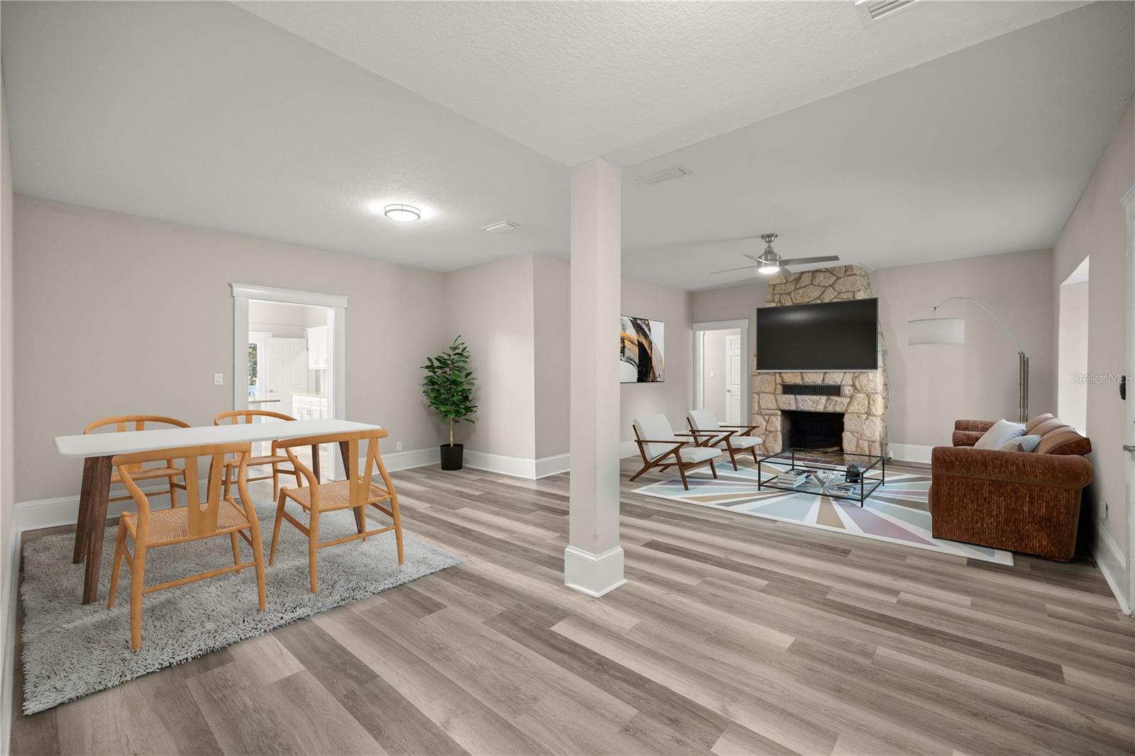 Uma ou mais fotos foram virtualmente encenadas. *FINANCIAMENTO OPCIONAL PELO PROPRIETÁRIO* Você ficará impressionado a partir do momento em que dirigir até esta linda casa recém-renovada de 3 quartos e 2,5 banheiros! SEM HOA, SEM CDD e sentado em mais de 1/3 acre de paisagismo exuberante e árvores de sombra majestosas! O charme do design original permanece, além de atualizações cuidadosas para incluir a combinação perfeita de conveniência e conforto! Observe o piso de vinil luxuoso por toda parte, NOVAS janelas com eficiência energética, incluindo uma janela panorâmica deslumbrante, ventiladores de teto, rodapés moldados de 10 "com moldura de porta contínua, lareira de pedra a lenha cativante e 3 quartos GRANDES com armários extragrandes. Você escolhe o quarto principal... será o quarto que tem armários duplos com o segundo armário grande o suficiente para ser um escritório, berçário ou armazenamento extra? Ou o 2º quarto com armários duplos e um banheiro spa de grandes dimensões, ou o 3º quarto com amplo closet e lavabo. Os banheiros apresentam acessórios modernos, armários de madeira real, bancadas de granito, chuveiros lindamente revestidos e amplo espaço de armazenamento. Você não pode perder o coração da casa, a cozinha atualizada, com eletrodomésticos profissionais de aço inoxidável, incluindo fogão a gás, armários de madeira, bancadas de granito, backsplash de azulejos, grande ilha central para preparação e assentos extras e toneladas de armazenamento no armário. esta casa dá o tom para relaxamento e entretenimento. Outras características incluem uma lavanderia interna, uma garagem enorme para 2 carros com piso de garagem acabado e um quintal totalmente cercado - perfeito para a família e animais de estimação brincarem.