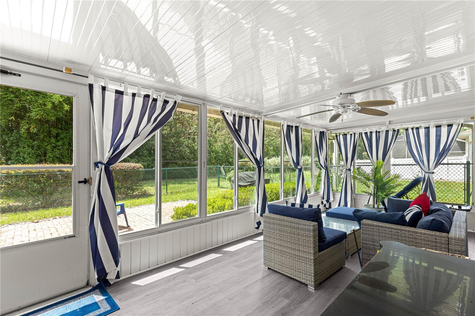 Este popular modelo Bostoniano está localizado na muito procurada 55 comunidade de On Top of the World. A varanda da frente é perfeita para a sua xícara de café da manhã neste parque tranquilo como a rua. Esta unidade final Villa tem apenas carpete no quarto de hóspedes. LVP neutro e piso de azulejos por toda parte. Você entra no confortável espaço de vida/jantar com persianas de plantações durante a maior parte da casa. A grande cozinha tem muito espaço no gabinete (refinada), incluindo uma grande ilha central com bloco de açougueiro. Countagens de granito no resto com um backsplash bonito. Aparelhos de aço inoxidável. Amplo espaço aberto, perfeito para entreter familiares e amigos. Há um rastreado adicional em Lanai que tem vista para o seu quintal particular, uma área de pavimentadora para grelhar e uma cerca para nossos amigos peludos. A espaçosa suíte primária tem um closet e o banho tem um chuveiro. O segundo quarto é do tamanho certo para os hóspedes/família e banheira possui uma combinação de banheira/chuveiro. Não espere para ligar para sua consulta para visualizar hoje!