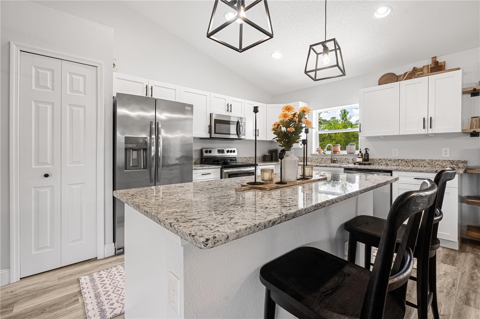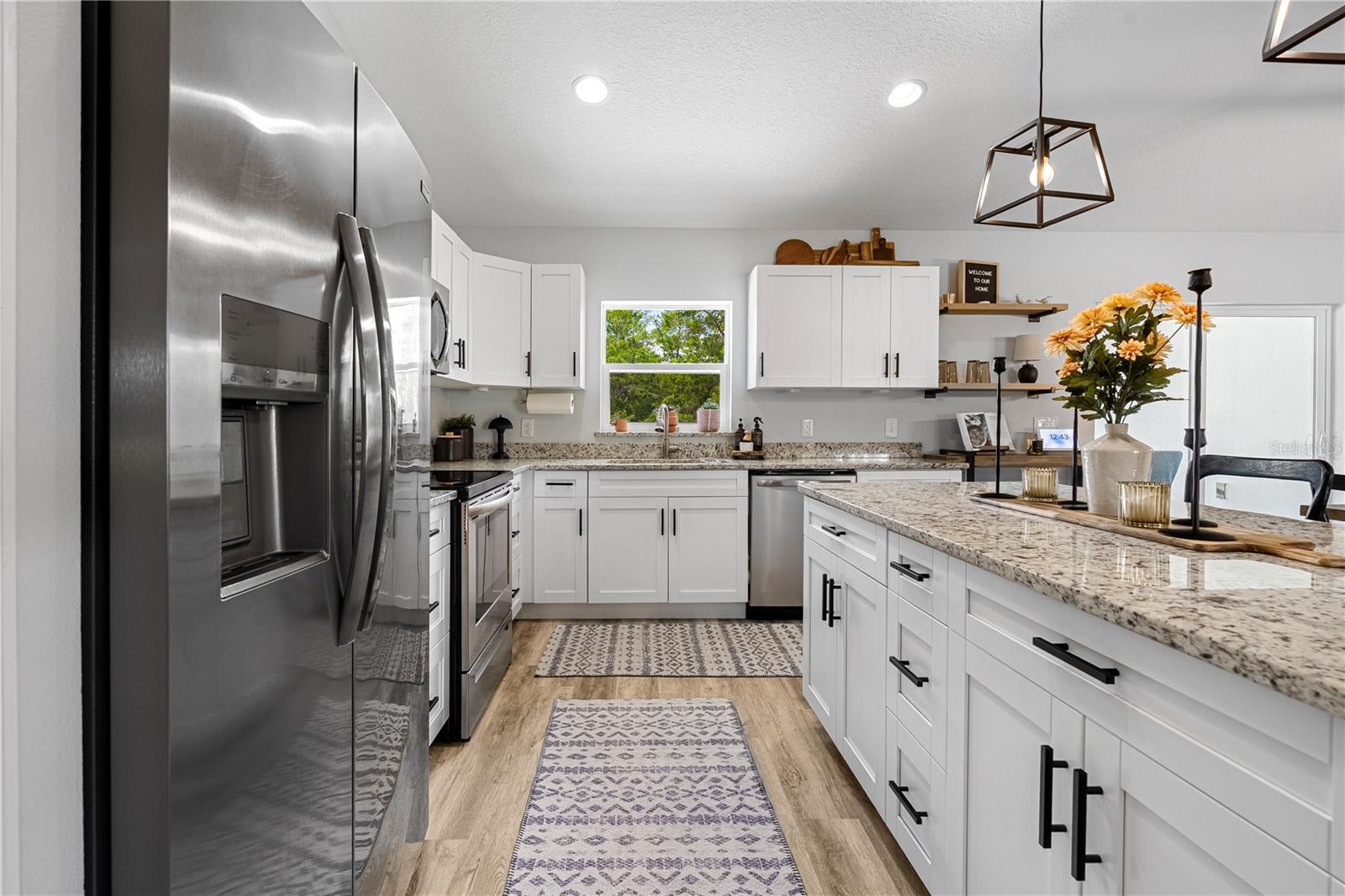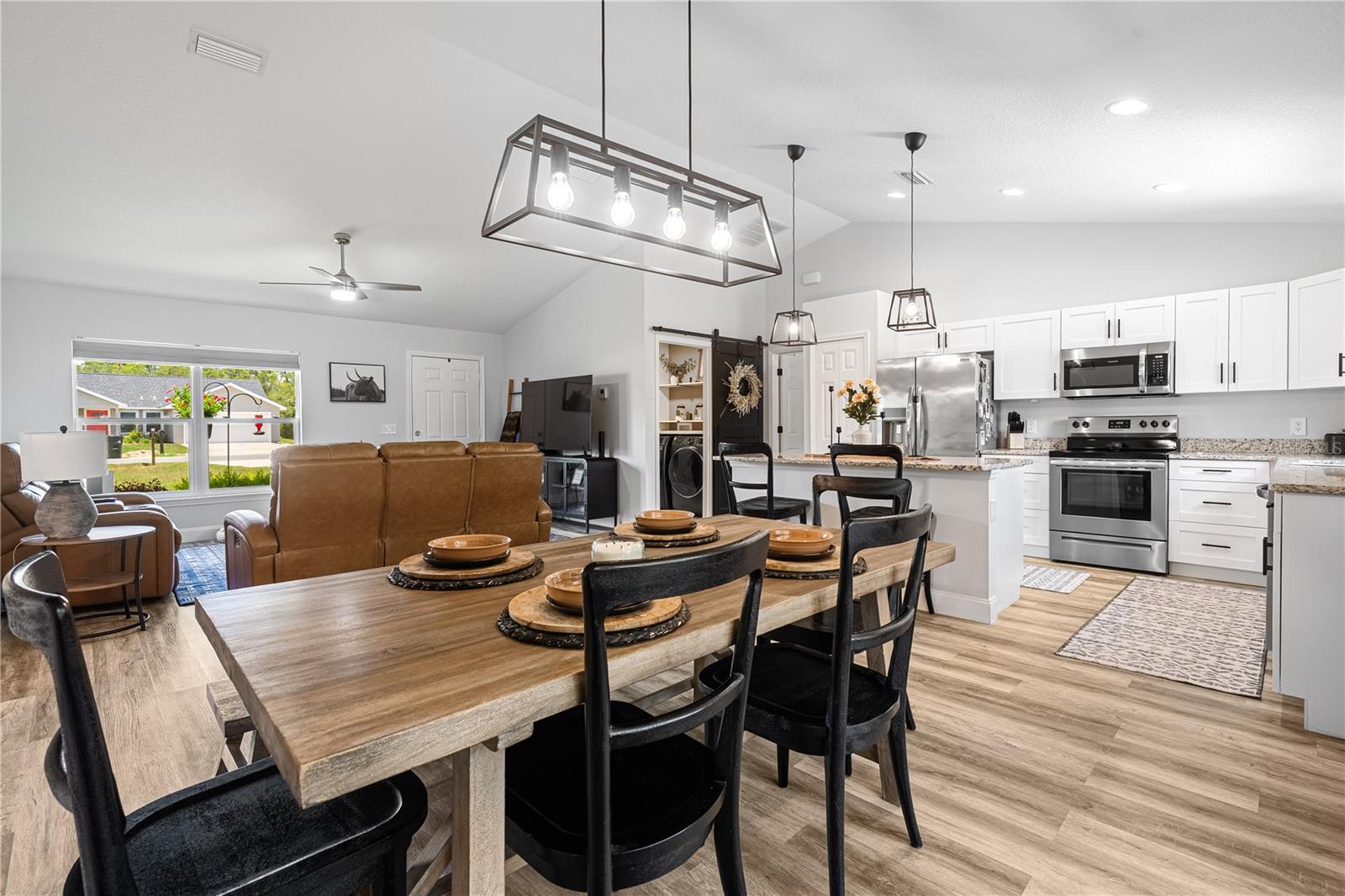 Linda e atualizada casa de 4 quartos em um lote de meio hectare! Esta impressionante casa de 4 quartos e 2 banheiros fica em um espaçoso lote de meio hectare e foi construído em 2023, tornando-o praticamente novo. Apresentando inúmeras atualizações, esta propriedade combina confortos modernos com design atencioso. Notable upgrades include: a stylish barn door added to the laundry room, shower doors installed in the master en-suite, custom-built closets in the master bedroom, scent booster system installed in the vents for a consistently fresh-smelling home, backyard pavers added to create a beautiful patio space, gutters installed for effective drainage, screened-in garage and back porch for added comfort, and a water softener system included with the home. Os recursos interiores incluem, a planta baixa de conceito aberto, ideal para entretenimento, layout de quartos divididos para maior privacidade, armários e ventiladores de teto por toda parte. Destaques da natureza e localização, desfrute de um ambiente tranquilo com avistamentos frequentes da vida selvagem; veados, coelhos e até o urso ocasional e seus filhotes. A parte de trás da propriedade faz as fronteiras compradas pela SECO para uso do painel solar, garantindo que ela permaneça pouco desenvolvida. O lote à direita é um lago de retenção, e o lote à esquerda está atualmente à venda. Não perca a chance de ver esta linda casa, agende sua exibição particular hoje!