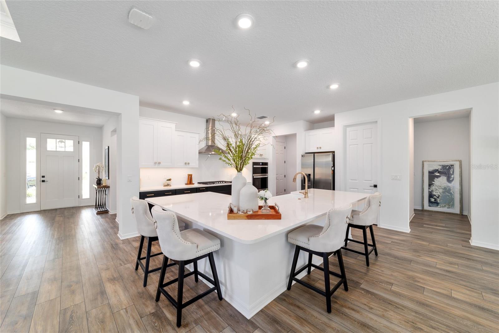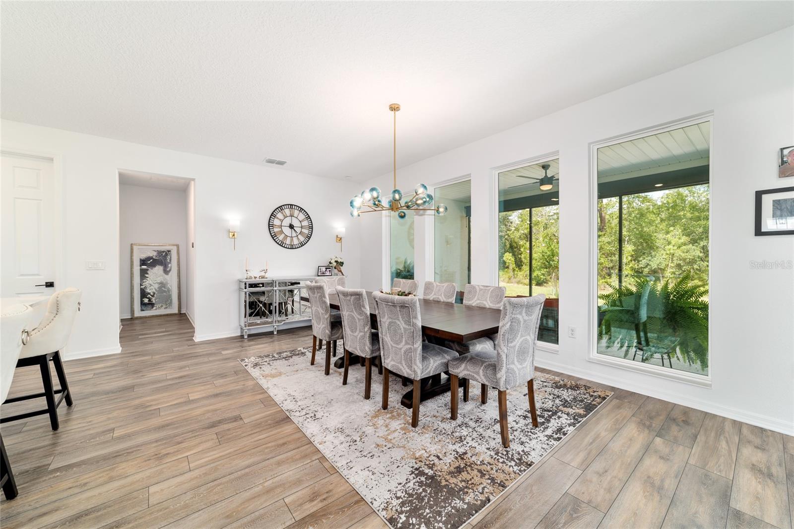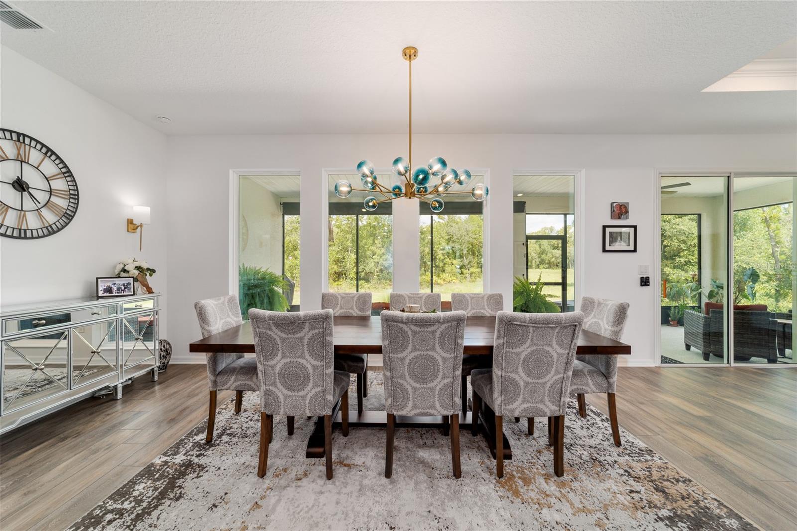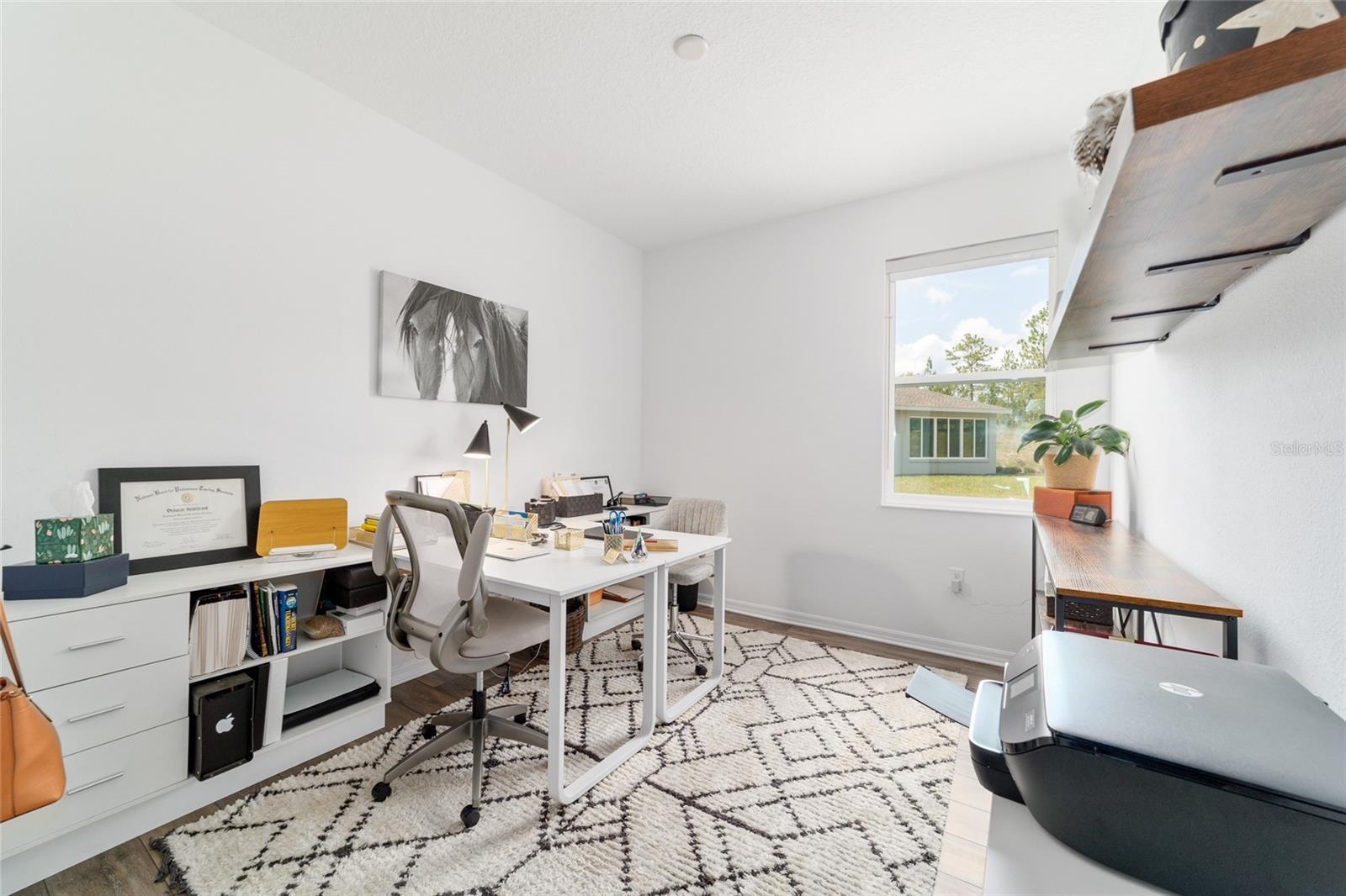 Lote de privacidade em 0,32 acres no topo do Longleaf Ridge do mundo! Construído em 2023 e ocupado pelo proprietário desde janeiro de 2024, este modelo Magnolia lindamente atualizado oferece vistas de uma área arborizada privada - você nunca sabe que vida selvagem irá parar no bebedouro. No interior, o espaçoso layout de conceito aberto apresenta dois quartos com banheiro privativo, bem como um conveniente lavabo no corredor. A casa inclui dois espaços flexíveis versáteis que adicionam flexibilidade máxima à sua vida na Flórida - um localizado na frente da casa atualmente usado como um escritório aconchegante e o segundo configurado como um escritório que poderia facilmente servir como um recanto de leitura ou espaço de hobby. A garagem ampliada para 2,5 carros inclui área de estacionamento para carrinhos de golfe, bancada de trabalho embutida e armazenamento adicional, maximizando a funcionalidade. A cozinha gourmet possui bancadas de quartzo e backsplash perfeito, armários em dois tons, forno e micro-ondas embutidos, eletrodomésticos de aço inoxidável, iluminação sob o armário, luminárias douradas, armários com fechamento suave e uma gaveta de temperos dedicada. Janelas amplas na parte traseira da casa preenchem as áreas de estar com luz natural e oferecem vistas tranquilas da floresta. As atualizações incluem tetos de bandeja, piso LVP, uma grande área externa, pátio estendido, ventiladores de teto, calhas e um sistema de amaciante de água para toda a casa. O serviço de lixo na calçada também está incluído. Desfrute de uma localização privilegiada perto do novo Summit Clubhouse (atualmente em construção), The Arbors e do Centro Recreativo. Sempre há algo para fazer no On Top of the World, desde natação, clubes e pickleball até minigolfe e parques para cães. Localizados na principal comunidade de mais de 55 carrinhos de golfe de Ocala, os residentes têm acesso a dois shopping centers em carrinhos de golfe. Bônus: os móveis da casa, um gerador portátil Predator 9500/Max30 para toda a casa e uma churrasqueira a gás natural estão disponíveis para compra separada. Agende sua exibição hoje para experimentar esta deslumbrante casa privada em Longleaf Ridge!