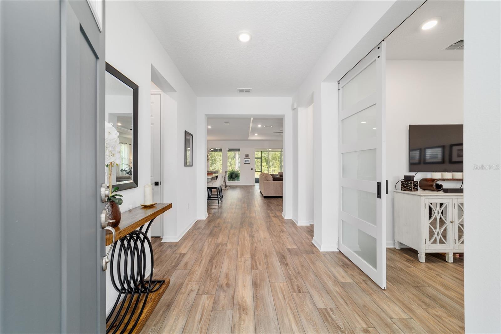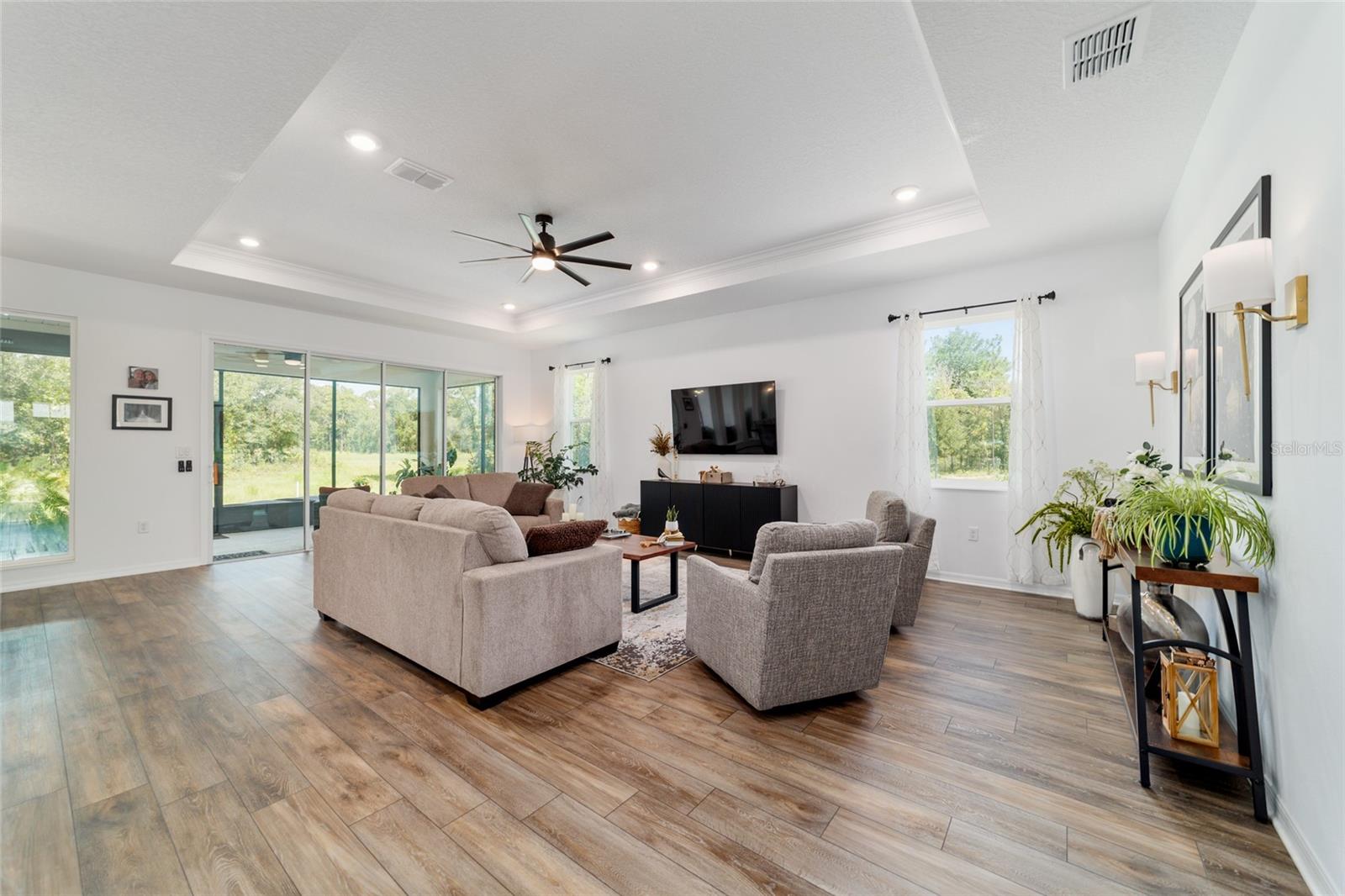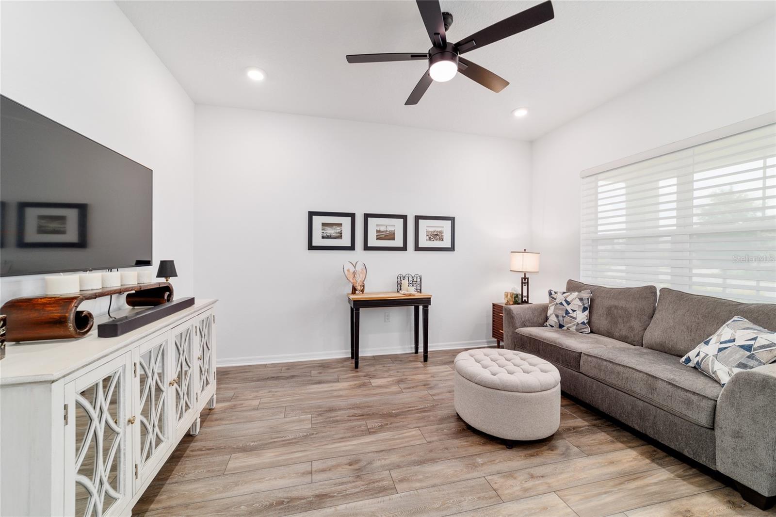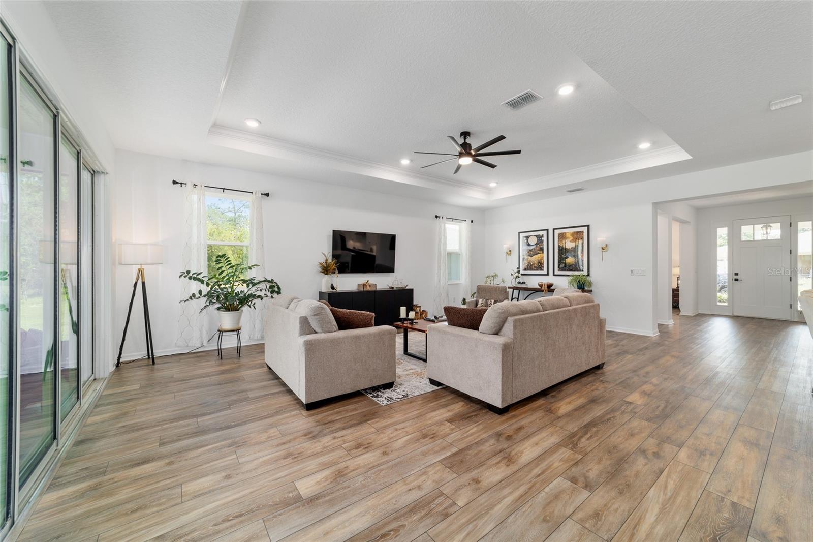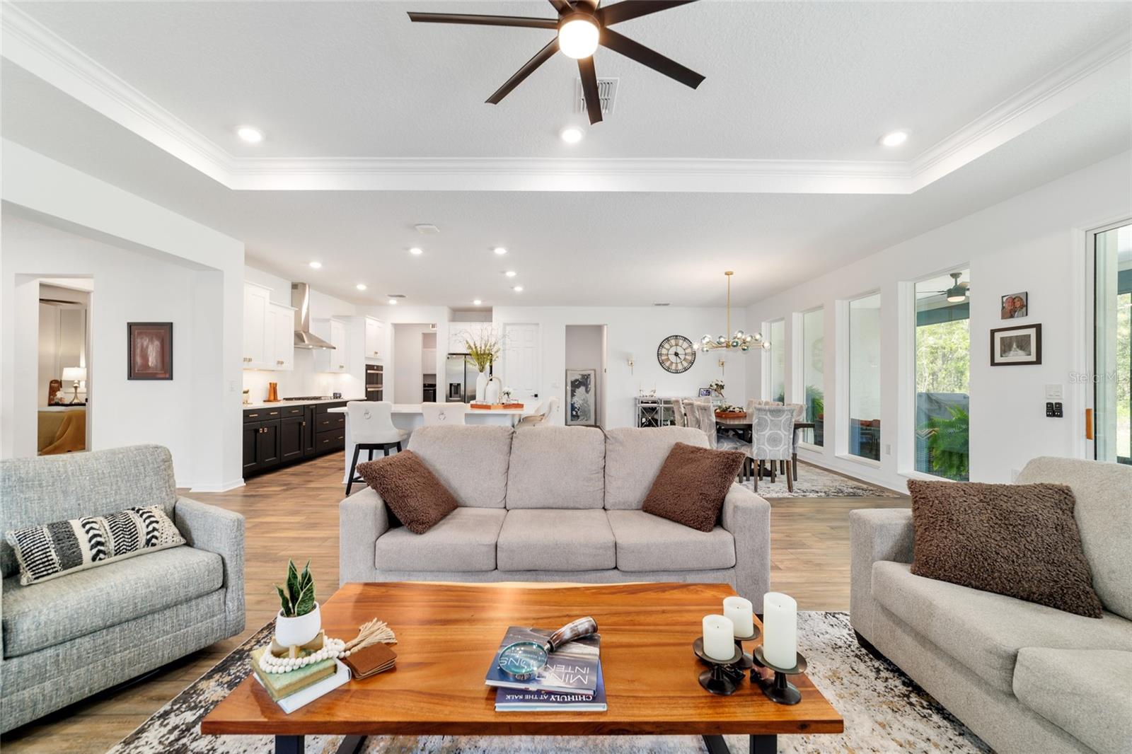 Lote de privacidade em 0,32 acres no topo do Longleaf Ridge do mundo! Construído em 2023 e ocupado pelo proprietário desde janeiro de 2024, este modelo Magnolia lindamente atualizado oferece vistas de uma área arborizada privada - você nunca sabe que vida selvagem irá parar no bebedouro. No interior, o espaçoso layout de conceito aberto apresenta dois quartos com banheiro privativo, bem como um conveniente lavabo no corredor. A casa inclui dois espaços flexíveis versáteis que adicionam flexibilidade máxima à sua vida na Flórida - um localizado na frente da casa atualmente usado como um escritório aconchegante e o segundo configurado como um escritório que poderia facilmente servir como um recanto de leitura ou espaço de hobby. A garagem ampliada para 2,5 carros inclui área de estacionamento para carrinhos de golfe, bancada de trabalho embutida e armazenamento adicional, maximizando a funcionalidade. A cozinha gourmet possui bancadas de quartzo e backsplash perfeito, armários em dois tons, forno e micro-ondas embutidos, eletrodomésticos de aço inoxidável, iluminação sob o armário, luminárias douradas, armários com fechamento suave e uma gaveta de temperos dedicada. Janelas amplas na parte traseira da casa preenchem as áreas de estar com luz natural e oferecem vistas tranquilas da floresta. As atualizações incluem tetos de bandeja, piso LVP, uma grande área externa, pátio estendido, ventiladores de teto, calhas e um sistema de amaciante de água para toda a casa. O serviço de lixo na calçada também está incluído. Desfrute de uma localização privilegiada perto do novo Summit Clubhouse (atualmente em construção), The Arbors e do Centro Recreativo. Sempre há algo para fazer no On Top of the World, desde natação, clubes e pickleball até minigolfe e parques para cães. Localizados na principal comunidade de mais de 55 carrinhos de golfe de Ocala, os residentes têm acesso a dois shopping centers em carrinhos de golfe. Bônus: os móveis da casa, um gerador portátil Predator 9500/Max30 para toda a casa e uma churrasqueira a gás natural estão disponíveis para compra separada. Agende sua exibição hoje para experimentar esta deslumbrante casa privada em Longleaf Ridge!