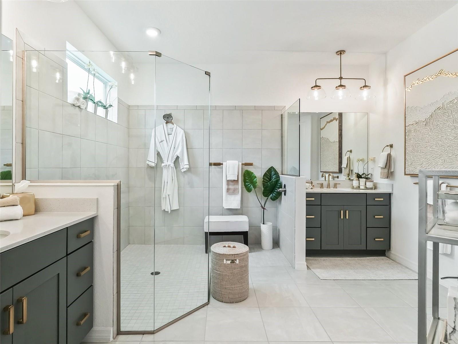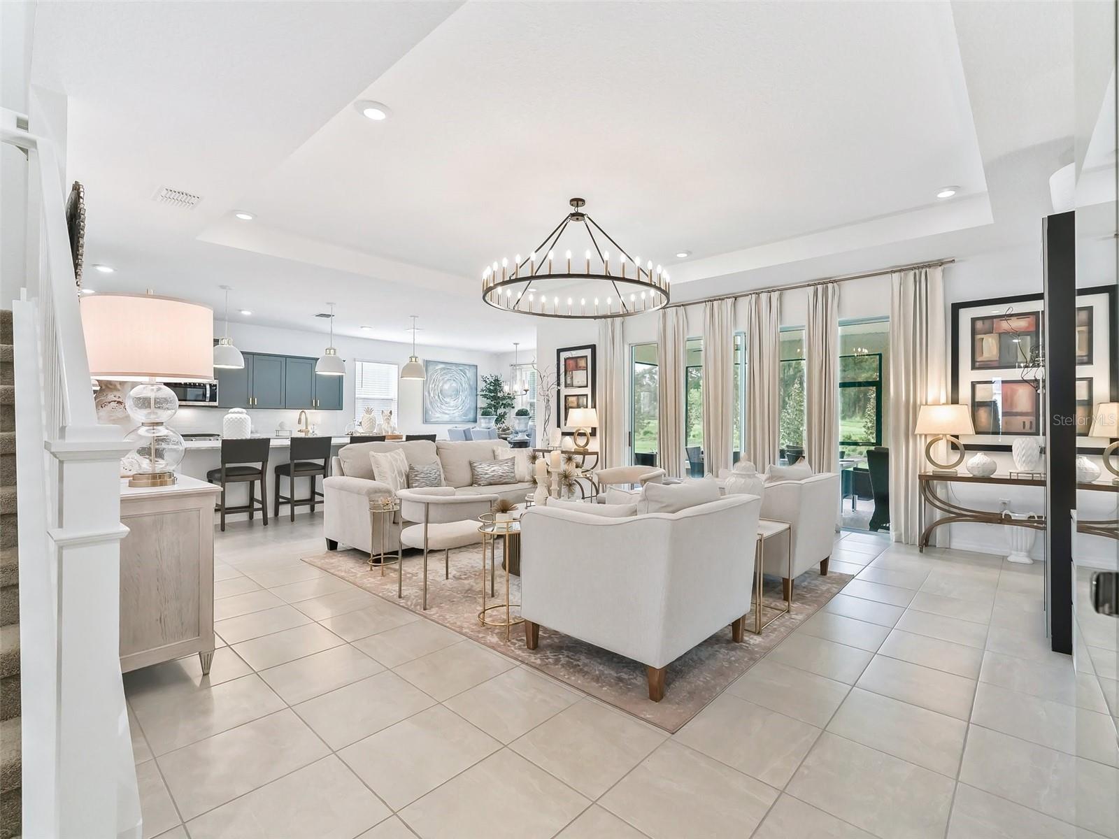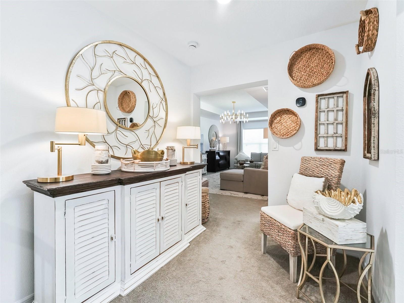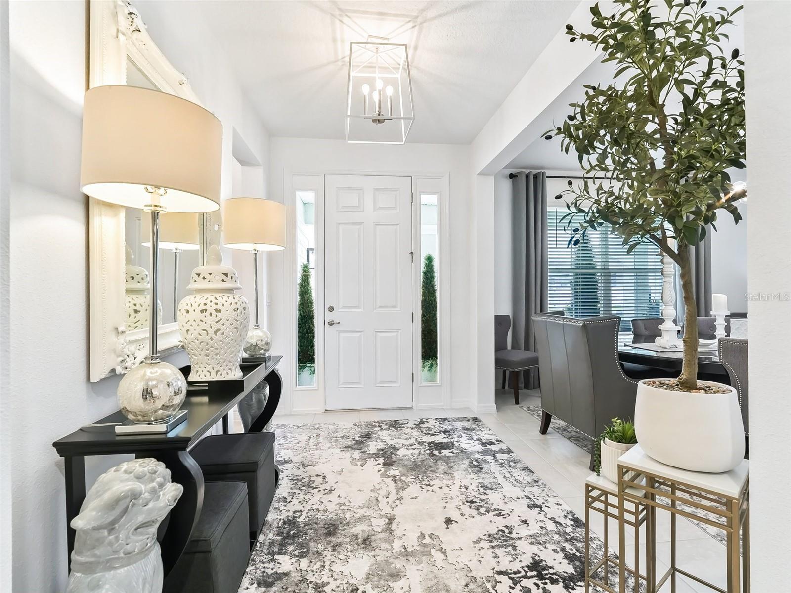 "Mulberry" absolutamente espetacular no condomínio fechado de Calesa Township - Roan Hills! Oferecendo 3.878 pés quadrados de espaço de estar com 4 quartos + Estudo/Den, 4,5 banheiros e uma garagem de 3 carros em um lote premium com vista para uma fazenda com vistas serenas de grandes carvalhos. O apelo do meio -fio é aprimorado com sotaques de rocha de arbustos e paisagismo adicionais, plantadores de grife que transmitem, nova iluminação e uma varanda da frente coberta. No interior, o piso de ladrilhos transporta as principais áreas que foram concluídas por um designer com iluminação e lustres de coordenação em dimmers, tratamentos de janelas, belo Millwork e muito mais. A cozinha aberta possui lindas bancadas de quartzo, armários de close macio, hardware de latão, torneira atualizada e pia esmaltada por porcelana com descarte no interruptor do ar, sob iluminação do gabinete e uma nova gama de auxílio à cozinha de gás natural de aço inoxidável com forno de convecção, fryer e função de vapor. A adjacente é uma grande despensa e um centro de bebidas adicionado personalizado com geladeira, armários adicionados, bancada, arandelas e tomadas. A suíte primária possui um grande banheiro com chuveiro romano, vaidades de quartzo duplo com novos hardware e torneiras de latão, dois armários e armários de linho separados. O nível principal também possui uma sala de bônus/covil/estudo, lavanderia com prateleiras adicionais, lavabo, sobra de escada e lamroom acabado com o Millwork que leva à garagem. No andar de cima, você encontrará um enorme espaço para loft, três quartos adicionais (dois banheiro e um com banheiro adjacente) - todos com iluminação atualizada, tratamentos de hardware e janela. Stacking sliding glass doors open to the spacious, screened back porch which has a new, mounted 50" LG TV & door to backyard & access door to powder room. Beyond, you'll be treated to serene views of oak dappled pastures and two professionally installed raised-bed landscaping islands with Robillini palms. Additional features incl: A/C added to single stall garage with an extra fridge that will convey, Ring doorbell, Ecobee smart thermostats, Nest wifi, smart wifi garage openers, irrigation system, 10 year transferrable AC warranty (8 yrs remaining), termite protection & so much more - please ask for a detailed list of upgrades & additions since purchase! Calesa Township is a gated community minutes to local conveniences with a plethora of incredible amenities - 82,000 sqft FL Aquatics Swimming & Training (FAST) facility, immersive trail Sistema, Piscina Aquecida, Splash Pad, Playground, quadra de basquete, Gazebos, Parque de cães de mais de 1 hectare, matrícula prioritária na INA A. Colen Academy Charter School e muito mais Um passeio por essa casa incrível em uma comunidade fechada e preenchida antes que seja tarde demais!
