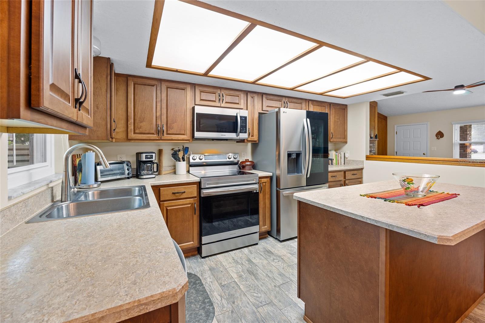 Localizada no altamente desejável bairro de South Oak, em SE Ocala, esta casa atualizada de 3 quartos e 2 banheiros está realmente pronta para morar e repleta de grandes atualizações. Situado numa rua tranquila numa comunidade estabelecida, proporciona conforto e tranquilidade a longo prazo. A casa possui piso cerâmico (2022), ampla sala de estar com lareira a lenha e divisão de quartos ideal para privacidade. A cozinha renovada (2023) apresenta armários com fechamento suave, bancadas modernas e novos eletrodomésticos de aço inoxidável, com a área de jantar convenientemente adjacente. A suíte principal oferece closet e banheiro privativo atualizado, enquanto dois quartos de hóspedes compartilham um banheiro completo reformado. A área de serviço da garagem inclui pia e lavadora e secadora novas (2023). As melhorias recentes incluem um novo telhado e janelas (2022), um novo sistema HVAC (2023) e um novo aquecedor de água (2023). Desfrute da vida ao ar livre no quintal totalmente cercado (2024) - perfeito para animais de estimação, entretenimento ou relaxamento com privacidade. A poucos minutos de lojas, restaurantes, escolas e principais estradas, esta casa em South Oak oferece conveniência, atualizações e valor em uma das áreas mais procuradas de SE Ocala.