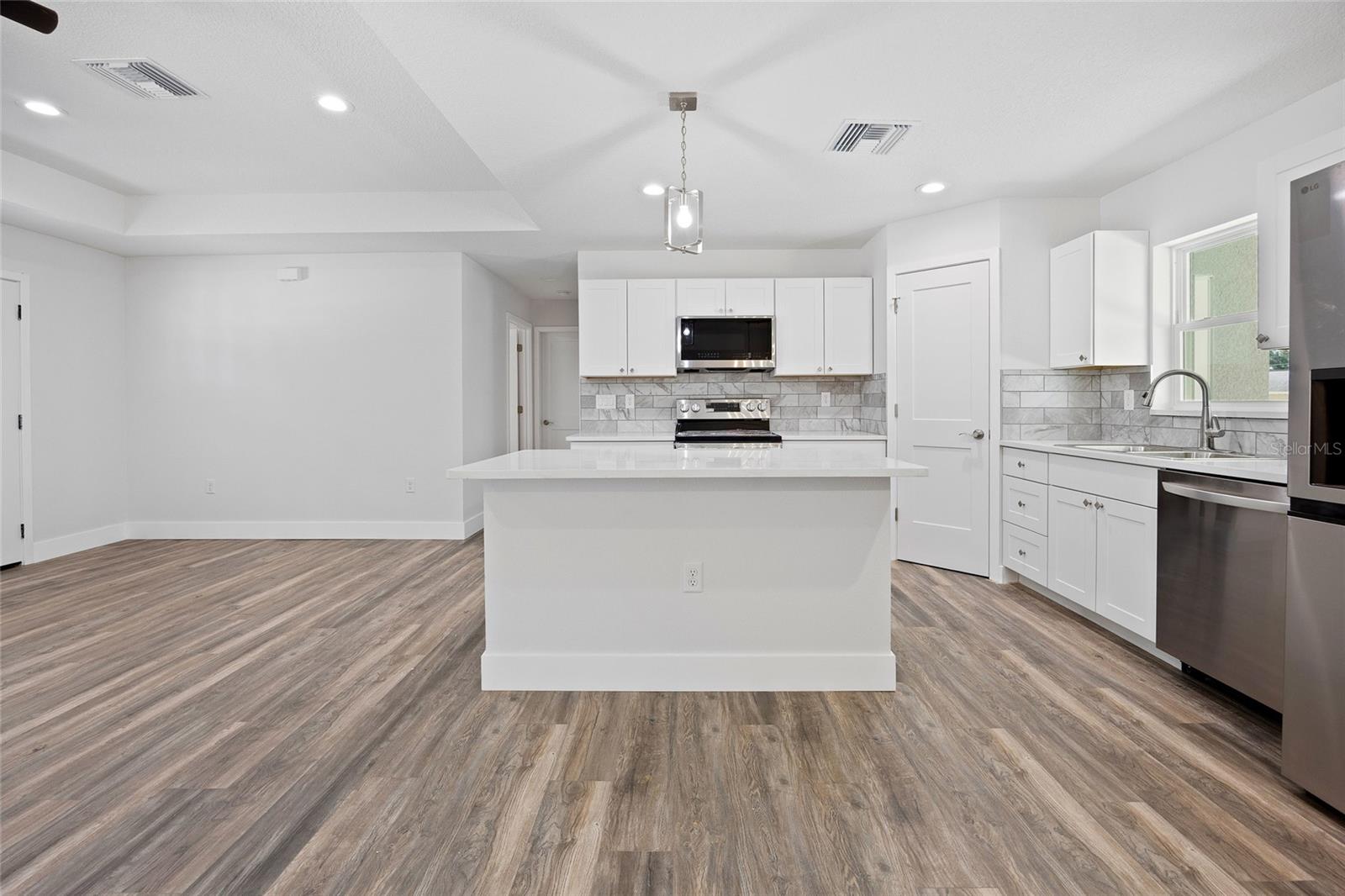 Construção nova e de alta qualidade em Silver Springs Shores! Agora com um cercado em quintal !! Esta casa de 3 quartos e dois banheiros de concreto é construída por um construtor local que não corta os cantos-qualidade e atenção aos detalhes! Os recursos incluem piso de tábua de vinil de luxo (LVP), tetos de bandeja, arredores de banheiro, ventiladores de teto em todos os quartos e áreas de estar e varandas da frente e traseira cobertas para relaxar espaço ao ar livre. A casa vem totalmente equipada com todos os aparelhos, por isso está realmente pronto para se mudar. Sod fresco será colocado em breve. Localizado perto de fazer compras, refeições e comodidades, este é o lugar perfeito para chamar de lar em um crescente bairro de Ocala