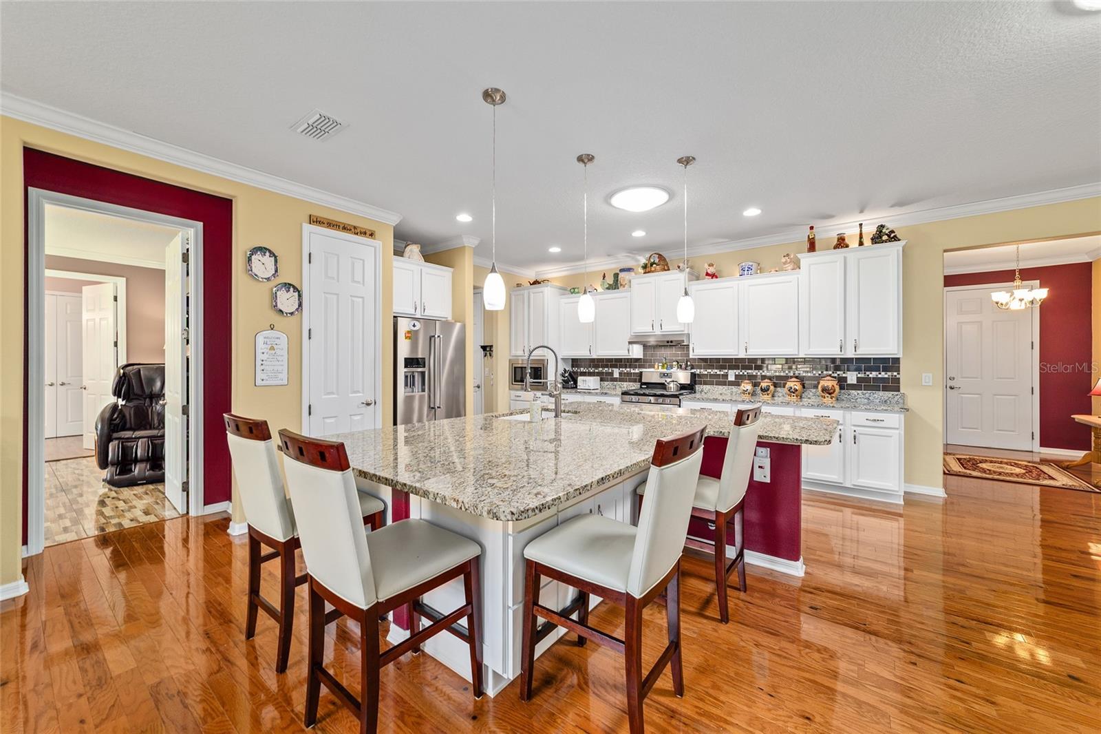 Redução de preços! Avaliado mais alto! Esta casa está listada US $ 30.000 abaixo de sua recente avaliação e é acessível à ADA. O novo proprietário terá patrimônio instantâneo nesta rara e impressionante casa de modelo Berkshire, localizada na principal comunidade de 55 mais da Ocala. Isso é imperdível pessoalmente. A partir do momento em que você chega, a entrada de automóveis personalizada e a encantadora varanda mostram apelo inegável. No interior, a casa possui pisos de madeira projetados por toda parte, mostrando o verdadeiro orgulho de propriedade a cada passo. Uma sala flexível versátil serve como uma sala, escritório ou área de estar formal. Uma área de jantar que pode acomodar uma mesa de 8 lugares ou usar um recanto de café da manhã aconchegante. A cozinha espaçosa é o sonho de um chef-observando uma ilha de granito, aparelhos de aço inoxidável sofisticados, armários abundantes, backsplash de azulejos, iluminação pendente, tubos solares e uma pia composta. O layout de quartos divididos oferece privacidade para os hóspedes, com quartos em extremos opostos da casa. Não há necessidade de se preocupar em perder energia com um gerador doméstico inteiro, além de amaciador de água. Desfrute de conforto durante todo o ano na sala fechada da Flórida, ou entregue ao ar livre no pátio exibido com configuração elétrica, perfeita para reuniões. O quintal cercado inclui acesso à porta de cachorro, ideal para animais de estimação. A garagem revestida de epóxi oferece amplo armazenamento e estacionamento do carrinho de golfe. Esta casa pronta para a frente tem um preço de venda e um verdadeiro obrigatório-onde a qualidade e os cuidados são evidentes pela primeira vez.