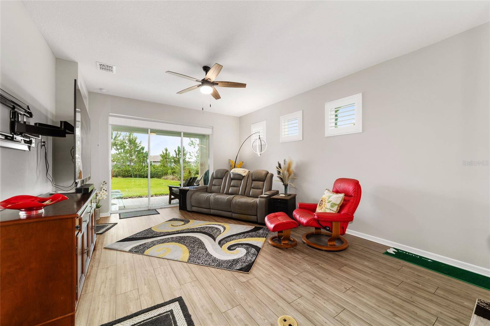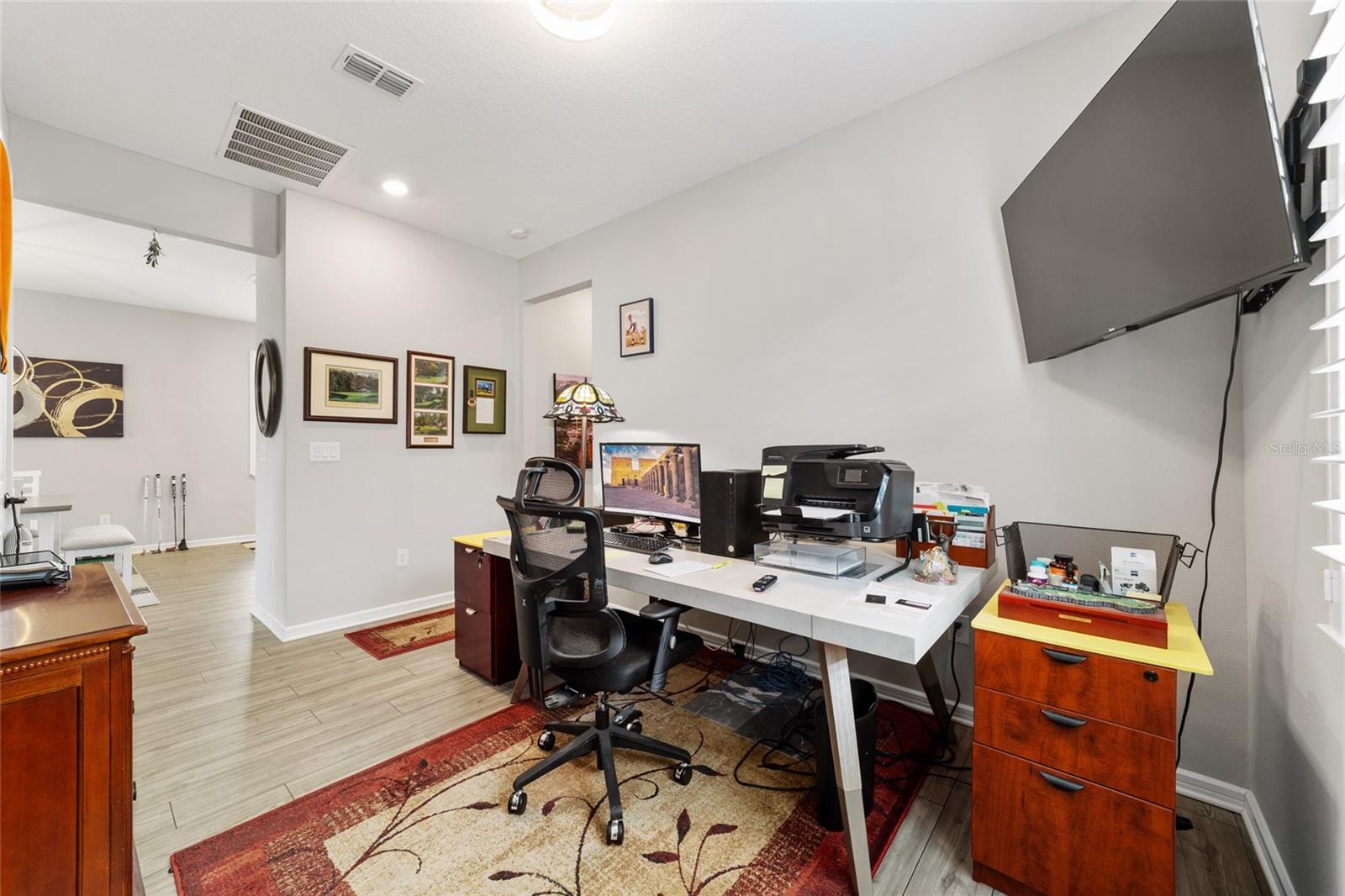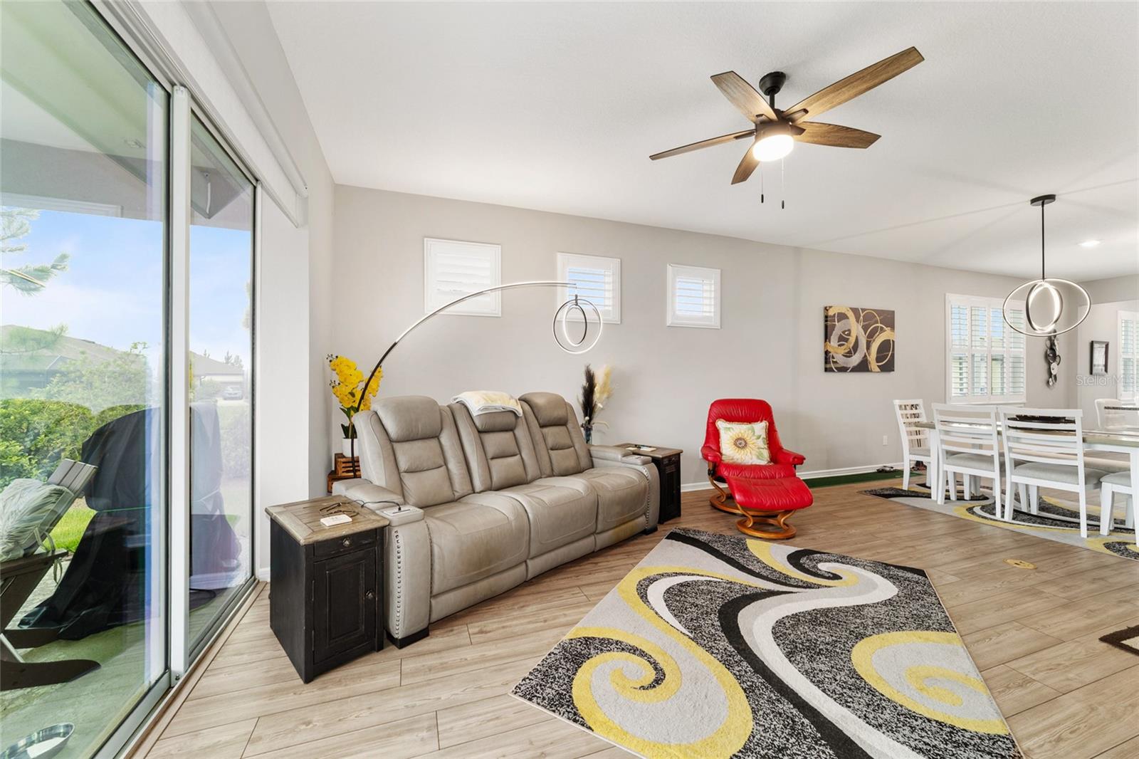 Bem -vindo a este quarto imaculado de 2 camas 2 banheiros, com uma casa de covil ou escritório em Stone Creek por Del Webb. Esta casa tem apenas 2 anos e foi bem mantida e muito bem cuidada. Se o golfe é o seu jogo, venha dar uma olhada. Stone Creek tem tudo o que você deseja para sua vida aposentada. Em torno desta casa, é o que eles chamam de área do Commons, para que você tenha mais espaço entre você e seu vizinho, porque isso é uma unidade de canto final. O Den/Office fica entre os 2 quartos e também pode ser usado para uma sala de musculação. Na garagem, você verá um armazenamento extra acima da porta da garagem, um amaciador de água e um piso de garagem pintado. O espaçoso Lanai está aberto ao ar da noite e toda a beleza que a área verde tem a oferecer. Despeje um copo de vinho e relaxe em sua nova casa, absorvendo todo o que Stone Creek tinha a oferecer. Venha dar uma olhada neste ótimo lugar.