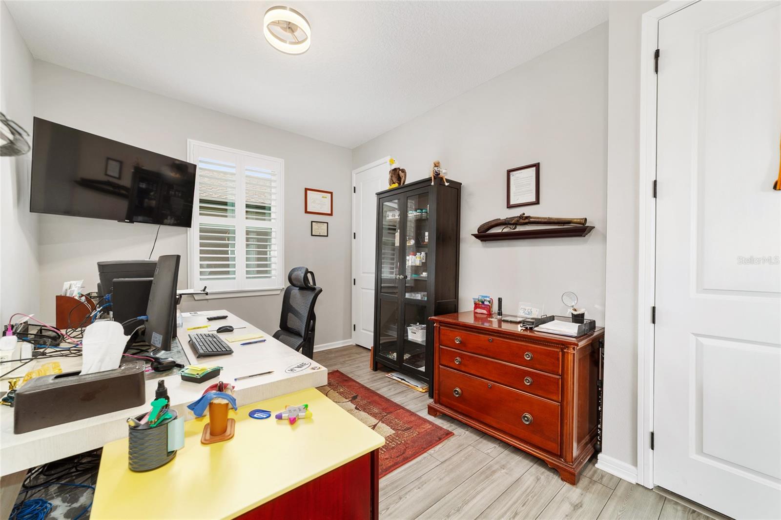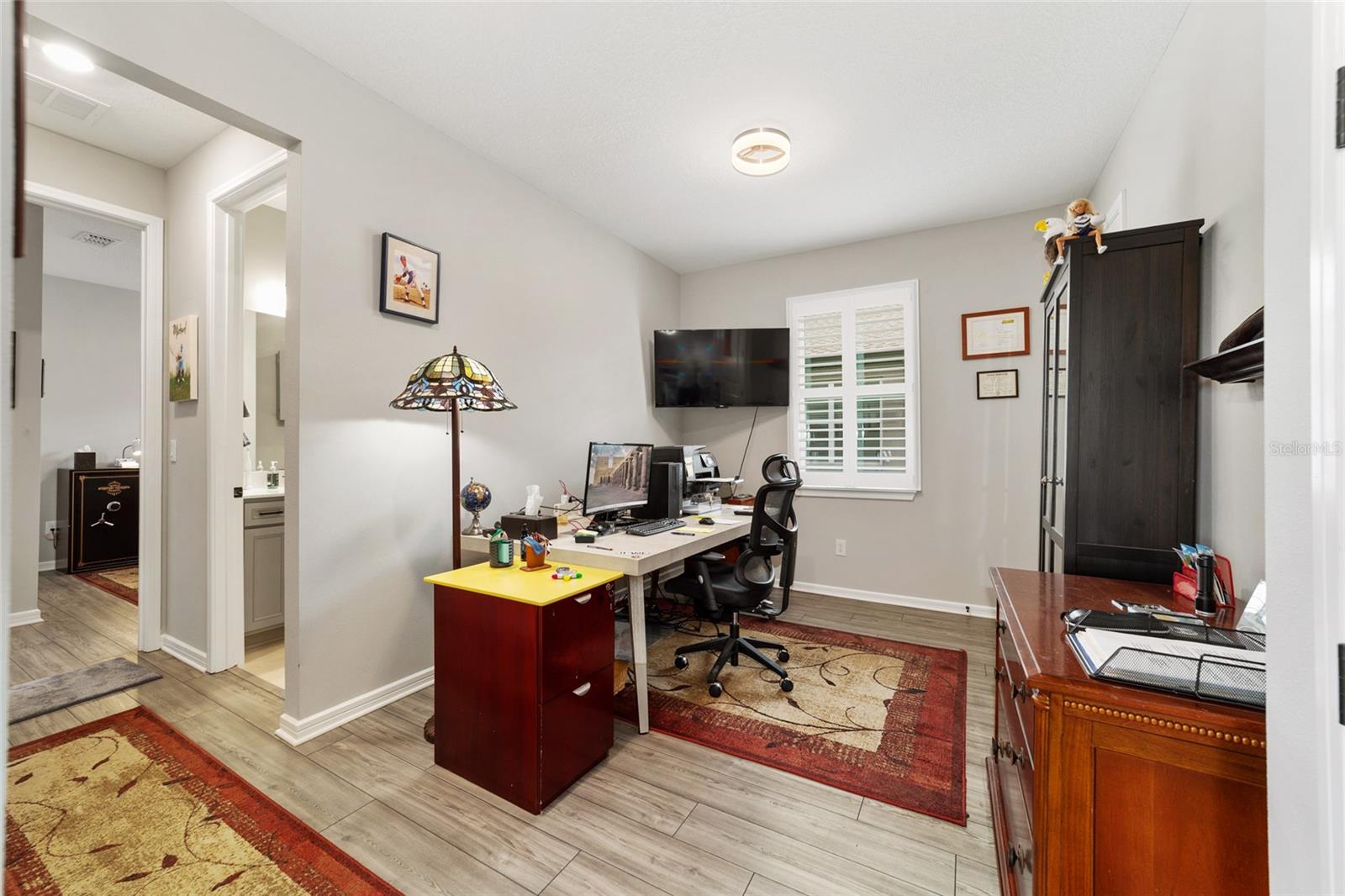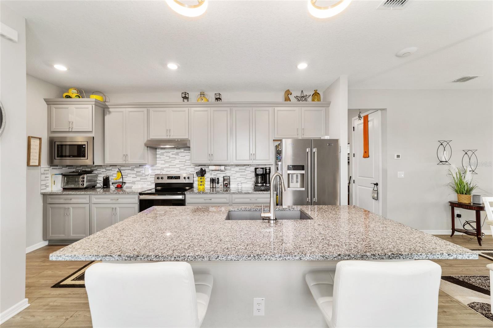 Bem -vindo a este quarto imaculado de 2 camas 2 banheiros, com uma casa de covil ou escritório em Stone Creek por Del Webb. Esta casa tem apenas 2 anos e foi bem mantida e muito bem cuidada. Se o golfe é o seu jogo, venha dar uma olhada. Stone Creek tem tudo o que você deseja para sua vida aposentada. Em torno desta casa, é o que eles chamam de área do Commons, para que você tenha mais espaço entre você e seu vizinho, porque isso é uma unidade de canto final. O Den/Office fica entre os 2 quartos e também pode ser usado para uma sala de musculação. Na garagem, você verá um armazenamento extra acima da porta da garagem, um amaciador de água e um piso de garagem pintado. O espaçoso Lanai está aberto ao ar da noite e toda a beleza que a área verde tem a oferecer. Despeje um copo de vinho e relaxe em sua nova casa, absorvendo todo o que Stone Creek tinha a oferecer. Venha dar uma olhada neste ótimo lugar.