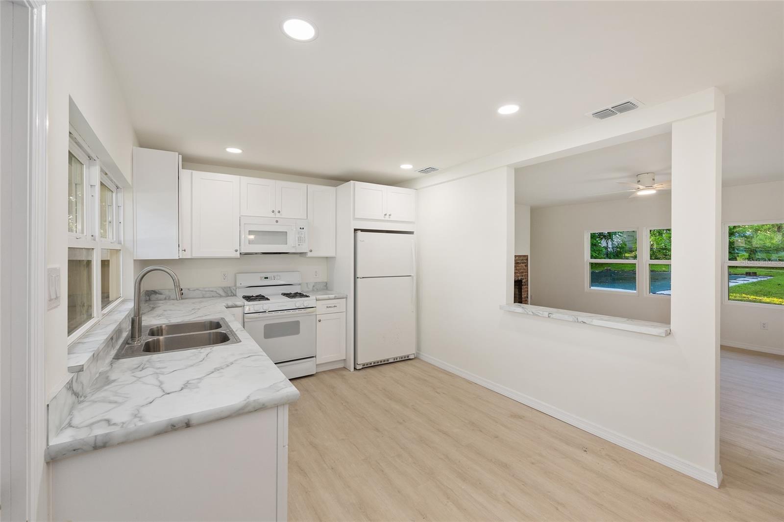 Recém -renovado - com preço de venda! Do outro lado de um parque pacífico e apenas alguns minutos para o centro de Ocala, esta casa de dois quartos e 2 banheiros é ideal para compradores, downsizers ou investidores iniciantes pela primeira vez. No interior, desfrute de janelas novas, um novo telhado, piso de vinil de luxo e cozinha e banhos atualizados com acabamentos modernos. A espaçosa sala de estar se abre para um espaço de jantar brilhante e cozinha com balcões de marble e muito armazenamento. A suíte primária oferece um banho atualizado e os dois quartos são generosamente de tamanho. Relaxe na varanda coberta com vista para o parque ou desfrute do grande quintal cercado com uma piscina no solo (atualmente coberta) e muito espaço para entretenimento. ? Vendedor altamente motivado - traga todas as ofertas! ? Localização privilegiada perto de escolas, hospitais, compras e restaurantes.