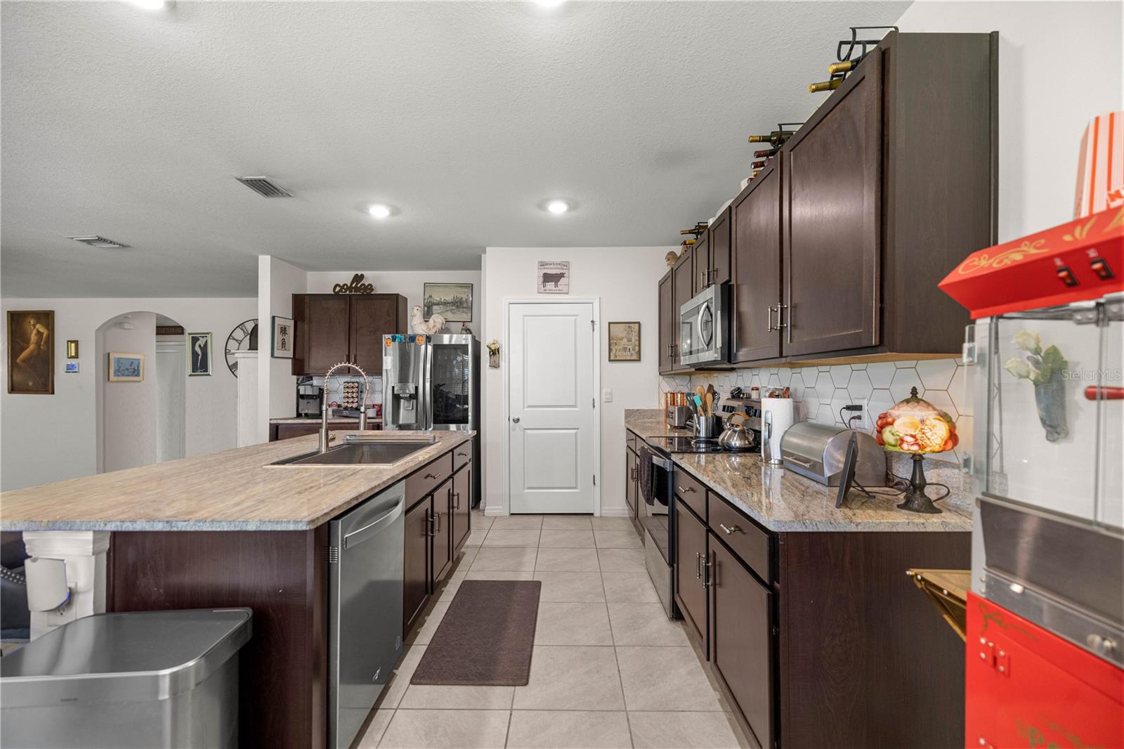 A impressionante casa de piso dividido de 4 quartos e 2 banheiros, no lago fechado, construído em 2022 com 2.326 pés quadrados de espaço moderno. Apoiando diretamente o campo de golfe, esta casa possui balcões de granito por toda parte, armários de cozinha de perto com deslizamentos, uma grande pia de aço inoxidável, portas de chuveiro de vidro no banheiro mestre e organizadores de armários personalizados no mestre, despensa e lavanderia. Totalmente movido a energia solar, sem fatura elétrica, o sistema inclui um aquecedor de água solar, compatibilidade de backup de bateria e garantia transferível ao longo da vida. As atualizações inteligentes da casa incluem um sistema de anel do Google, 4 TVs montadas (quarto primário, sala de estar, quarto 2 e pátio) e câmeras de segurança nos quatro cantos com gravação 24/7. Um plugue externo de 50 amp está pronto para um RV ou EV. Esta casa com eficiência energética e pronta para movimentação oferece luxo, tecnologia e tranqüilidade em um pacote perfeito.