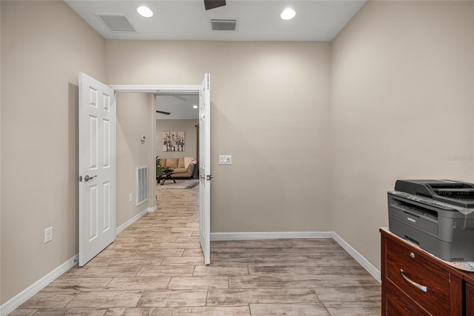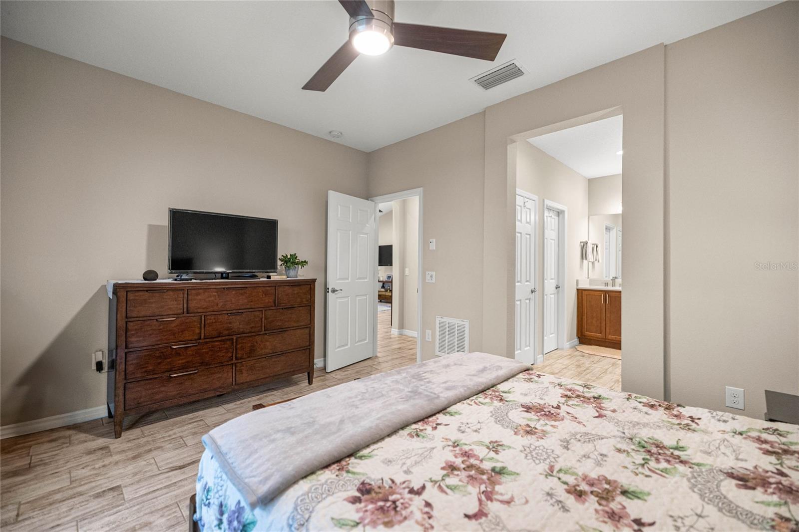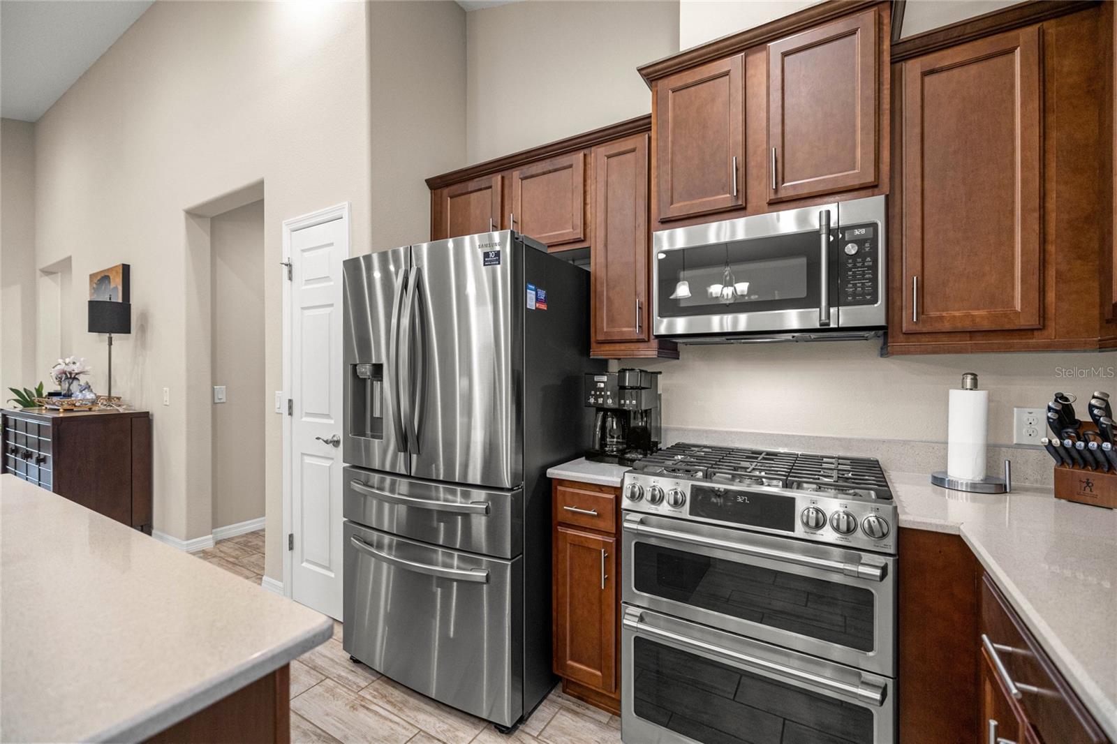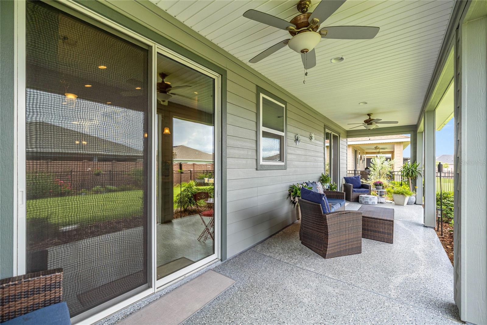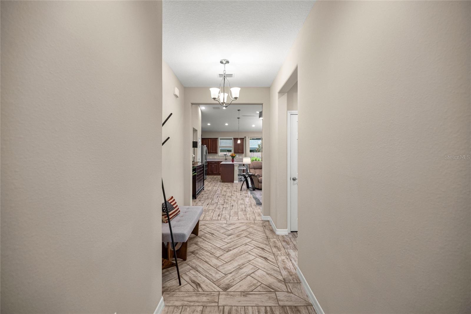 Home de Mint Condition impressionante com 2 quartos, 2 banheiros, além de uma sala flexível, situada em um grande lote de canto dentro do bem procurado fechado, comunidade de golfe no estilo resort da Ocala Reserve. Sem CDD! Construído por Shea Homes, esse modelo de Roma combina o design contemporâneo com recursos eficientes em termos de energia e acesso a comodidades de classe mundial, oferecendo um estilo de vida excepcional, por dentro e por fora. O piso plano aberto mostra tetos abobadados, abundantes pisos de ladrilhos de cerâmica de luz natural e com aparência de madeira no estilo de prancha nas principais áreas de estar. A cozinha do chef é funcional e elegante, com utensílios de aço inoxidável de primeira linha, incluindo uma faixa de gás com ventilação externa e um forno duplo e balcões de quartzo de Silestone premium. Ele também possui armários de madeira reais escalonados com moldagem por coroa e iluminação sub-cabinete, juntamente com uma generosa ilha de cozinha e despensa para amplo armazenamento. A expansiva sala grande e espaço de jantar aberta diretamente para uma varanda prolongada de grandes dimensões, com pisos revestidos com epóxi, estendendo o comprimento da casa, com uma conexão de linha de gás para uma churrasqueira a gás, paisagismo de privacidade e um quintal cercado perfeito para animais de estimação. A suíte primária do quarto possui um armário, armário de linho, vaidades duplas com balcões de quartzo, um chuveiro entre vidro e um armário de água privado. Com um layout de quarto dividido, a privacidade do hóspede é maximizada. A sala flexível, completa com portas duplas, é perfeita como escritório em casa ou área de hóspedes adicional. Mais destaques incluem uma lavanderia com armários e pia de utilidade, lavadora e secadora sofisticada, ventiladores de teto premium e luminárias de iluminação por toda parte, e persianas em todas as janelas. A espaçosa garagem com ar-condicionado com um piso epóxi, uma área de oficina, uma saída de 240V para carrinho de golfe elétrica de alta velocidade ou carregamento de nível 2 eV (veículo elétrico ou carro híbrido), e as extensas possibilidades de armazenamento são uma verdadeira mudança de jogo! O OCALA Preserve HOA lida com a manutenção e irrigação de gramado e paisagem, fornece Internet de fibra óptica de alta velocidade e segurança fechada 24/7. Os moradores desfrutam de comodidades no estilo resort, como um campo de golfe projetado por Tom-Lehman, piscinas de resort e colo, um spa e academia de fitness, tênis, pickleball e quadras de bocha, trilhas cênicas de caminhada e ciclismo, parques de cães e uma doca de canoa/caiaque. O impressionante Clubhouse apresenta o restaurante de tijolos salgados, a pitoresca Veranda e o calçadão (em um lindo lago de sete acres) e há acesso ao carrinho de golfe em toda a comunidade! Localizado a poucos minutos do centro equestre mundial (WEC), esta casa está pronta para a mudança e com certeza impressionar!