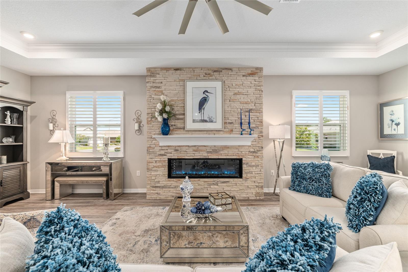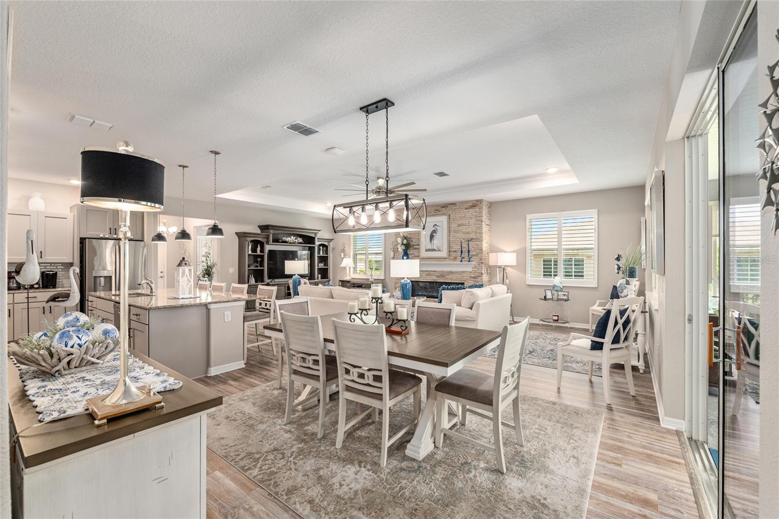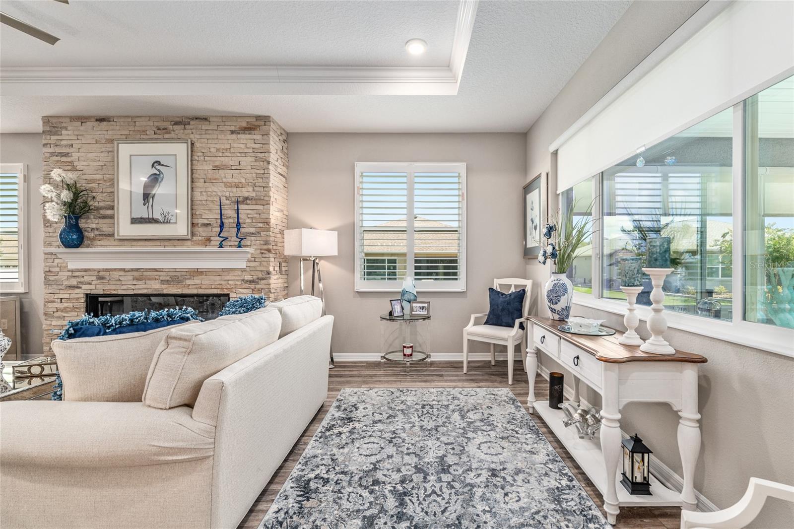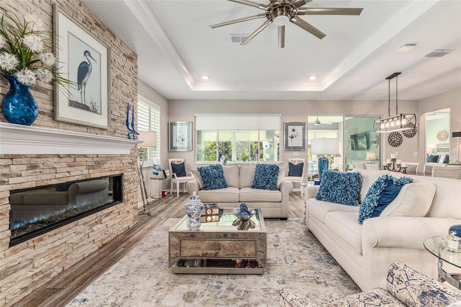 Oferecendo uma garantia residencial gratuita de 1 ano para o novo comprador! Se você está procurando uma casa de construção mais recente, impecavelmente mantida, estilizada e atualizada na subdivisão Avalon de On Top of the World - é isso! Situado em um lote premium com um quintal privativo arborizado, este modelo Ariana de 2 quartos + sala e 2 banheiros, construído em 2021, apresenta mais de 2.000 pés quadrados de área de estar lindamente projetada. O interior inspirado na Flórida apresenta tetos altos com vários detalhes de bandejas, venezianas e persianas personalizadas, piso LVP totalmente novo e pintura fresca por toda parte. A grande sala recebe você com uma lareira elétrica central de pedra natural, perfeita para entretenimento. Aproveite a hospedagem na cozinha do seu chef, com bancadas de granito, armários de madeira personalizados, eletrodomésticos GE de aço inoxidável com fogão a gás e uma grande ilha para refeições. A suíte privada do proprietário leva a um banheiro privativo acessível, oferecendo box amplo com bancada, pia dupla e closet espaçoso. Na frente da casa, você encontrará uma ala de hóspedes separada com um banheiro completo próximo e uma sala aconchegante, ideal para relaxar tranquilamente. Aproveite o nascer do sol no conforto de sua varanda estendida recém-fechada e isolada, ou faça um churrasco com os amigos no novo pátio pavimentado cercado por um paisagismo fresco. A enorme garagem para 2,5 carros inclui estacionamento para carrinhos de golfe, oferecendo muito espaço para seus brinquedos e armazenamento adicional. Apenas a uma curta viagem de carro das comodidades OTOW, incluindo The Arbors - esta casa é a mistura perfeita de estilo, conforto e conveniência. Seu novo estilo de vida começa aqui!