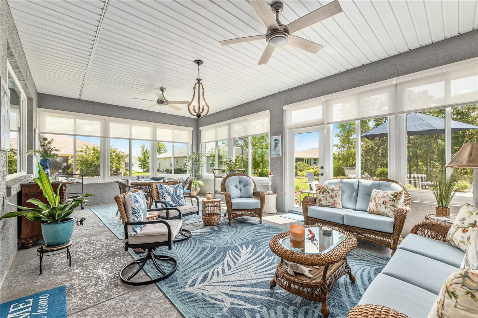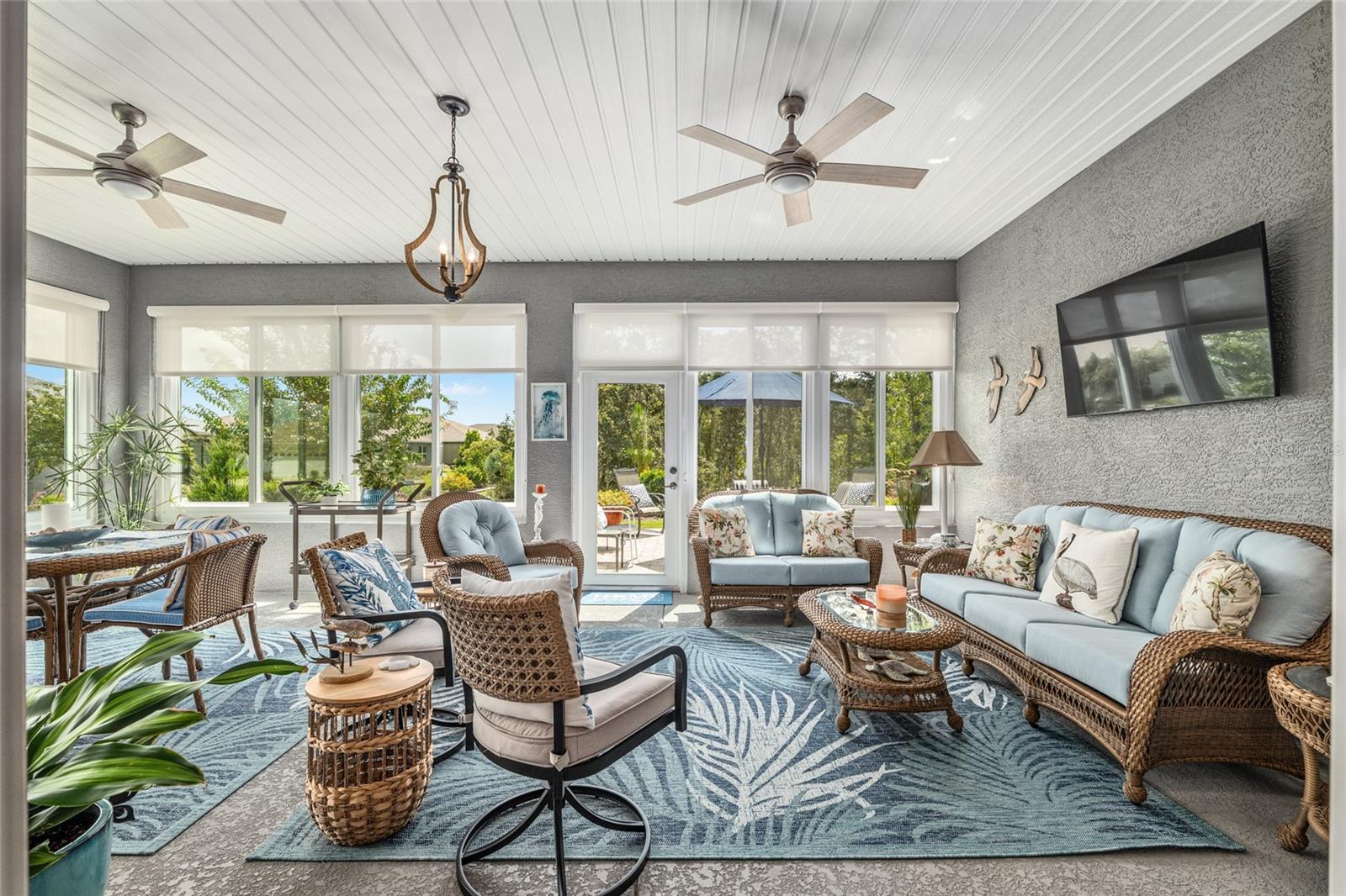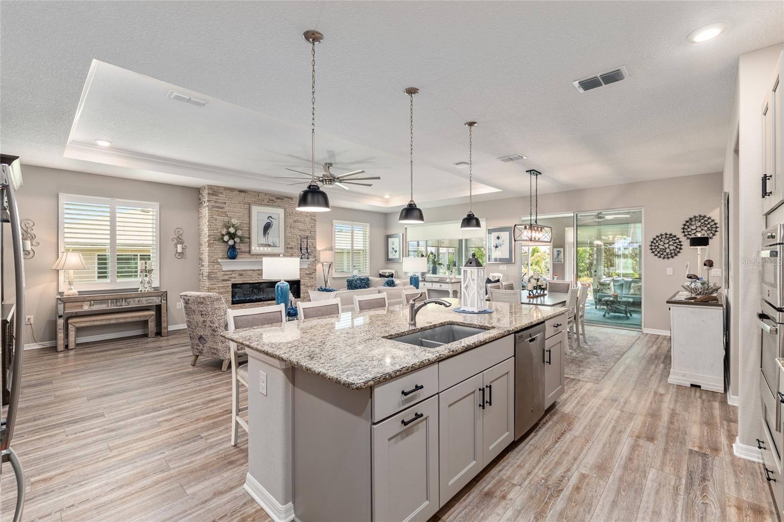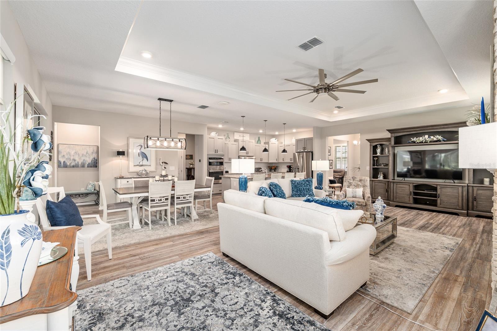 Oferecendo uma garantia residencial gratuita de 1 ano para o novo comprador! Se você está procurando uma casa de construção mais recente, impecavelmente mantida, estilizada e atualizada na subdivisão Avalon de On Top of the World - é isso! Situado em um lote premium com um quintal privativo arborizado, este modelo Ariana de 2 quartos + sala e 2 banheiros, construído em 2021, apresenta mais de 2.000 pés quadrados de área de estar lindamente projetada. O interior inspirado na Flórida apresenta tetos altos com vários detalhes de bandejas, venezianas e persianas personalizadas, piso LVP totalmente novo e pintura fresca por toda parte. A grande sala recebe você com uma lareira elétrica central de pedra natural, perfeita para entretenimento. Aproveite a hospedagem na cozinha do seu chef, com bancadas de granito, armários de madeira personalizados, eletrodomésticos GE de aço inoxidável com fogão a gás e uma grande ilha para refeições. A suíte privada do proprietário leva a um banheiro privativo acessível, oferecendo box amplo com bancada, pia dupla e closet espaçoso. Na frente da casa, você encontrará uma ala de hóspedes separada com um banheiro completo próximo e uma sala aconchegante, ideal para relaxar tranquilamente. Aproveite o nascer do sol no conforto de sua varanda estendida recém-fechada e isolada, ou faça um churrasco com os amigos no novo pátio pavimentado cercado por um paisagismo fresco. A enorme garagem para 2,5 carros inclui estacionamento para carrinhos de golfe, oferecendo muito espaço para seus brinquedos e armazenamento adicional. Apenas a uma curta viagem de carro das comodidades OTOW, incluindo The Arbors - esta casa é a mistura perfeita de estilo, conforto e conveniência. Seu novo estilo de vida começa aqui!