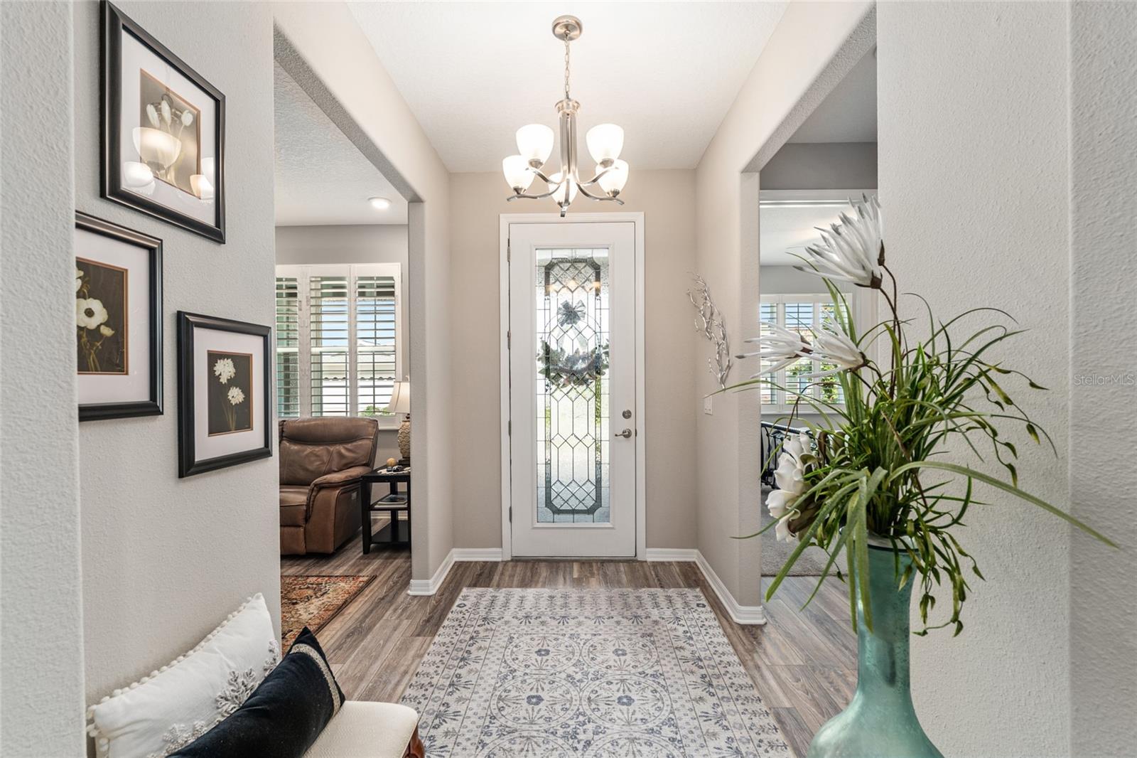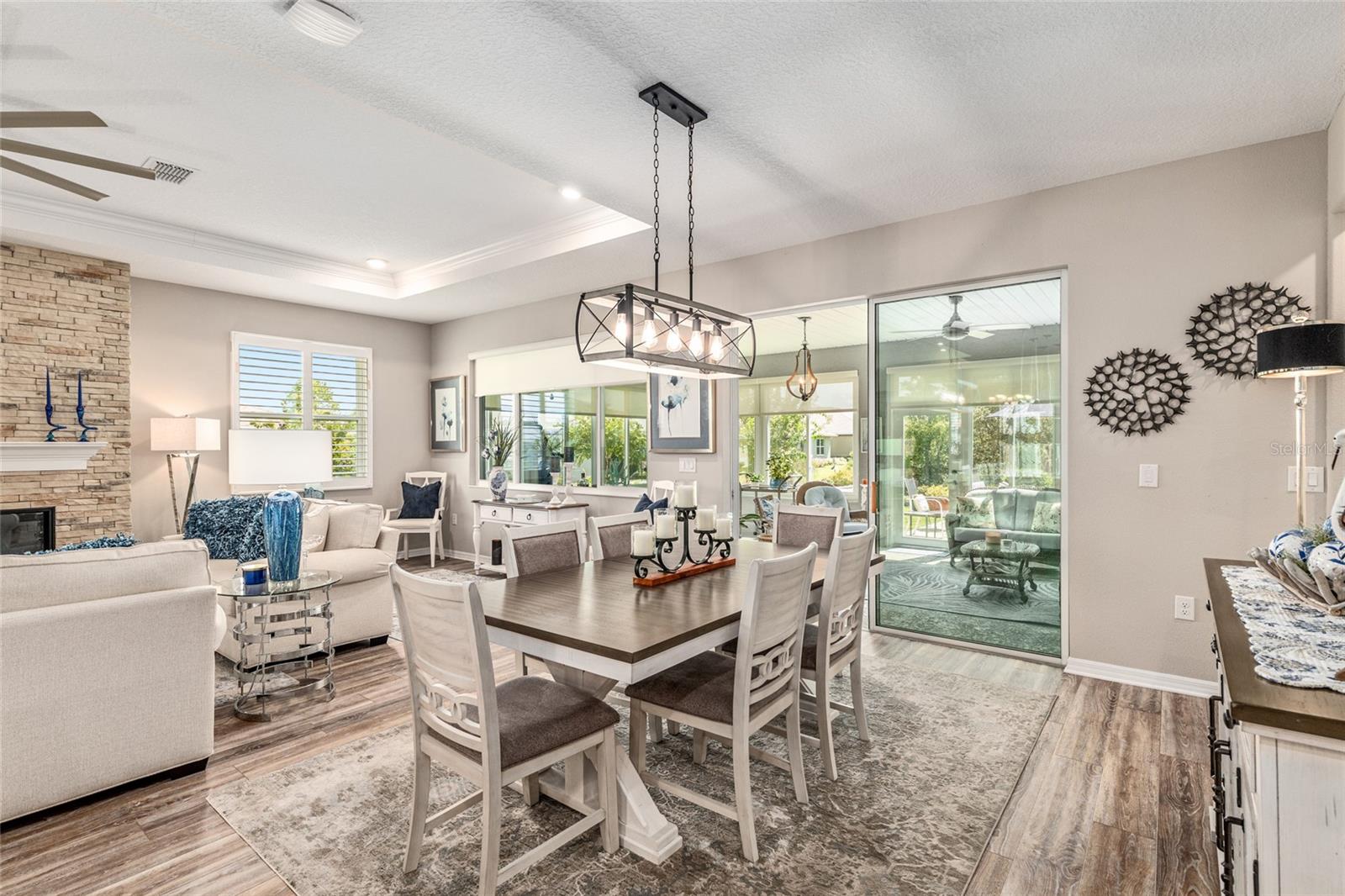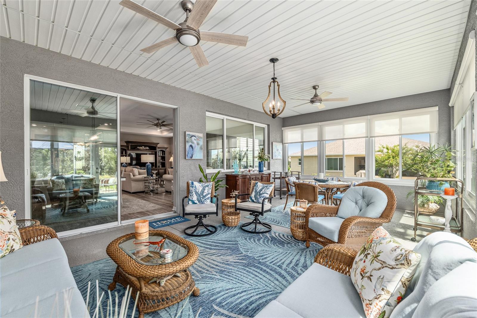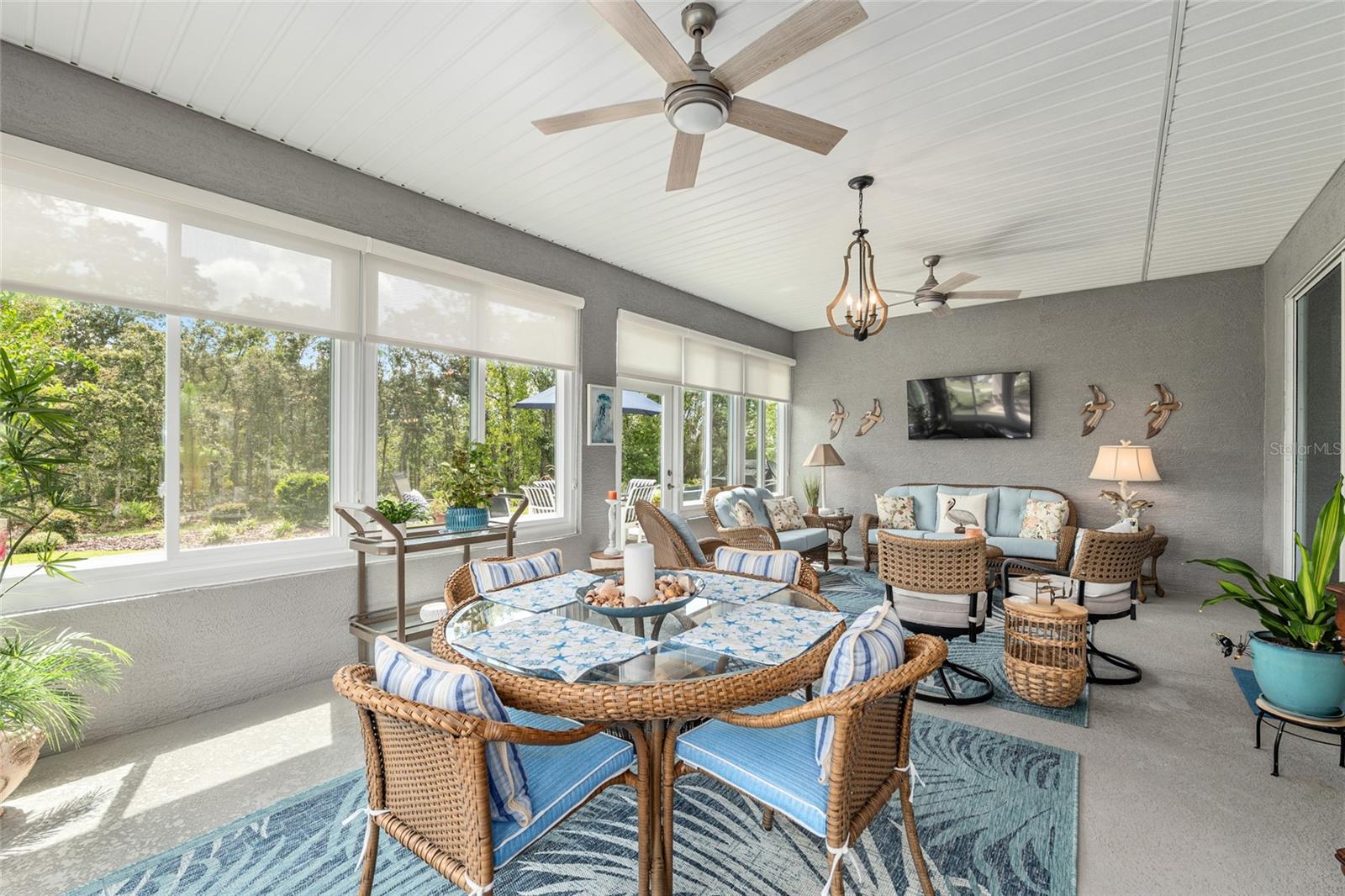 Oferecendo uma garantia residencial gratuita de 1 ano para o novo comprador! Se você está procurando uma casa de construção mais recente, impecavelmente mantida, estilizada e atualizada na subdivisão Avalon de On Top of the World - é isso! Situado em um lote premium com um quintal privativo arborizado, este modelo Ariana de 2 quartos + sala e 2 banheiros, construído em 2021, apresenta mais de 2.000 pés quadrados de área de estar lindamente projetada. O interior inspirado na Flórida apresenta tetos altos com vários detalhes de bandejas, venezianas e persianas personalizadas, piso LVP totalmente novo e pintura fresca por toda parte. A grande sala recebe você com uma lareira elétrica central de pedra natural, perfeita para entretenimento. Aproveite a hospedagem na cozinha do seu chef, com bancadas de granito, armários de madeira personalizados, eletrodomésticos GE de aço inoxidável com fogão a gás e uma grande ilha para refeições. A suíte privada do proprietário leva a um banheiro privativo acessível, oferecendo box amplo com bancada, pia dupla e closet espaçoso. Na frente da casa, você encontrará uma ala de hóspedes separada com um banheiro completo próximo e uma sala aconchegante, ideal para relaxar tranquilamente. Aproveite o nascer do sol no conforto de sua varanda estendida recém-fechada e isolada, ou faça um churrasco com os amigos no novo pátio pavimentado cercado por um paisagismo fresco. A enorme garagem para 2,5 carros inclui estacionamento para carrinhos de golfe, oferecendo muito espaço para seus brinquedos e armazenamento adicional. Apenas a uma curta viagem de carro das comodidades OTOW, incluindo The Arbors - esta casa é a mistura perfeita de estilo, conforto e conveniência. Seu novo estilo de vida começa aqui!