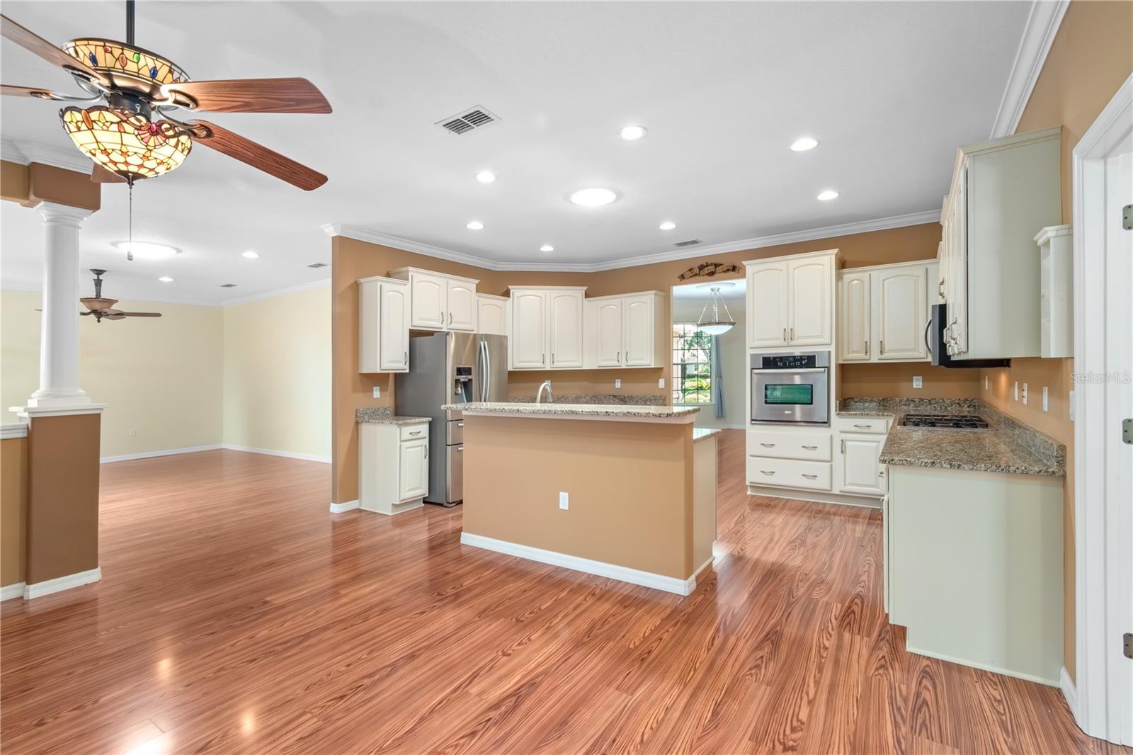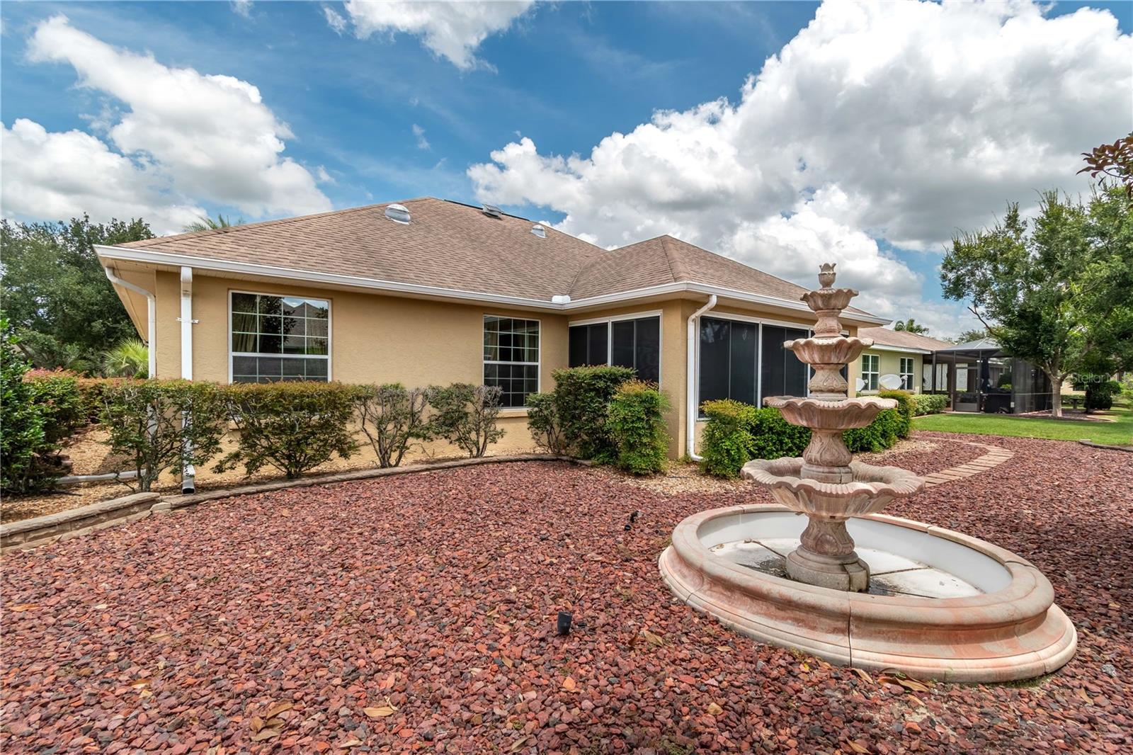 Esta bela casa é o modelo Huntley 11 Exp com 2635 pés quadrados, a casa possui 2/2/2, mais 17x14 Sala de bônus. A casa tem um bom fluxo para facilitar o entretenimento. Possui uma cozinha da ilha com muitos armários e bancadas de granito e tubo solar para iluminação extra. Aparelhos de aço inoxidável, incluindo uma geladeira da porta francesa e uma faixa de balcão de gás. Coma na área da cozinha, leva à lanai de quatro estações, que é o vidro fechada, os pisos de ladrilhos e ventilada para o calor e o ar. Ótimo para diversão durante todo o ano, com vista para o adorável paisagismo e fonte. Há uma sala de jantar formal separada. Grande suíte master com tetos de bandeja, moldagem por coroa, banheira de jardim com chuveiro e closet de grande porte. Lavanderia dentro da lavadora e secadora atualizada e uma banheira de lavanderia. A garagem possui um mini-Split Air Co. Esta casa requer manutenção externa mínima com seu paisagismo rochoso de baixa manutenção. Localizada no primeiro -ministro de 55 fechaduras de Ocala, Candler Hills, no topo do mundo, você desfrutará de uma riqueza de comodidades, incluindo vários campos de golfe, compras, centros de fitness, restaurantes, isolamento adicionado no sótão e na geladeira de garagem incluídos. A entrada de automóveis e a passarela da frente são feitas com pavimentadoras e acesso ao carrinho de golfe a dois shopping centers do lado de fora dos portões da frente. Bônus: o CDD é totalmente pago! Ligue hoje para agendar uma exibição.