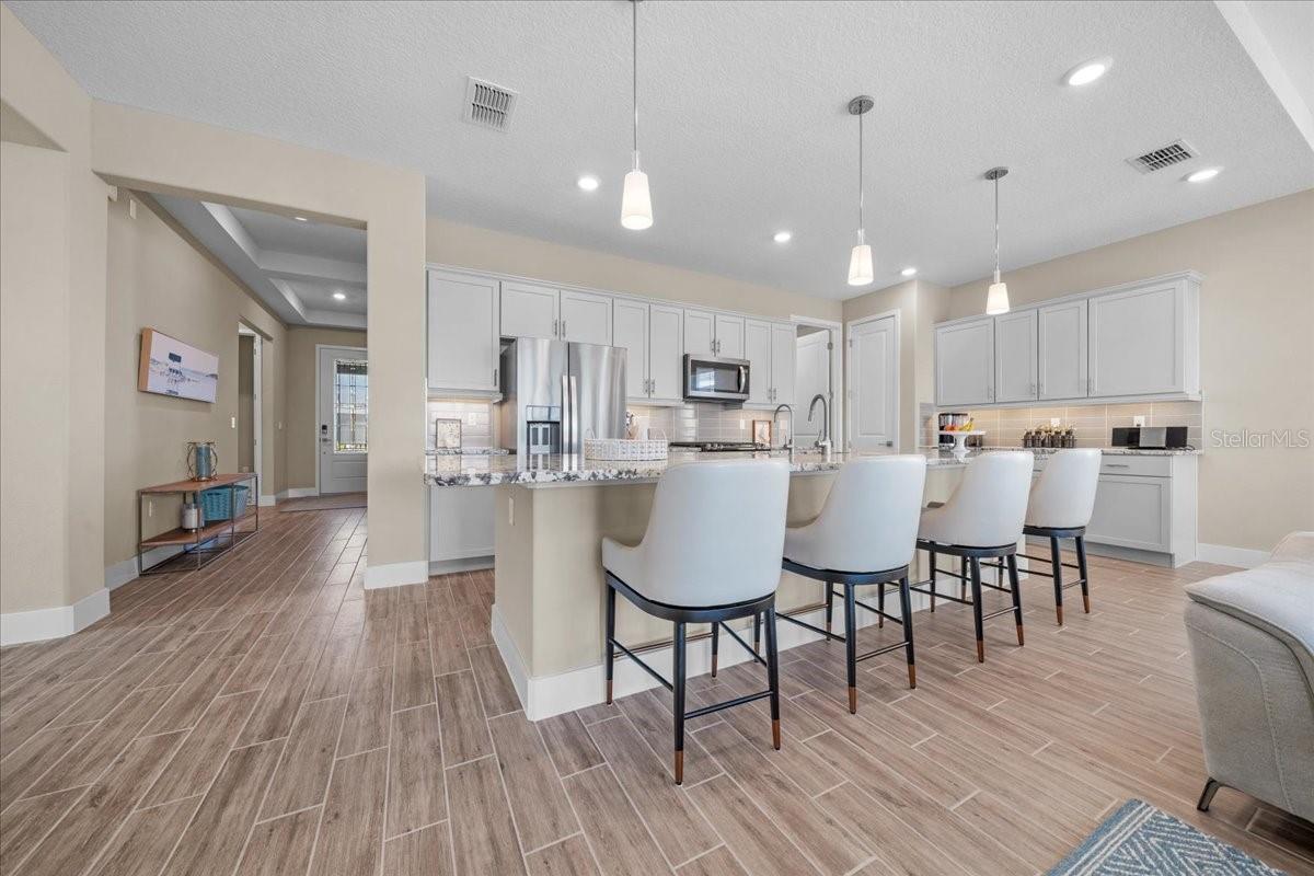 Meticulosamente mantido em casa com apelo ao meio -fio e melhor que o novo! Este modelo Connect de 2023 construído na Shea na preservação OCALA desejável oferece uma vida moderna e de nível único com 1.862 pés quadrados, 3 quartos, 2 banheiros e um espaço flexível versátil. Projetado com um conceito aberto para o estilo de vida de hoje, a sala grande e cheia de luz apresenta tetos de bandeja subindo e flui perfeitamente para a cozinha do chef, completa com uma ampla ilha de granito, armários elegantes de close macio, aparelhos de aço inoxidável que apresentam uma gama de deslizamentos de gás-perfeita para entretenimento. A espaçosa suíte primária é um verdadeiro retiro com um grande armário e um banheiro de banheiro, semelhante a um spa, com pias duplas e um chuveiro encerrado de vidro. Destaques adicionais incluem uma lavanderia com pia de utilidade, iluminação atualizada e acabamentos atenciosos por toda parte. Saia para desfrutar de uma frente e quintais profissionalmente hardscaped, com plantações paisagísticas emolduradas por bordas de pedra e um grande e prolongado Lanai, ideal para entreter ou relaxar. Situado em um lote premium sem casas diretamente atrás, esta propriedade oferece uma vista verde exuberante e um caminho de caminhada em torno da área comum para passeios serenos. O OCALA Preserve é uma comunidade fechada de mais de 55 anos, com comodidades, golfe, clube, jantar, piscinas, quadras de pickleball e tênis, centros de fitness e quilômetros de trilhas-todos os minutos do centro equestre mundial.