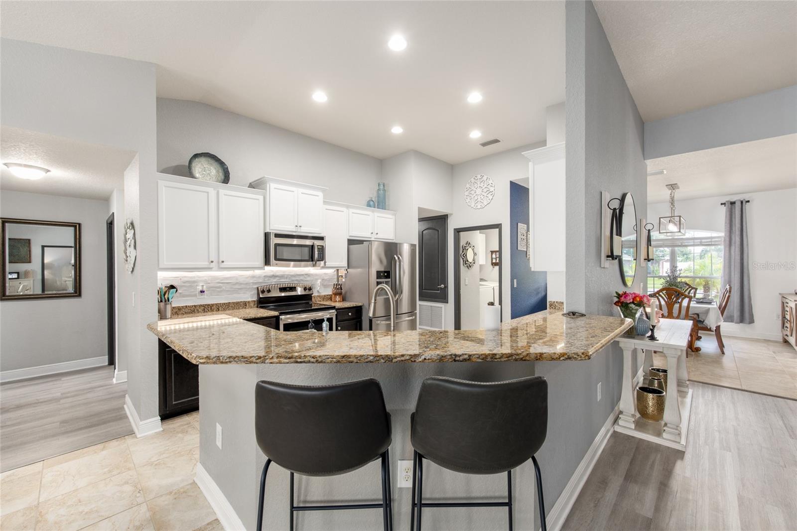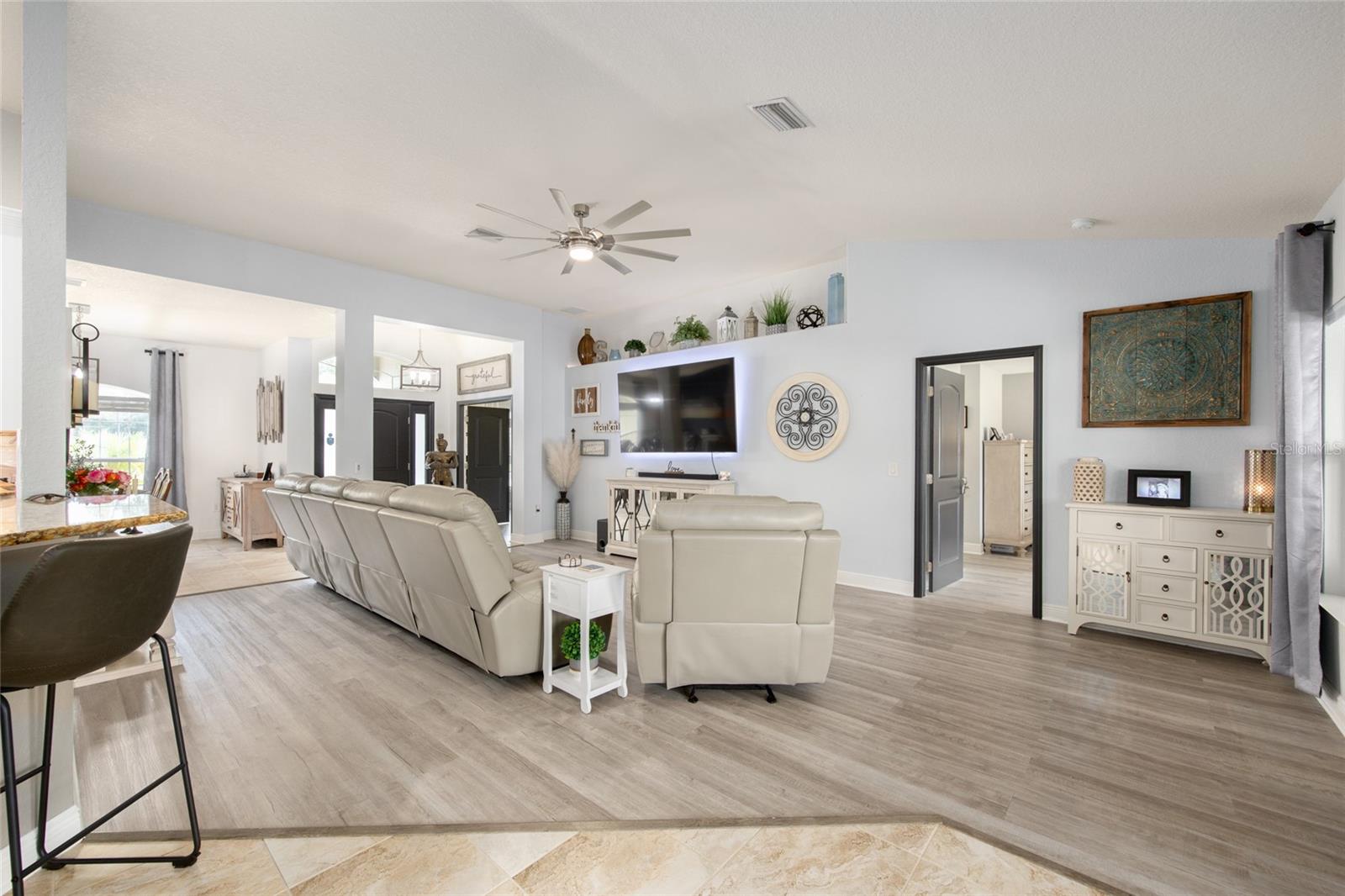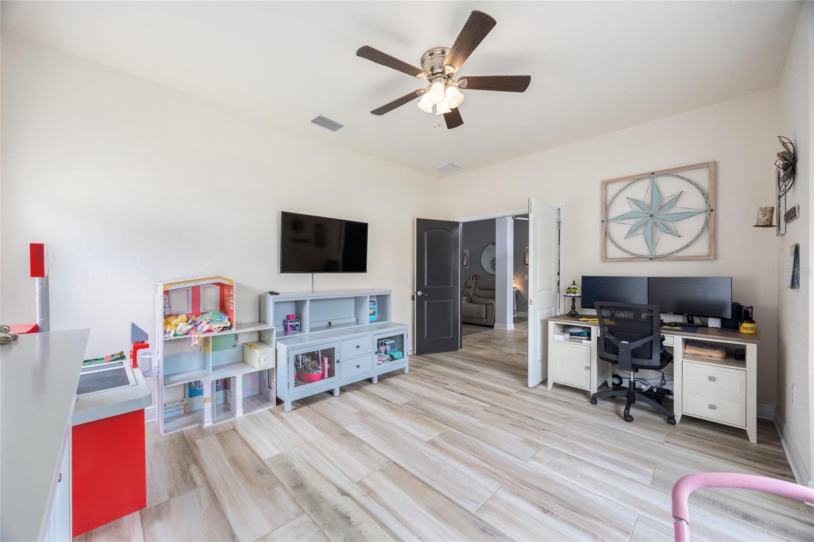 Localizada na desejável Preserve em Heath Brook, esta bela casa de 4 quartos e 2 banheiros, garagem lateral para 2 carros e versátil quarto flexível oferece um layout convidativo e funcional que você vai adorar voltar para casa. A casa possui uma espaçosa área de estar, jantar e cozinha com balcões de granito, backsplash de azulejos, armários de madeira com lixeira removível, eletrodomésticos de aço inoxidável e torneira ativada por toque. Desfrute de refeições na copa ou receba na sala de jantar formal. LVP durável e piso de cerâmica fluem por toda a casa para estilo e fácil manutenção. O layout de quarto dividido inclui uma suíte principal generosa com teto falso acentuado por sancas, closets duplos e banheiro privativo com banheira de jardim e chuveiro separado. A sala flexível oferece o espaço ideal para um escritório ou sala de jogos. Ao ar livre, relaxe em seu oásis privado com varanda coberta, pátio amplo, grande gaiola para pássaros e quintal cercado. Convenientemente localizada perto de lojas, entretenimento e cuidados de saúde, esta casa oferece conforto, estilo e conveniência em todos os detalhes.