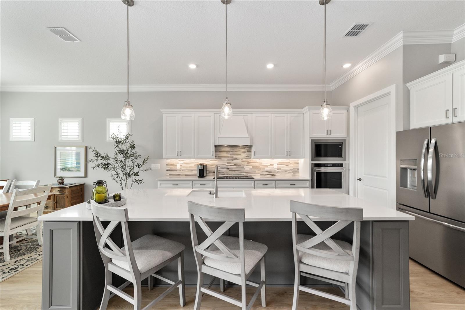 Bem-vindo a esta deslumbrante residência STELLAR MODEL perfeitamente posicionada no 16º BURACO do CURSO DE GOLFE projetado por Terry-Doss em Stone Creek, um dos mais desejáveis condomínios de golfe fechados com mais de 55 anos de Ocala. Esta impecável SÉRIE ECHELON 2023 combina elegância, conforto e funcionalidade. Este magnífico 3 quartos, 3 banheiros, mais + Flex/Arrumação/Escritório, apresenta um exterior que combina facilmente o charme arquitetônico clássico com um design arrojado e contemporâneo. Terrenos paisagísticos com ILUMINAÇÃO LED de destaque preparam o cenário para o apelo impressionante do meio-fio desta casa. Os detalhes exteriores em pedra e uma elegante ENTRADA FRONTAL COM INSERÇÃO DE VIDRO criam um ponto focal convidativo. Descubra um design espaçoso de CONCEITO ABERTO com TETOS ALTOS de 10'8 pés acentuados por MOLDURAS DE COROA PERSONALIZADAS, PERSIANAS DE PLANTAÇÃO e PISO LVP. A cozinha do Chef apresenta armários de madeira de 42" com fechamento suave com gavetas removíveis, despensa, balcões de QUARTZO, PIA DE GRANITO, capô de madeira personalizado, eletrodomésticos KitchenAid embutidos premium, ILUMINAÇÃO DE BAIXO e um BAR embutido com refrigerador de vinho e prateleiras de exibição adicionando um toque elegante para entretenimento. A suíte principal impressiona com TETOS DE BANDEJA, um amplo closet e um SPA BANHEIRO INSPIRADO com chuveiro de estilo romano com chuveiro de chuva e pia dupla. O quarto de hóspedes localizado na frente da residência oferece uma suíte privada. O quarto Flex, que pode ser usado como escritório/escritório/sala de bônus, possui portas duplas francesas para privacidade. VISTAS PANORÂMICAS DO CAMPO DE GOLFE e um PÁTIO DE PAVER DE TIJOLO 25x16. Conveniência SMART HOME pré-cabeada como uma casa inteligente, facilitando a conexão de sistemas de segurança, termostatos inteligentes, iluminação e outros recursos modernos para maior conforto e tranquilidade. Extensão de 4' e piso com revestimento epóxi. Localização privilegiada dentro do condomínio, a poucos minutos da portaria, do campo de golfe, do restaurante do clube, das piscinas em estilo resort e da academia de ginástica de última geração, tudo ao seu alcance.