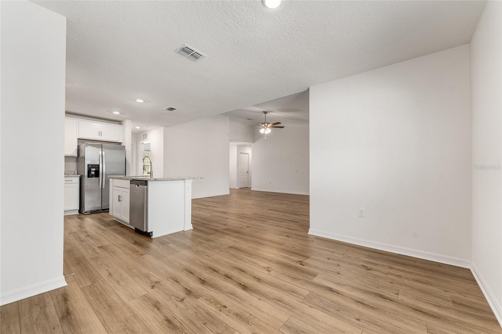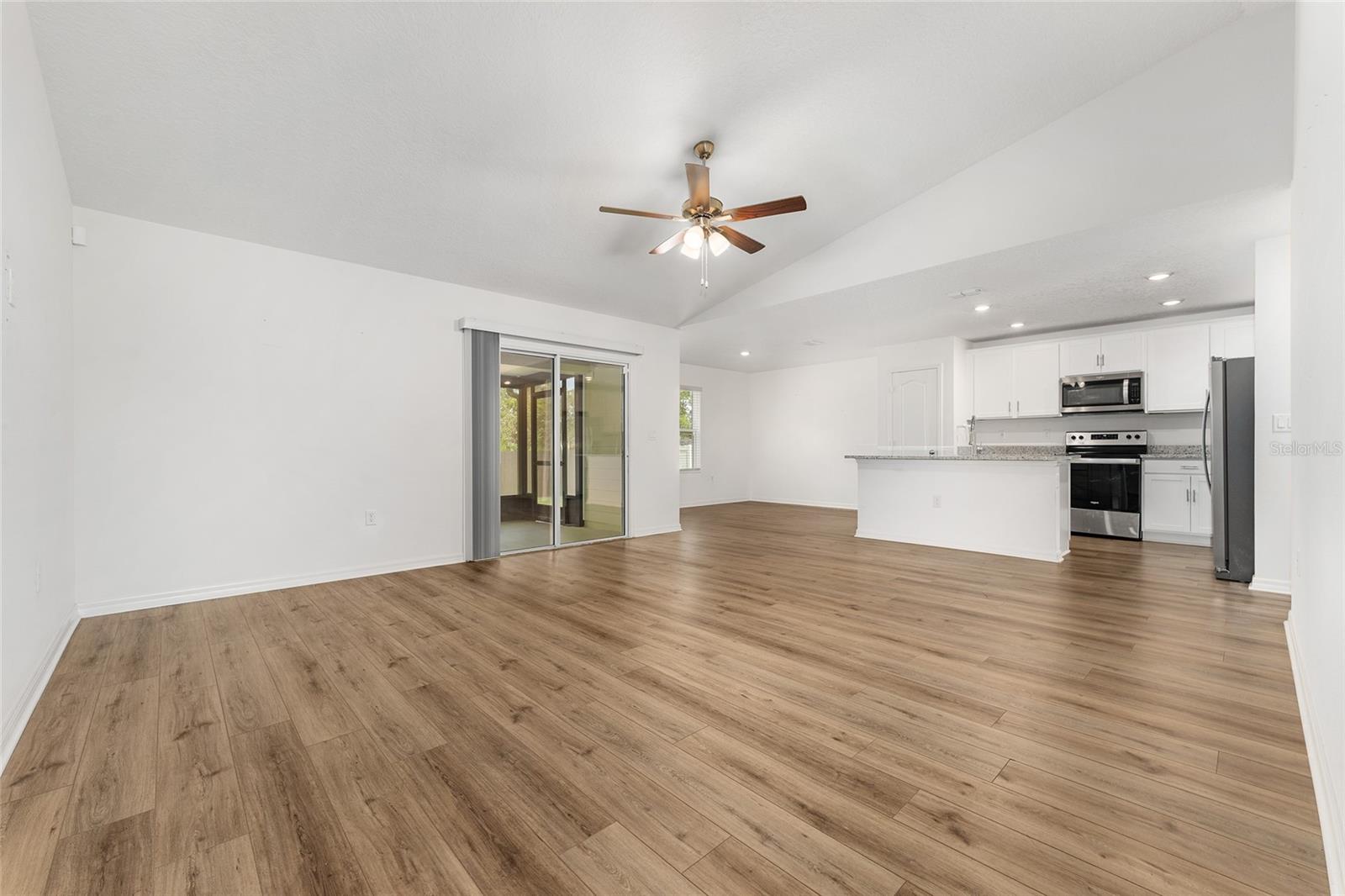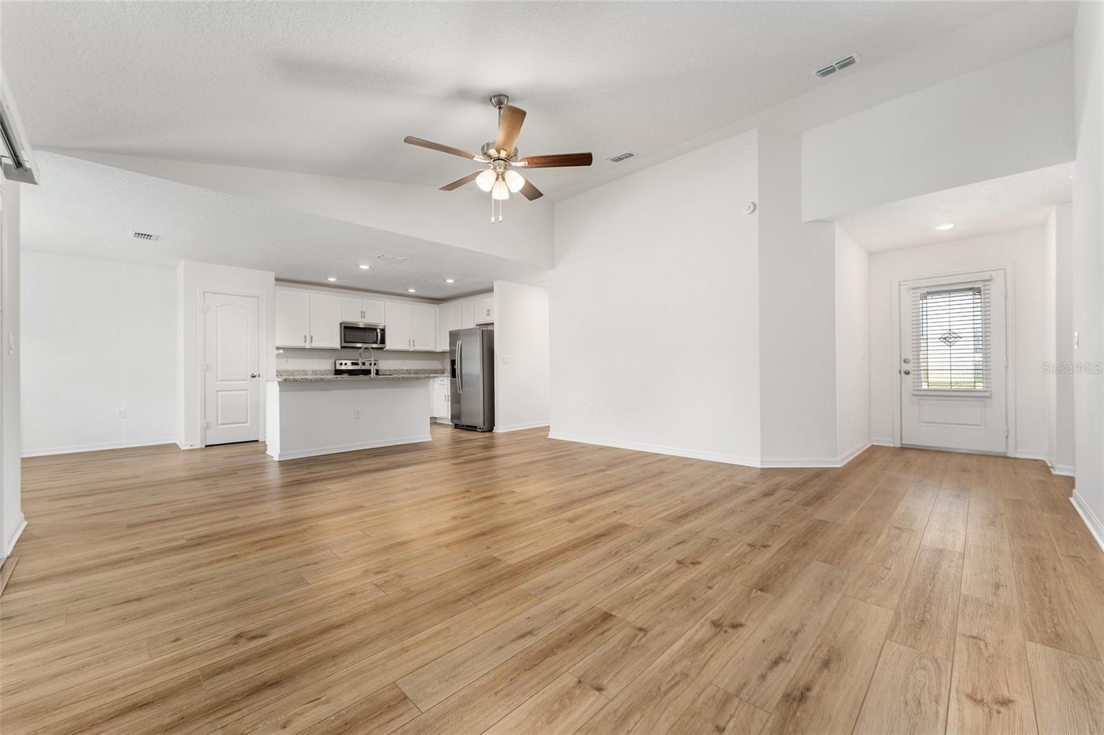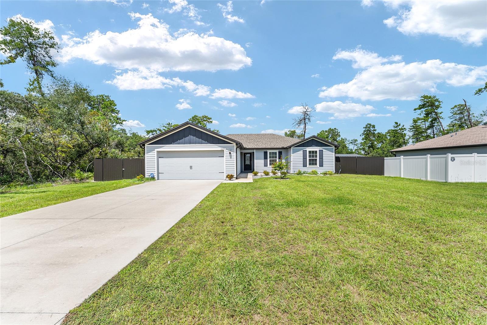 MELHORIA DE PREÇO!!! COMO NOVA, casa de 2024 com 3 quartos, 2 banheiros, sala flexível e garagem para 2 carros. Ao se aproximar, você será recebido por um pátio frontal e paisagismo de pedra, proporcionando excelente apelo ao meio-fio. Entre para descobrir uma sala de estar iluminada e convidativa com tetos abobadados, um ventilador de teto e uma porta de vidro deslizante que leva à varanda com tela, oferecendo uma experiência de vida interna e externa perfeita. Toda a casa possui luxuoso piso de pranchas de vinil, com carpete macio nos quartos para maior aconchego e conforto. A cozinha possui ilha, bancada de granito, iluminação sob o armário, eletrodomésticos de aço inoxidável e luminárias atualizadas. A área de jantar adjacente é perfeita para refeições em família ou entretenimento. O espaçoso quarto principal oferece um retiro aconchegante com tetos abobadados, carpete, ventilador e persianas. O banheiro privativo possui um armário de roupa de cama, um chuveiro lindamente revestido de azulejos com porta de vidro, uma grande penteadeira individual com bancada de quartzo e um amplo closet. Os quartos 2 e 3 são bem dimensionados com carpete, ventiladores, persianas e armários. O segundo banheiro oferece uma penteadeira de quartzo e uma combinação de banheira/chuveiro com detalhes em azulejos. A versátil sala flexível pode ser usada como home office, sala de jogos ou área de exercícios, completa com ventilador de teto e persianas para maior conforto. Aproveite o ar livre na ampla varanda com tela de 38 x 12, que é perfeita para relaxar ou se divertir, e conta com tela de privacidade e dois ventiladores de teto. O quintal cercado é ideal para animais de estimação e privacidade, contando com cerca de alumínio com dois portões. Os recursos adicionais desta casa incluem calhas e um sistema de segurança ADT com câmeras para maior tranquilidade. Não perca a oportunidade de adquirir esta casa pronta para morar em Marion Oaks! Agende uma exibição hoje! Tour 3D e planta baixa disponíveis mediante solicitação.