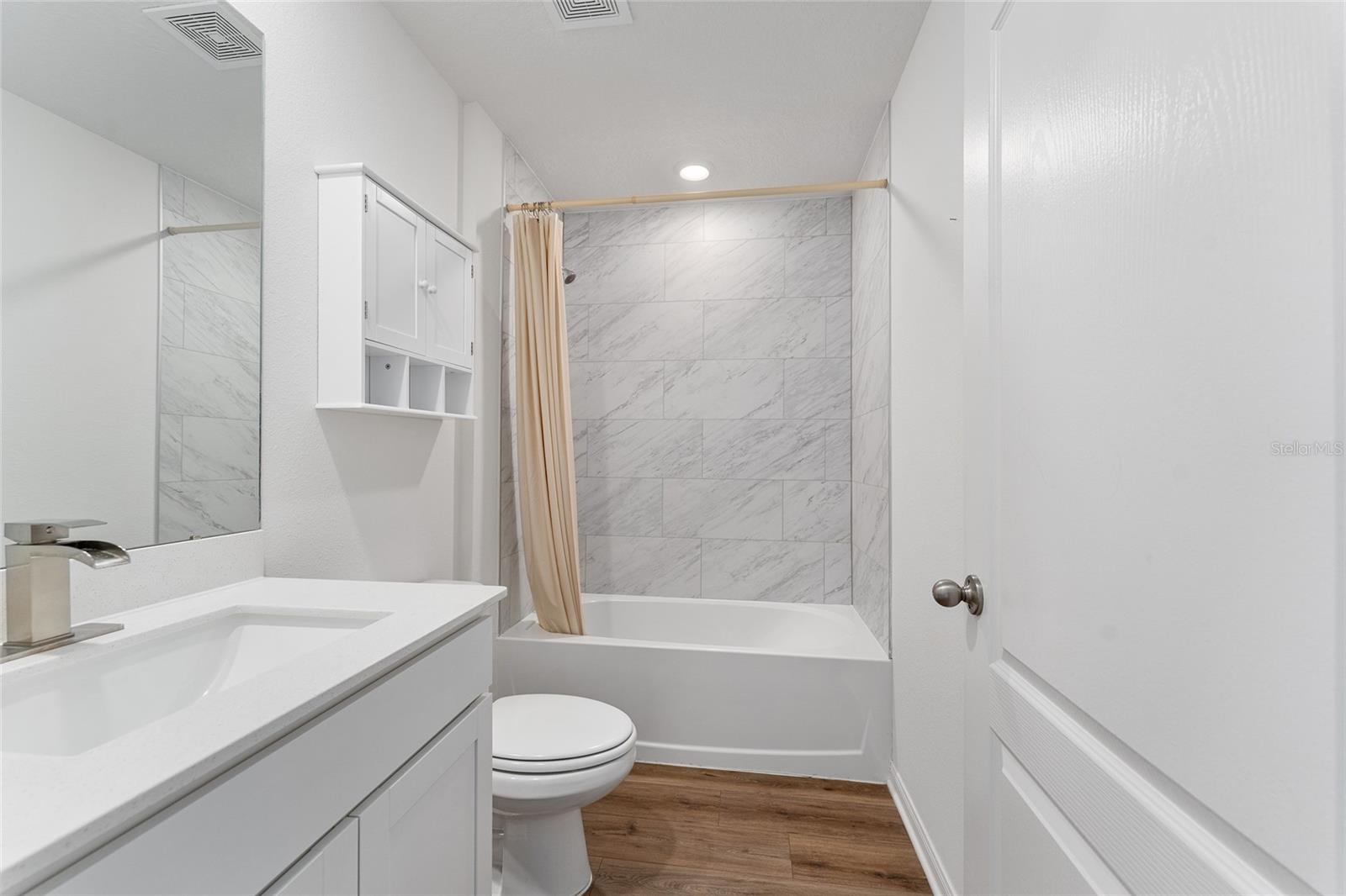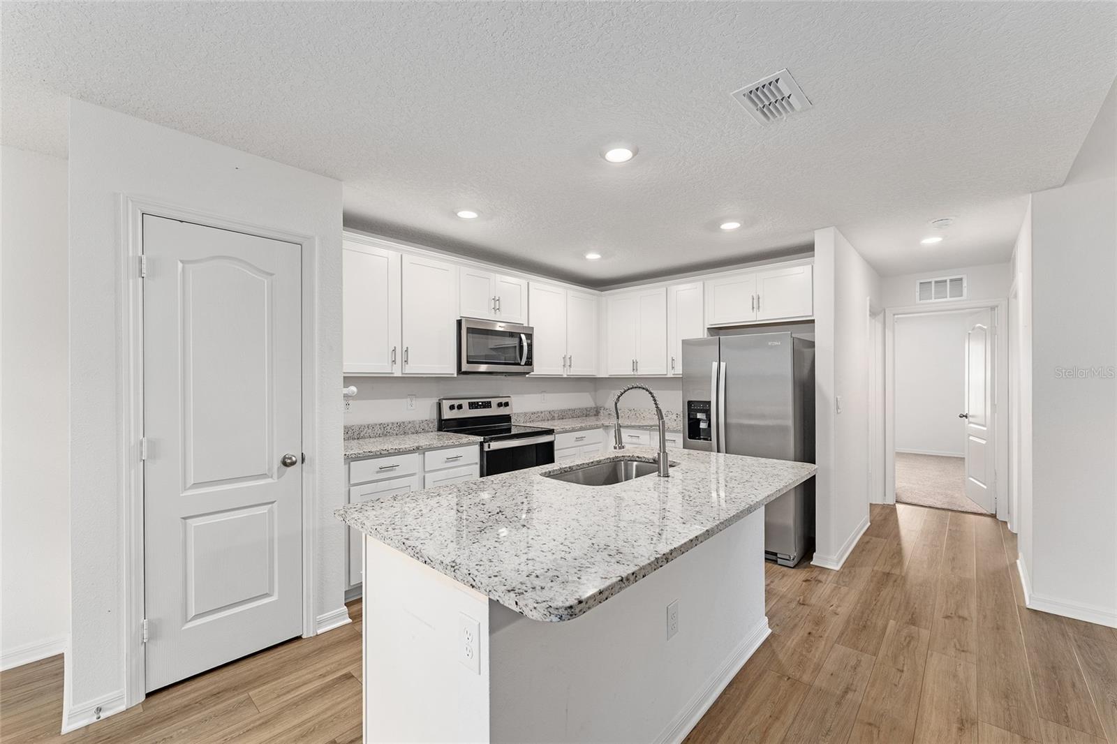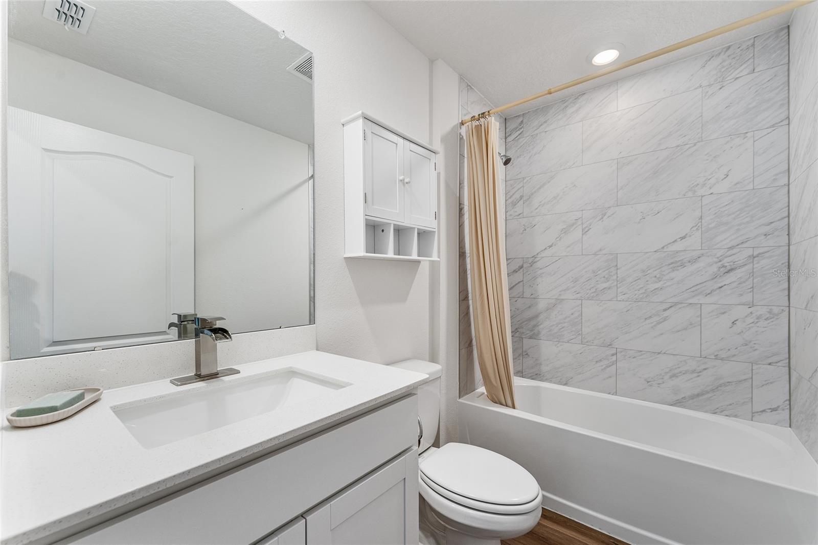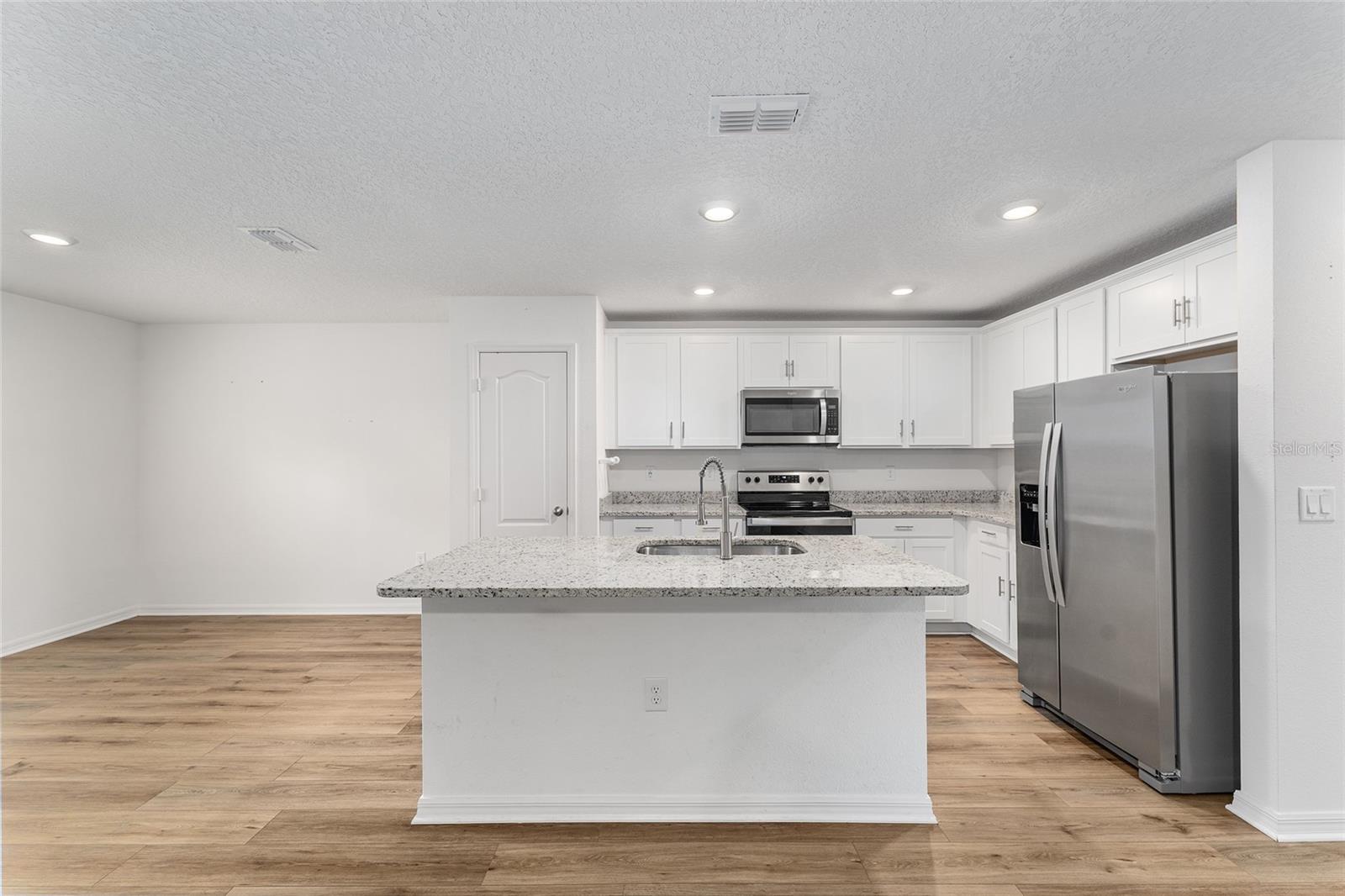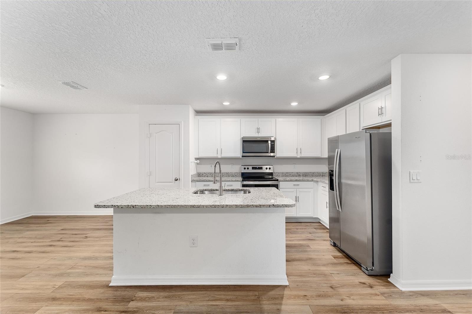 MELHORIA DE PREÇO!!! COMO NOVA, casa de 2024 com 3 quartos, 2 banheiros, sala flexível e garagem para 2 carros. Ao se aproximar, você será recebido por um pátio frontal e paisagismo de pedra, proporcionando excelente apelo ao meio-fio. Entre para descobrir uma sala de estar iluminada e convidativa com tetos abobadados, um ventilador de teto e uma porta de vidro deslizante que leva à varanda com tela, oferecendo uma experiência de vida interna e externa perfeita. Toda a casa possui luxuoso piso de pranchas de vinil, com carpete macio nos quartos para maior aconchego e conforto. A cozinha possui ilha, bancada de granito, iluminação sob o armário, eletrodomésticos de aço inoxidável e luminárias atualizadas. A área de jantar adjacente é perfeita para refeições em família ou entretenimento. O espaçoso quarto principal oferece um retiro aconchegante com tetos abobadados, carpete, ventilador e persianas. O banheiro privativo possui um armário de roupa de cama, um chuveiro lindamente revestido de azulejos com porta de vidro, uma grande penteadeira individual com bancada de quartzo e um amplo closet. Os quartos 2 e 3 são bem dimensionados com carpete, ventiladores, persianas e armários. O segundo banheiro oferece uma penteadeira de quartzo e uma combinação de banheira/chuveiro com detalhes em azulejos. A versátil sala flexível pode ser usada como home office, sala de jogos ou área de exercícios, completa com ventilador de teto e persianas para maior conforto. Aproveite o ar livre na ampla varanda com tela de 38 x 12, que é perfeita para relaxar ou se divertir, e conta com tela de privacidade e dois ventiladores de teto. O quintal cercado é ideal para animais de estimação e privacidade, contando com cerca de alumínio com dois portões. Os recursos adicionais desta casa incluem calhas e um sistema de segurança ADT com câmeras para maior tranquilidade. Não perca a oportunidade de adquirir esta casa pronta para morar em Marion Oaks! Agende uma exibição hoje! Tour 3D e planta baixa disponíveis mediante solicitação.