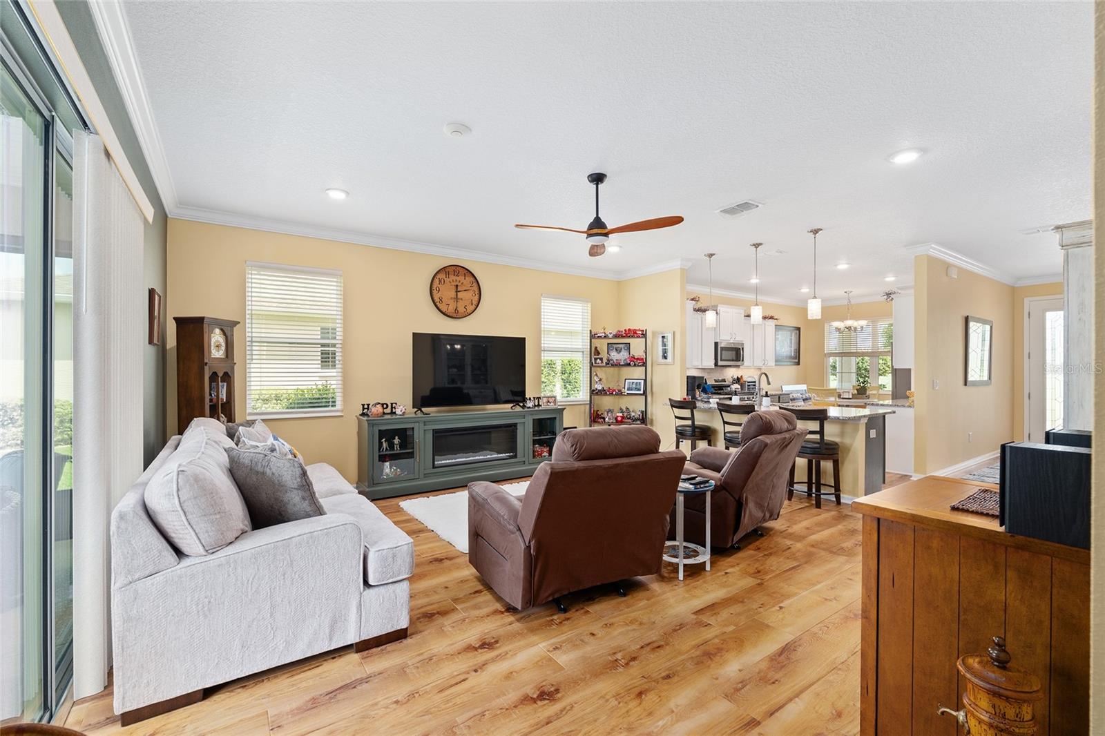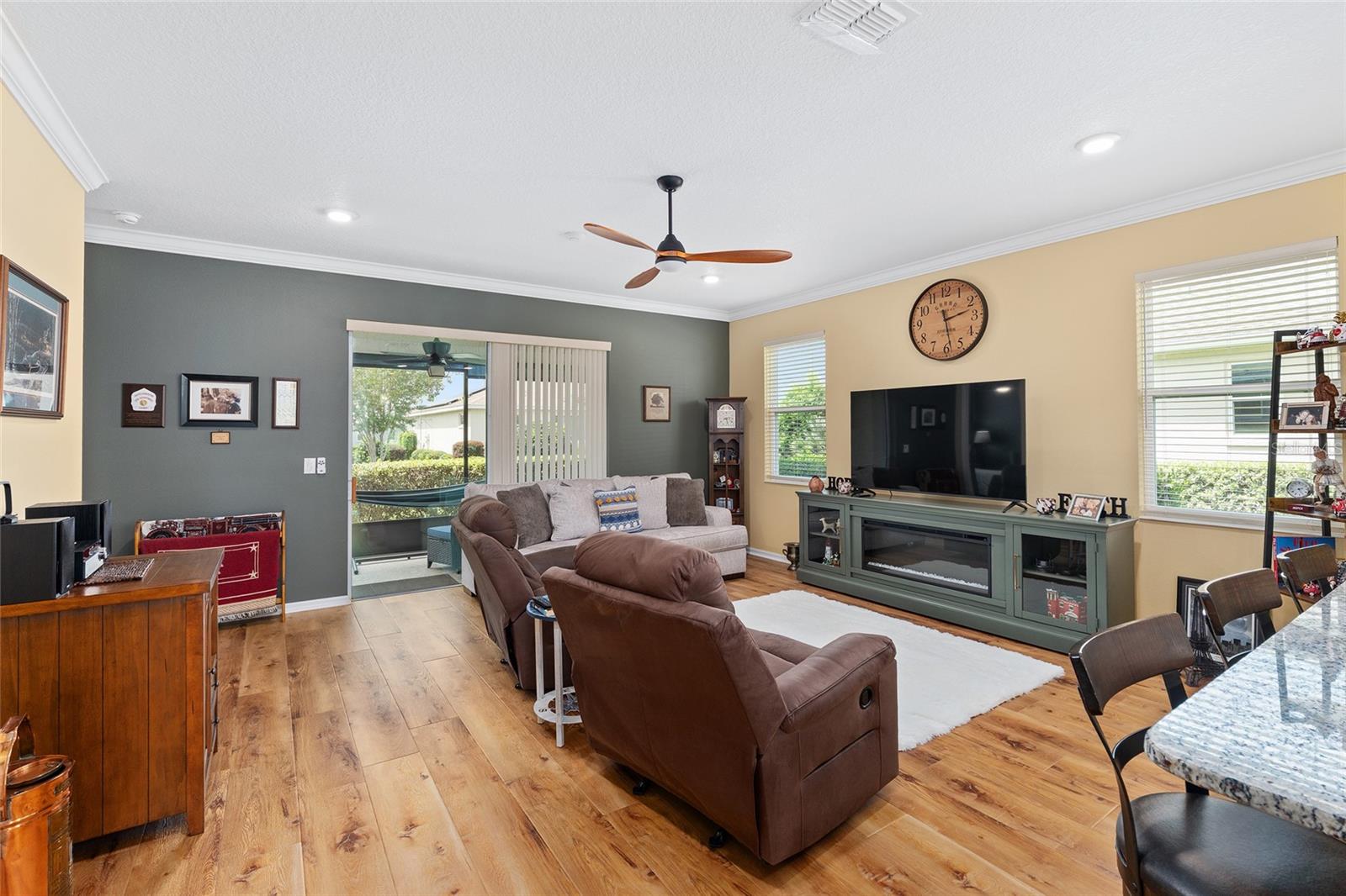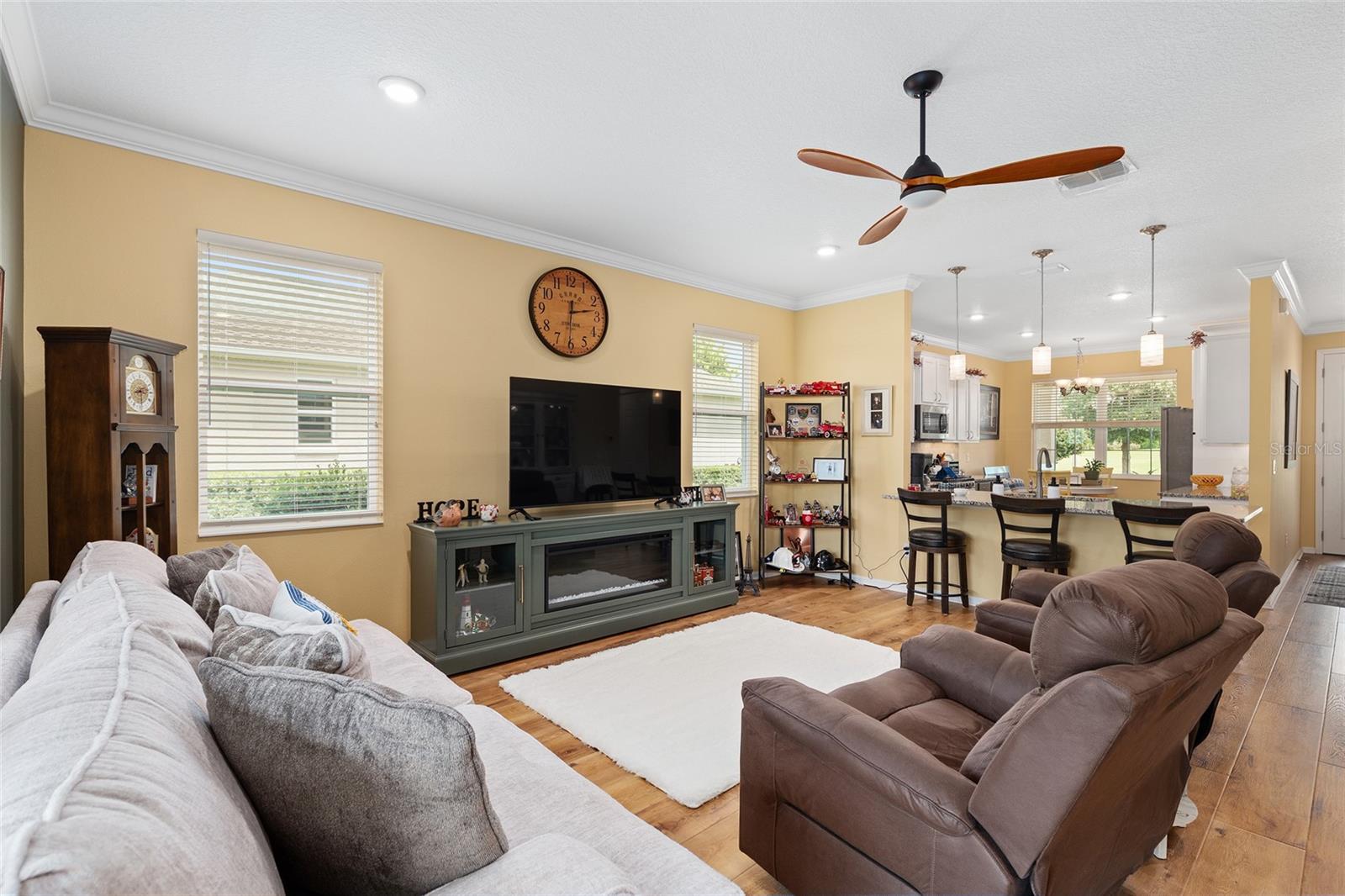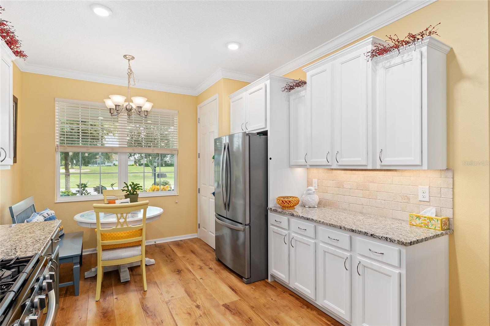 Bem -vindo a este modelo Kent lindamente mantido na comunidade Avalon 4. Esta casa de 2 quartos e 2 banheiros com uma garagem de 2 carros apresenta atualizações elegantes, acabamentos modernos e uma vista pacífica de campo de golfe sem vizinhos da frente. O layout aberto mostra o piso de tábua de vinil de luxo, moldagem por coroa, ventiladores de teto e muita luz natural. A cozinha oferece armários escalonados com tons duplos com moldagem por coroa, um backsplash de ladrilhos, bancadas de granito com iluminação pendente e utensílios inoxidáveis de hidromassagem, incluindo uma faixa de gás e microondas. Uma despensa e uma área de jantar com persianas adicionais aumentam a funcionalidade. A sala de estar abre com controles deslizantes, também equipados com persianas, a um lanai exibido com um ventilador de teto e tons de puxar, todos com vista para as sebes de privacidade paisagísticas. A suíte primária inclui um ventilador de teto, 2 janelas com persianas, um closet e um banho de suíte com um chuveiro de azulejos com bancada, pia dupla de quartzo, piso de ladrilho e um armário de linho. O quarto de hóspedes oferece uma cama Murphy com mesa embutida, armário e persianas, enquanto o segundo banho fornece uma combinação de banheira e chuveiro, pia de quartzo, armários de madeira e piso de ladrilhos. Um armário do corredor oferece armazenamento extra e o armário de lavanderia está equipado com uma lavadora e secadora de Maytag. A garagem de dois carros possui um piso revestido de epóxi, e a casa é completa com sarjetas, paisagismo curto e um ambiente privado com vistas de campo de golfe na frente e hedges de privacidade na traseira. Localizado na comunidade de 55 mais de 55 anos de Ocala, fechada e ativa, carregada de comodidades, incluindo acesso ao carrinho de golfe a 2 shopping centers.