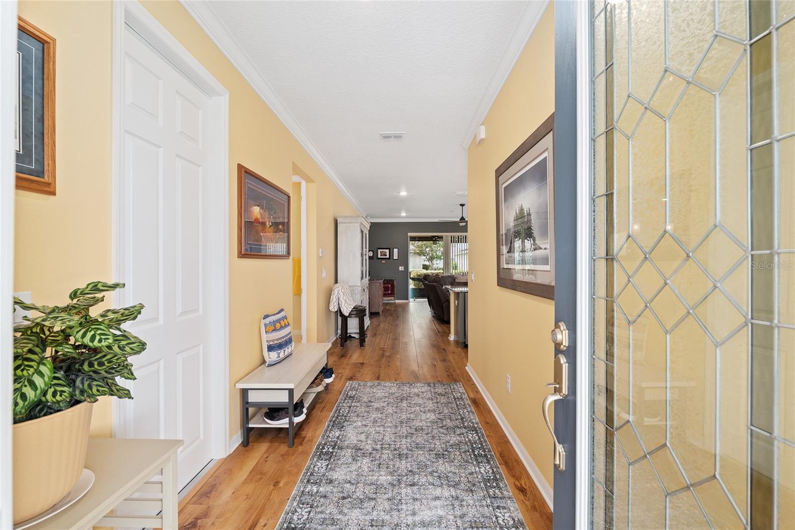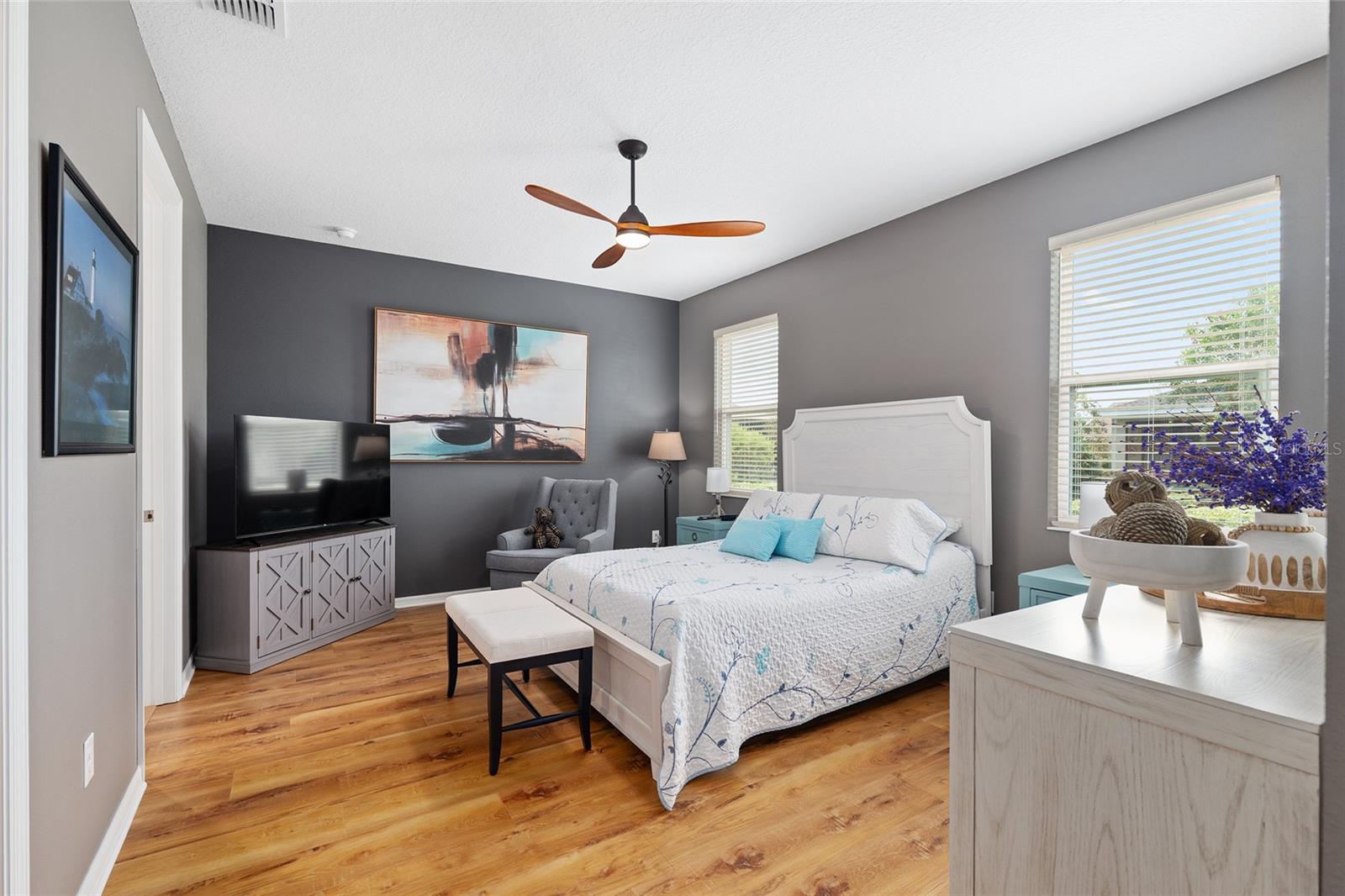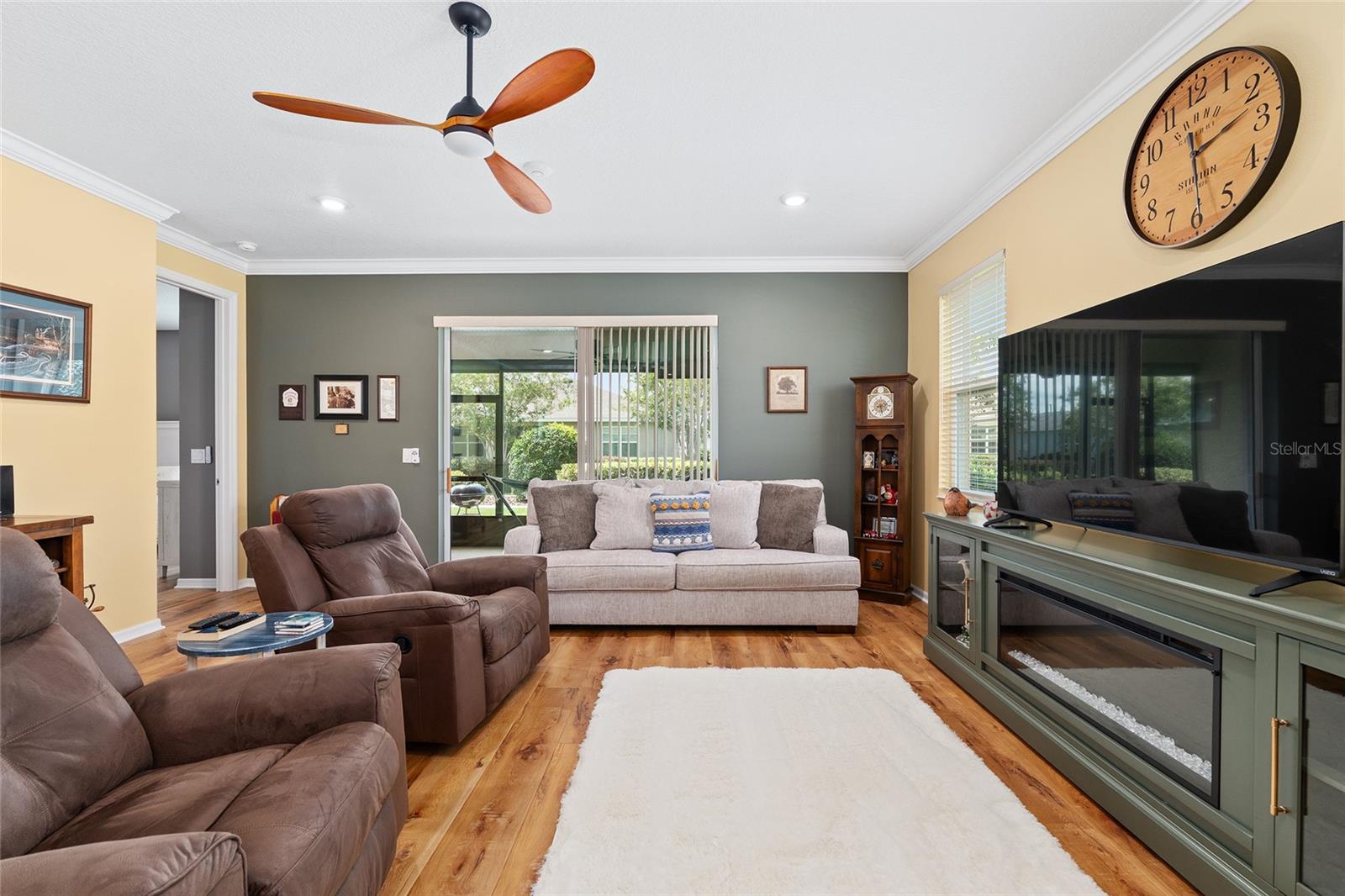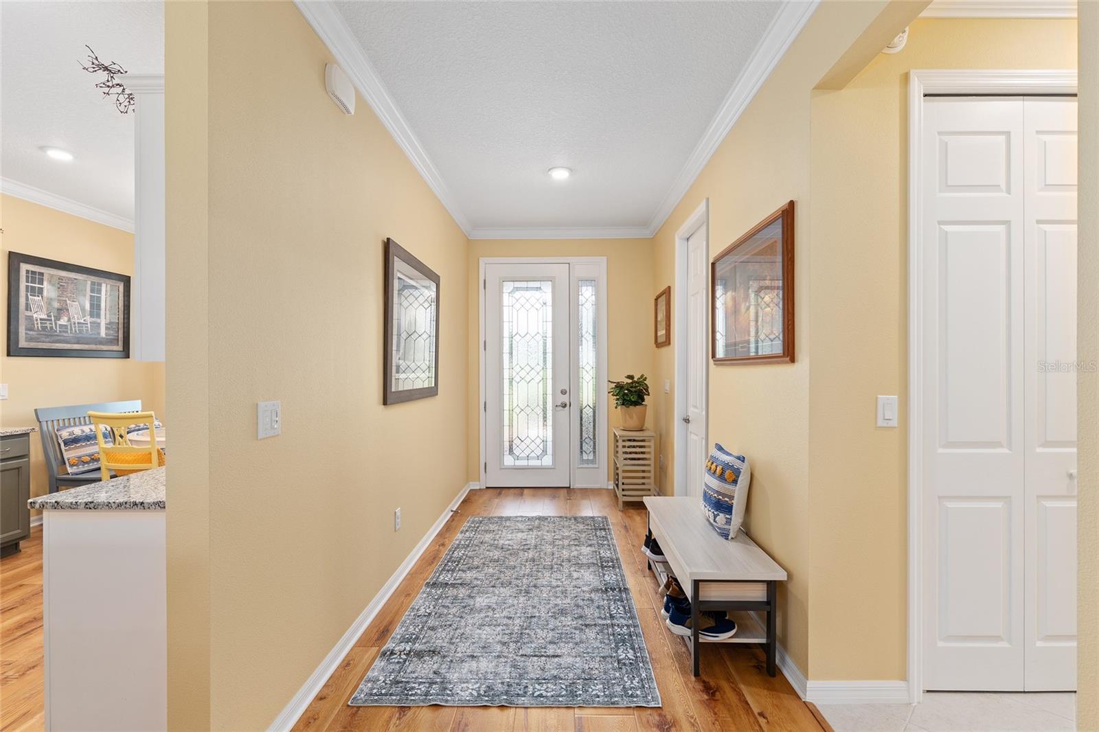 Bem -vindo a este modelo Kent lindamente mantido na comunidade Avalon 4. Esta casa de 2 quartos e 2 banheiros com uma garagem de 2 carros apresenta atualizações elegantes, acabamentos modernos e uma vista pacífica de campo de golfe sem vizinhos da frente. O layout aberto mostra o piso de tábua de vinil de luxo, moldagem por coroa, ventiladores de teto e muita luz natural. A cozinha oferece armários escalonados com tons duplos com moldagem por coroa, um backsplash de ladrilhos, bancadas de granito com iluminação pendente e utensílios inoxidáveis de hidromassagem, incluindo uma faixa de gás e microondas. Uma despensa e uma área de jantar com persianas adicionais aumentam a funcionalidade. A sala de estar abre com controles deslizantes, também equipados com persianas, a um lanai exibido com um ventilador de teto e tons de puxar, todos com vista para as sebes de privacidade paisagísticas. A suíte primária inclui um ventilador de teto, 2 janelas com persianas, um closet e um banho de suíte com um chuveiro de azulejos com bancada, pia dupla de quartzo, piso de ladrilho e um armário de linho. O quarto de hóspedes oferece uma cama Murphy com mesa embutida, armário e persianas, enquanto o segundo banho fornece uma combinação de banheira e chuveiro, pia de quartzo, armários de madeira e piso de ladrilhos. Um armário do corredor oferece armazenamento extra e o armário de lavanderia está equipado com uma lavadora e secadora de Maytag. A garagem de dois carros possui um piso revestido de epóxi, e a casa é completa com sarjetas, paisagismo curto e um ambiente privado com vistas de campo de golfe na frente e hedges de privacidade na traseira. Localizado na comunidade de 55 mais de 55 anos de Ocala, fechada e ativa, carregada de comodidades, incluindo acesso ao carrinho de golfe a 2 shopping centers.