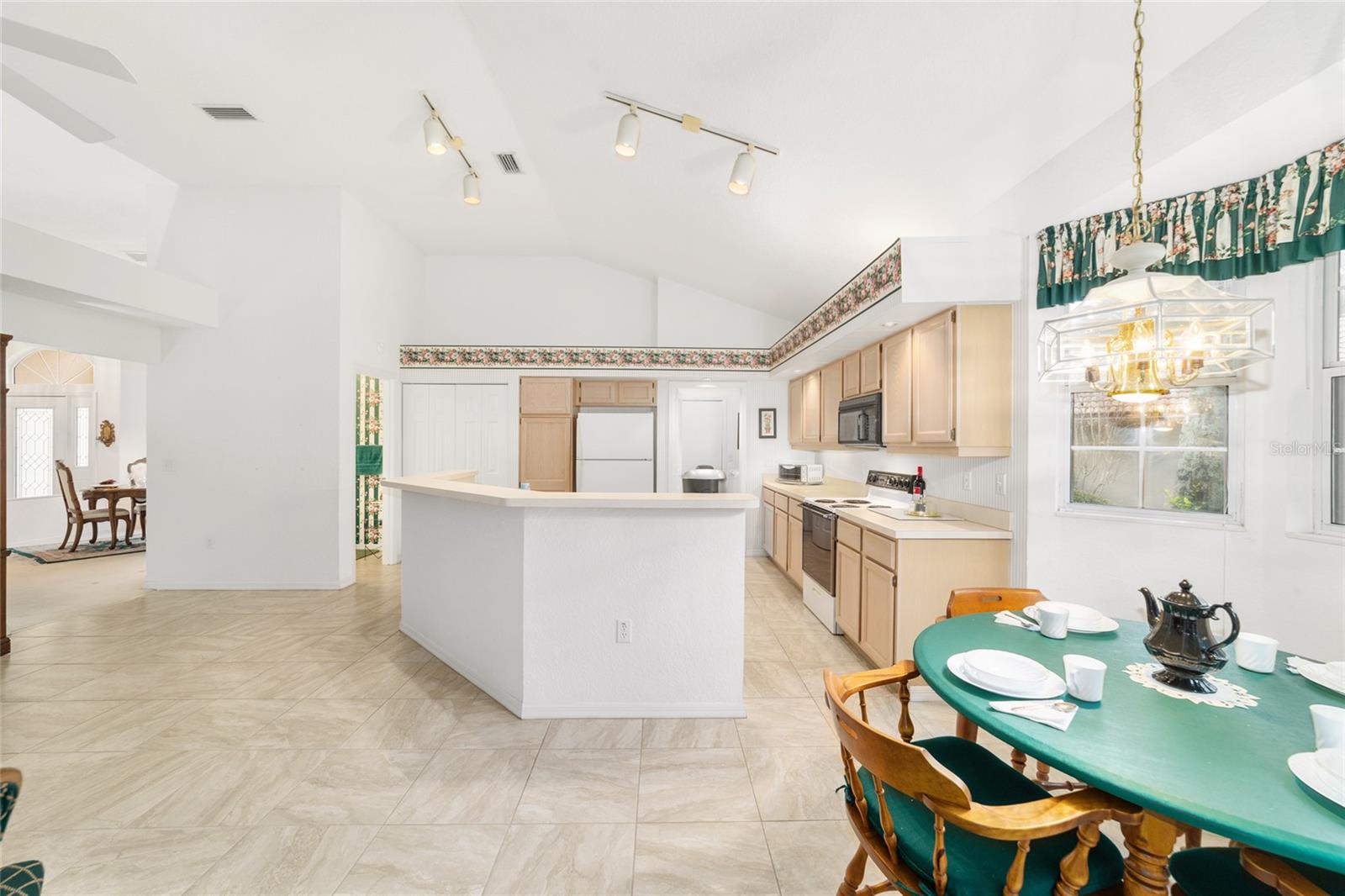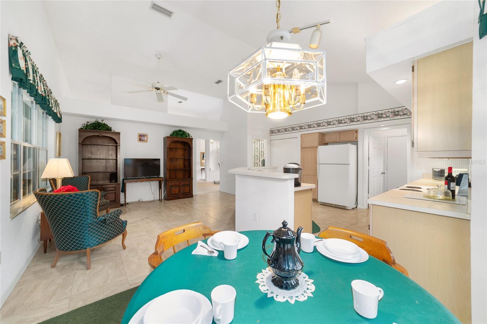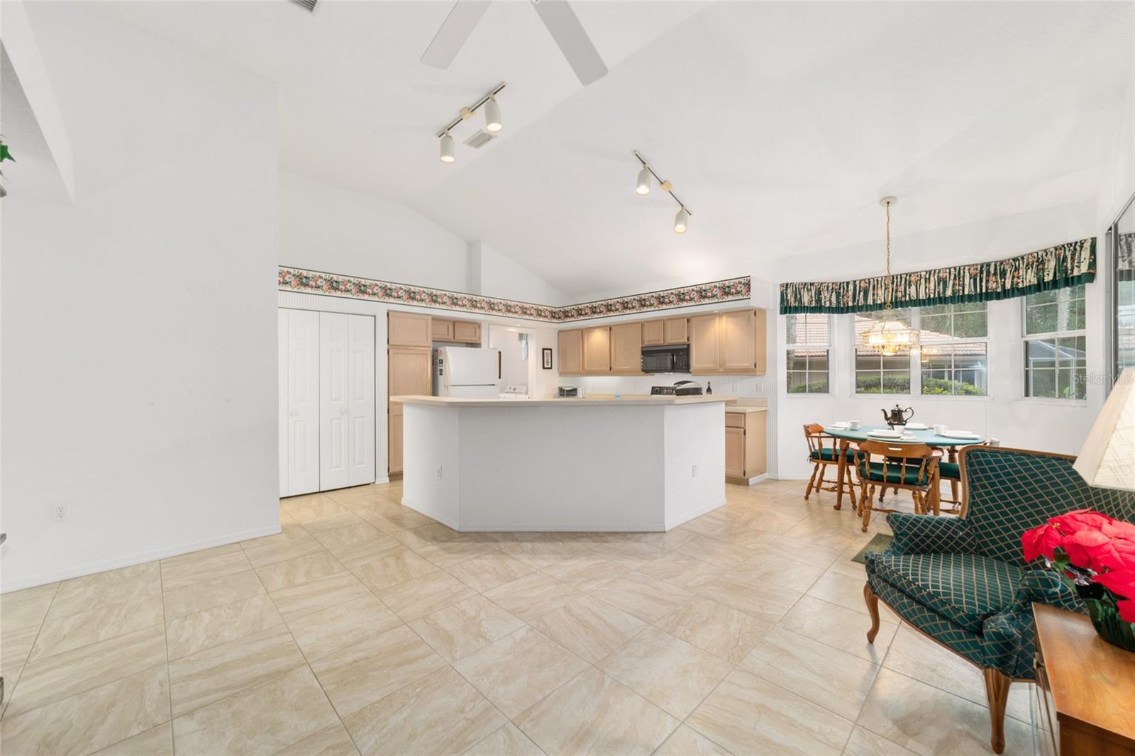 Se você está procurando uma grande casa - é isso! Localizado a apenas um passeio pela rua até o clube da ilha com 3 piscinas e jacuzzi. Ao entrar, você é recebido com tetos altos, uma grande sala de jantar aberta à sala de estar com acesso à grande parte. À esquerda do jantar e sala de estar está a cozinha enorme que possui toneladas de espaço, 2 despensas, uma com gavetas de retirada, armários mais baixos com gavetas de retirada e muito espaço sobre os armários para exibir suas coisas favoritas, além de controles deslizantes para o Lanai. Há também meio banho à esquerda da cozinha também. À direita do jantar e da sala está o corredor para os quartos. Há um quarto principal do King Size que tem uma enorme caminhada no armário, deslizantes para o Lanai, um banheiro na suíte com 2 vaidades, passo no chuveiro, banheira de imersão e vasilheiro privado. O meio ou o segundo quarto pode ser usado como um escritório conveniente. Entre o quarto 2 e o quarto 3, há um banheiro de Jack e Jill com vaidades duplas, passo no chuveiro e vasilheiro privado. O terceiro quarto tem um armário grande, então há muito espaço para todas as suas necessidades de seus convidados. O lanai que pode ser acessado na cozinha, na sala de estar e no quarto principal é enorme a 376 pés quadrados. Possui calor e ar e 2 clarabóias para trazer esse sol da Flórida - um ótimo lugar para tomar seu café pela manhã, abrir as janelas e ouvir os pássaros e olhar para o seu belo quintal privado. Então, aqui estão os fatos: quintal privado, 2340 pés quadrados, garagem de 500 pés quadrados, 3 quartos. 2.5 Banhos, New Roof 2019, AC2010, armazenamento, armazenamento e mais espaço de armazenamento e logo na estrada de 3 piscinas e uma banheira de hidromassagem. O Oak Run Country Club oferece 6 piscinas 5 banheiras de hidromassagem, restaurante, campo de golfe, 2 centros de fitness, parque de cães, pickleball, tênis e muito mais. Do lado de fora do portão fica o Walmart, compras, instalações médicas e restaurantes. Então pare de empurrar a neve neste inverno e faça Ocala central na ensolarada Flórida sua casa para sempre!