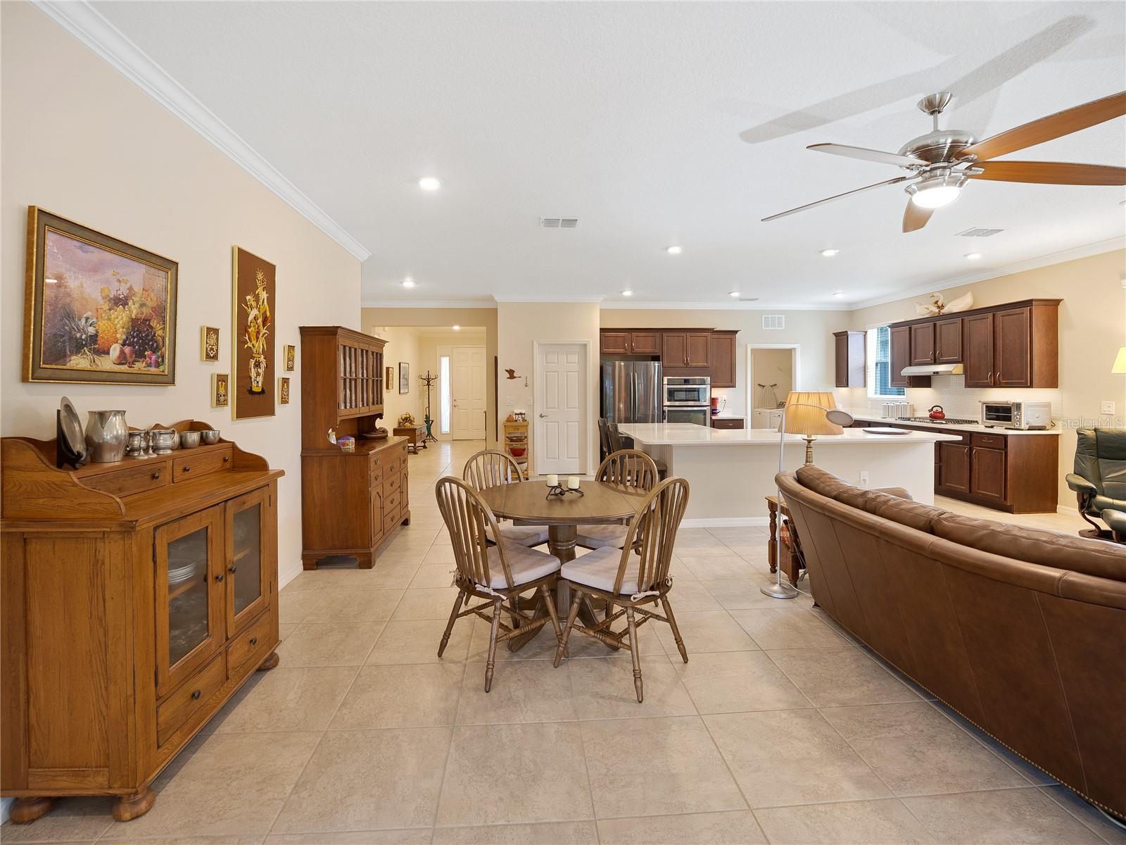 Espaçosa casa de conceito aberto de 2017 na desejável Indigo East Community, localizada em On Top of the World. Esta casa do proprietário original, bem cuidada, mostra-se como um modelo; tem dois quartos grandes e uma sala flexível com localização central e portas francesas de vidro completas. Você é recebido na varanda frontal sombreada, passando pela cozinha de conceito aberto, sala grande e área de jantar até a varanda e o pátio traseiro. O toldo retrátil garante sombra extra quando necessário. A cozinha impressiona com uma despensa ampla e é uma delícia do chef, com muito espaço sólido para preparação de bancada, fogão a gás e uma grande ilha central com assentos extras para convidados em dois lados. Sua fornalha, aquecedor de água e secadora também são aquecidos a gás. O quarto principal é espaçoso o suficiente para uma área de vestir/estar e o banheiro privativo está localizado logo após o duelo de armários. O HOA cobre uma ampla gama de comodidades, incluindo duas piscinas, centro comunitário, parque para cães e trilhas para caminhada. Não perca a oportunidade de tornar sua esta maravilhosa casa. Nota: O CDD é pago nesta casa.