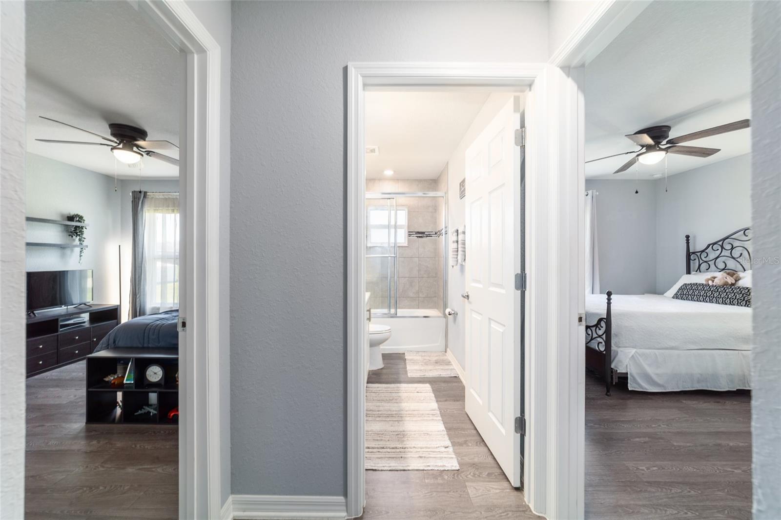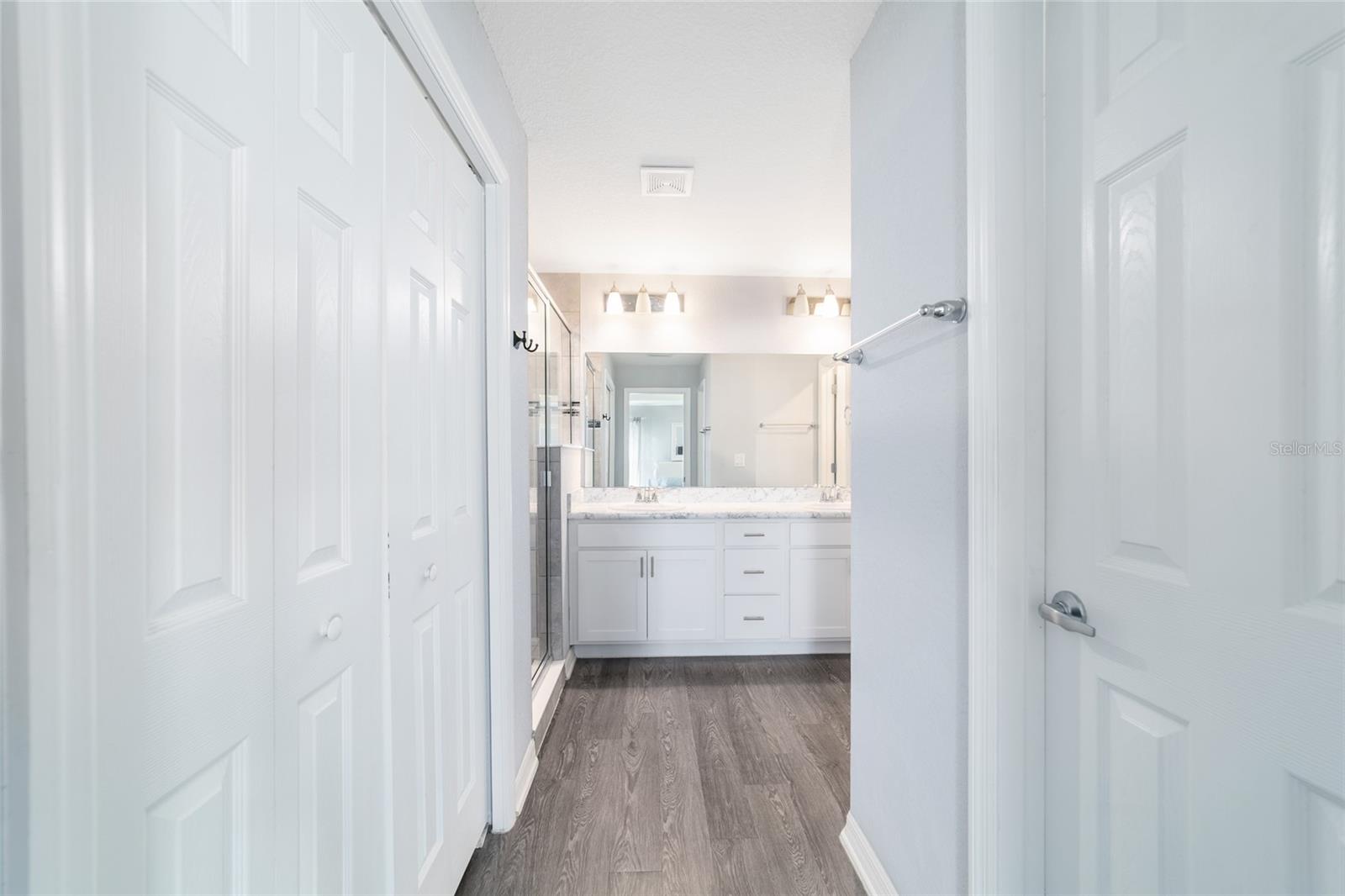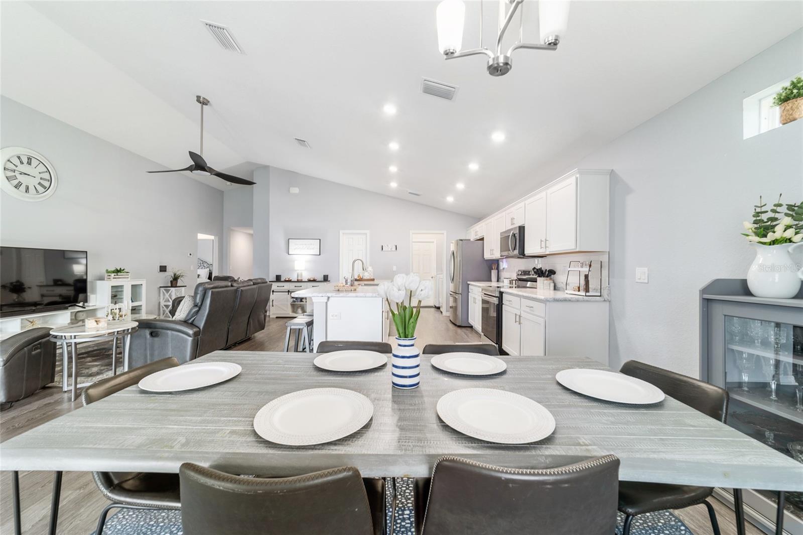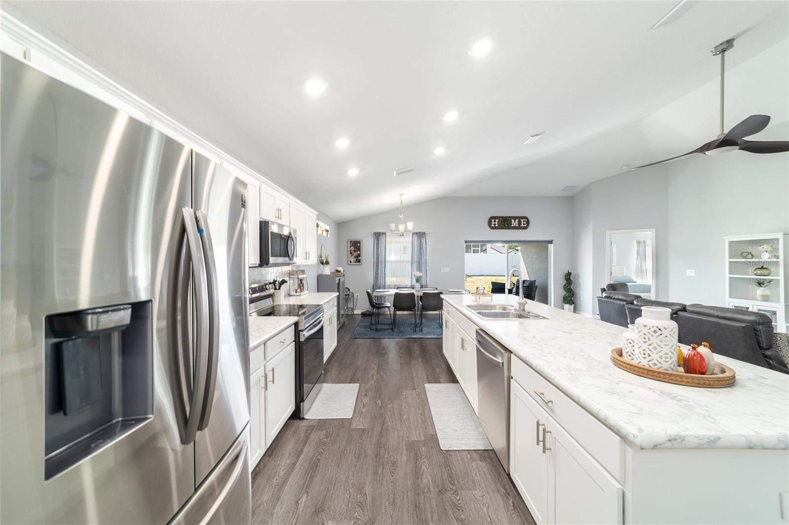Bem -vindo para casa! Depois de um longo dia de trabalho ou brincar, puxe sua garagem para dois carros com seu piso coberto de epóxi e entre para dentro para ser recebido por uma zona de queda ponderada-o local perfeito para armazenar chaves, bolsas e essenciais do dia a dia, mantendo os balcões de cozinha sem desordem. Esse espaço também funciona como uma lavanderia dedicada, completa com uma bancada que simplifica a roupa dobrável. Os hóspedes são recebidos através de um grande hall de entrada coberto com um armário adjacente e muito espaço para um banco de entrada. Esta casa cuidadosamente projetada combina conforto, conveniência e estilo, uma sala de reuniões espaçosa com tetos de volume crescente, perfeito para relaxar ou divertir. No coração da casa, a cozinha do chef possui uma ilha de grandes dimensões com bastante sala de assentos, utensílios de aço inoxidável, espaço abundante no armário e uma grande despensa. Um café de jantar ensolarado adiciona o espaço ideal para refeições ou noites de jogo. O retiro da suíte do proprietário oferece um teto de bandeja, vaidades duplas, chuveiro de azulejos com vidro, armário de água privado e dois guarda-roupas para armazenamento excepcional. Estenda seu espaço de estar ao ar livre com um grande lanai coberto de epóxi, perfeito para beber café da manhã, assistir a pôr do sol à noite ou simplesmente desfrutar do belo clima da Flórida o ano todo.