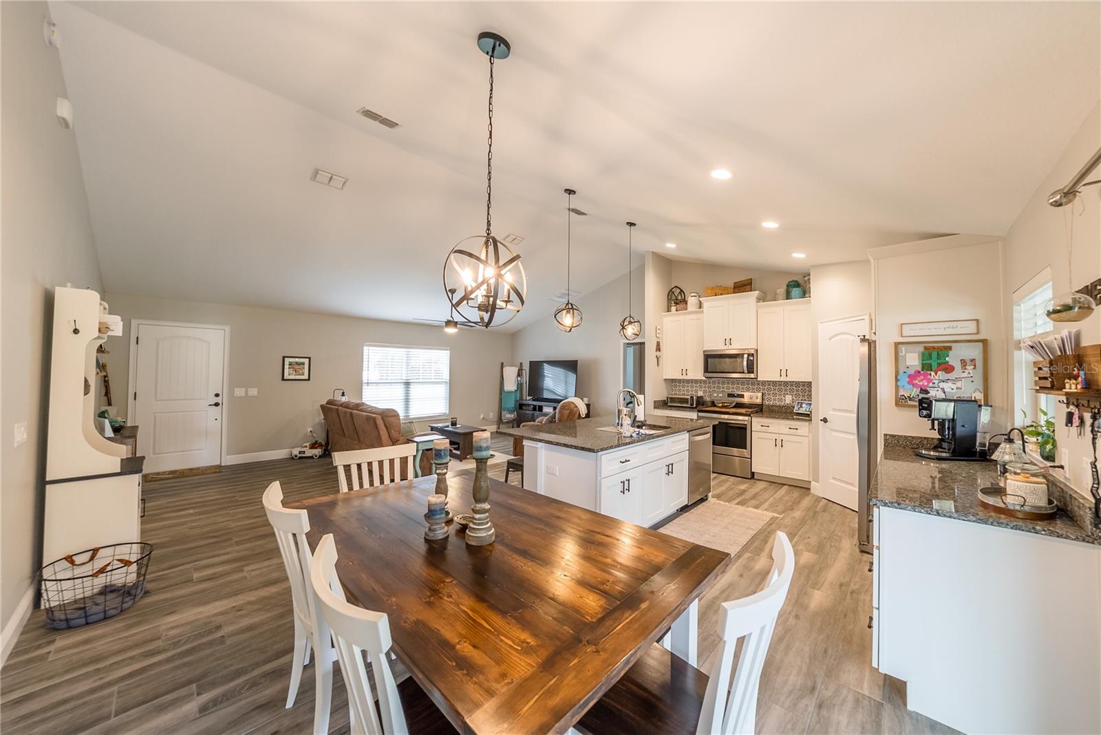 Um dos gentis neste bairro de 4 quartos de 2020, 2 banheiros em casa com pouco menos de meio acre-sem HOA! Lá dentro, você adorará a planta baixa do conceito aberto com a asa de hóspedes com três quartos e um banheiro completo de um lado, e a suíte primária privada com closet, lavanderia e acesso à garagem do outro. O piso de ladrilhos ao longo daquele parece madeira. A cozinha possui bancadas de pedra, e os espaços são aprimorados com novos ventiladores de teto com controle remoto. Toneladas de atualizações do construtor que você não vê todos os dias. O tapete parece que nunca foi percorrido. O sótão desceu as escadas e o armazenamento por toda a casa. Saia do seu espaçoso quintal, pátio de tamanho superior, já conectado com um ventilador de teto e uma almofada de concreto extra, completa com uma fogueira, perfeita para relaxar ou divertir. Com acabamentos modernos, um layout ideal e liberdade de restrições de HOA, esta casa está pronta e oferece espaço para crescer.