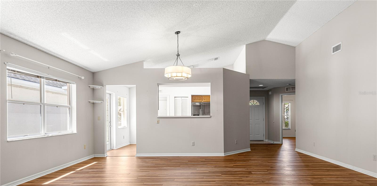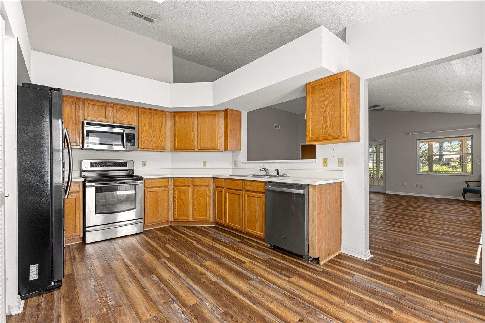 Visualização do campo de golfe: Esta popular casa de pátio unifamiliar de Madison Model, localizada no bairro de Williamsburg, no topo do mundo, uma comunidade de golfe fechada ativa e perto das comodidades. Esta casa tem 2 quartos, 2 banheiros e uma garagem de 2 carros, aquecedor de água sem tanques (2022), telhado mais recente (2017), A/C (2024), Courtyard Private e é uma casa pronta. Quando você puxa para a entrada da garagem pavimentada de tijolos, a passarela e a varanda coberta é um ótimo local para desfrutar do café da manhã. Entre no hall de entrada. O quarto e o banheiro de hóspedes estão à esquerda do vestíbulo de entrada. O quarto de hóspedes tem um closet e o salão de hóspedes com um grande armário de linho, depois entra no banheiro do hóspede com uma longa vaidade com uma única pia e muito armazenamento de gabinete, e uma porta leva à banheira/chuveiro combinado. Descendo o hall de entrada é uma grande sala e área de jantar. O quarto principal fica na parte de trás à esquerda da casa para obter privacidade com carpete mais recente, armário de linho, armário e área para maquiagem/vestuário. O banho primário tem uma grande vaidade com duas pias, chuveiro passo a frente com assento, porta de vidro sólido, área privada com um vaso sanitário alongado e piso de azulejos. De volta à grande sala está a área da cozinha com área de comer, aparelhos mais novos, despensa, porta que leva ao pátio, porta que leva à lavanderia interna e uma porta para a garagem. Voltando à grande sala estão as portas francesas que levam a um Lanai de três temporadas fechado, que tem a vista perfeita da tartaruga e do segundo fairway de Hare. Lanai tem uma porta que leva a um pátio "muito particular" com o portão na frente. (Seu vizinho não possui janelas no seu pátio) A porta da cozinha leva ao pátio para o seu grelhado particular. Aproveite seu quintal e pátio particulares! No topo do mundo, está a principal comunidade de campos de golfe de Ocala e tem uma riqueza de comodidades, enquanto a apenas um campo de golfe anda de restaurantes, saúde e entretenimento.